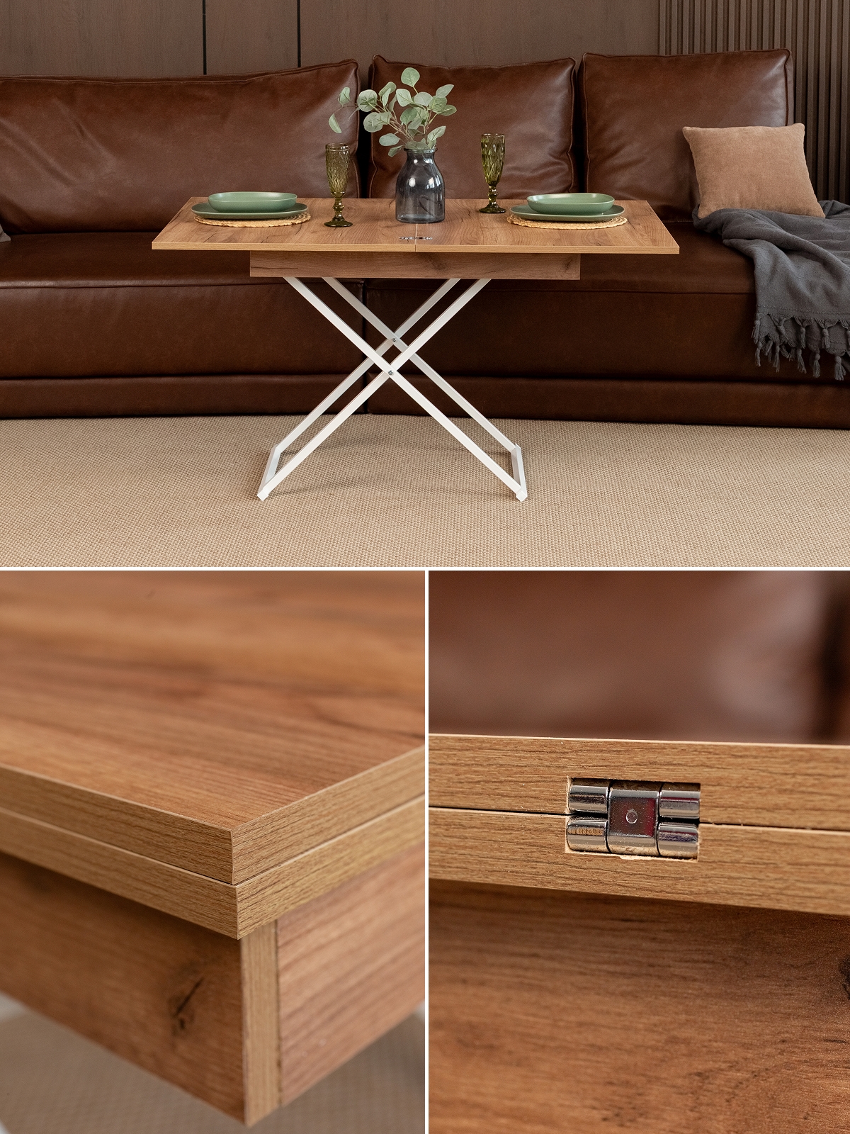 Дизайнерский подход проявляется в каждой детали: плавные линии, прочные металлические ножки и раскладной механизм делают стол не только функциональным, но и эстетически привлекательным. Такой предмет мебели легко становится центром внимания в комнате, объединяя зону отдыха, рабочее пространство и место для приема гостей. Современный универсальный стол трансформер подойдет для кухонь, гостиных, столовых и даже рабочих кабинетов. Он может выполнять роль компактного журнального столика, стильной консоли или полноценного обеденного стола для больших семейных встреч.