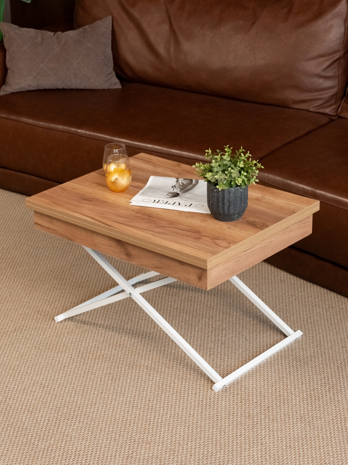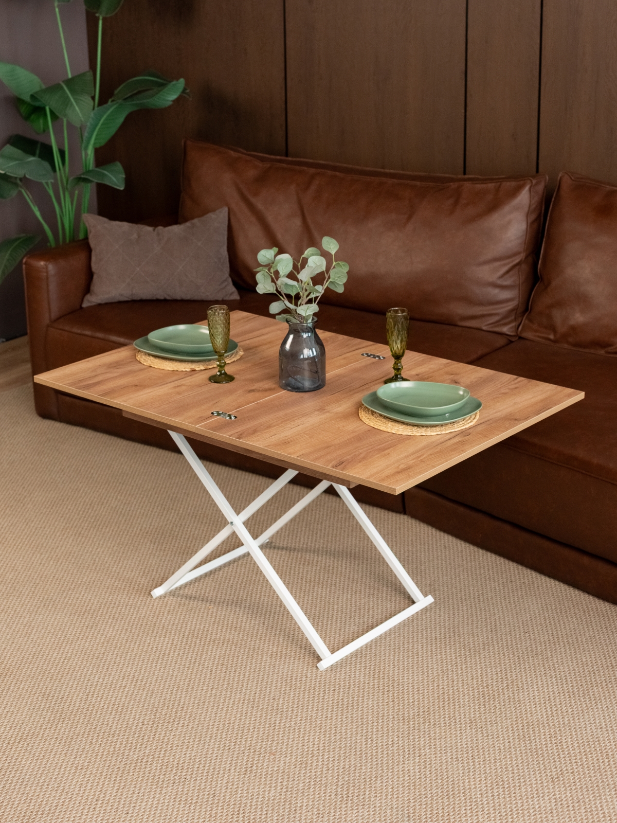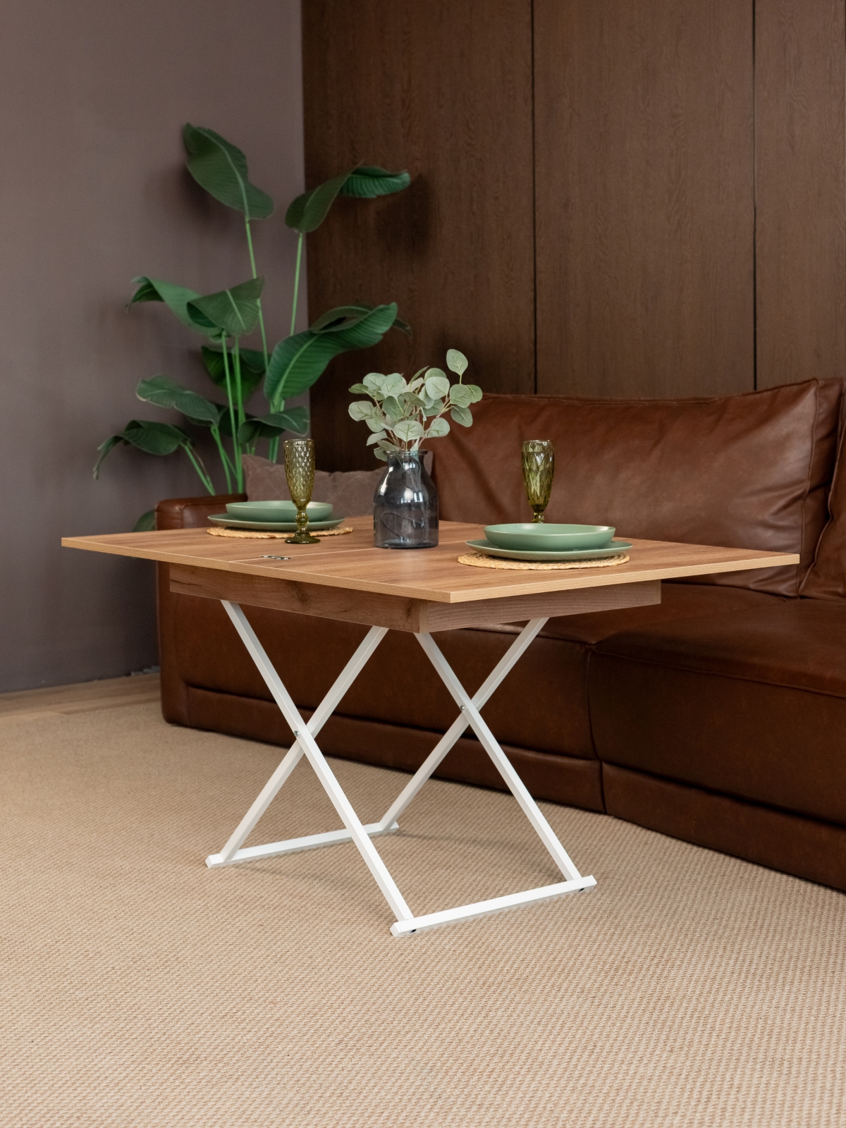 Раздвижная столешница и регулируемая высота позволяют подобрать оптимальный вариант для любой ситуации: будь то кофе-пауза, работа за ноутбуком или праздничный ужин. Важное преимущество — наличие подъемного механизма и регулировки высоты. Столик легко адаптируется под нужды семьи: его можно поднять до уровня полубарного или обеденного стола, что особенно удобно для современных квартир-студий, где часто совмещены кухня и гостиная. Такой универсальный подход делает стол трансформер незаменимым элементом для кухонного пространства, обеденной зоны или даже столовой. Благодаря складной конструкции изделие занимает минимум места в комнате, а при необходимости быстро раскладывается, превращаясь в полноценную поверхность для работы или приема гостей.