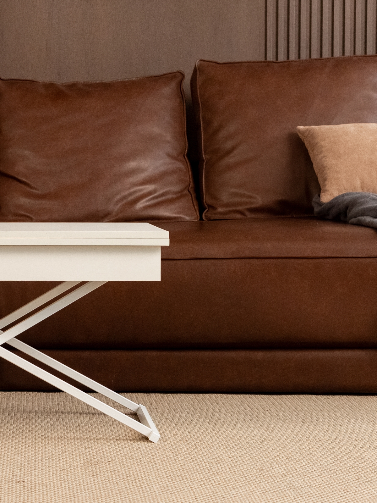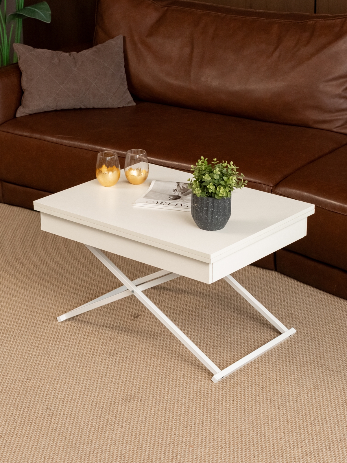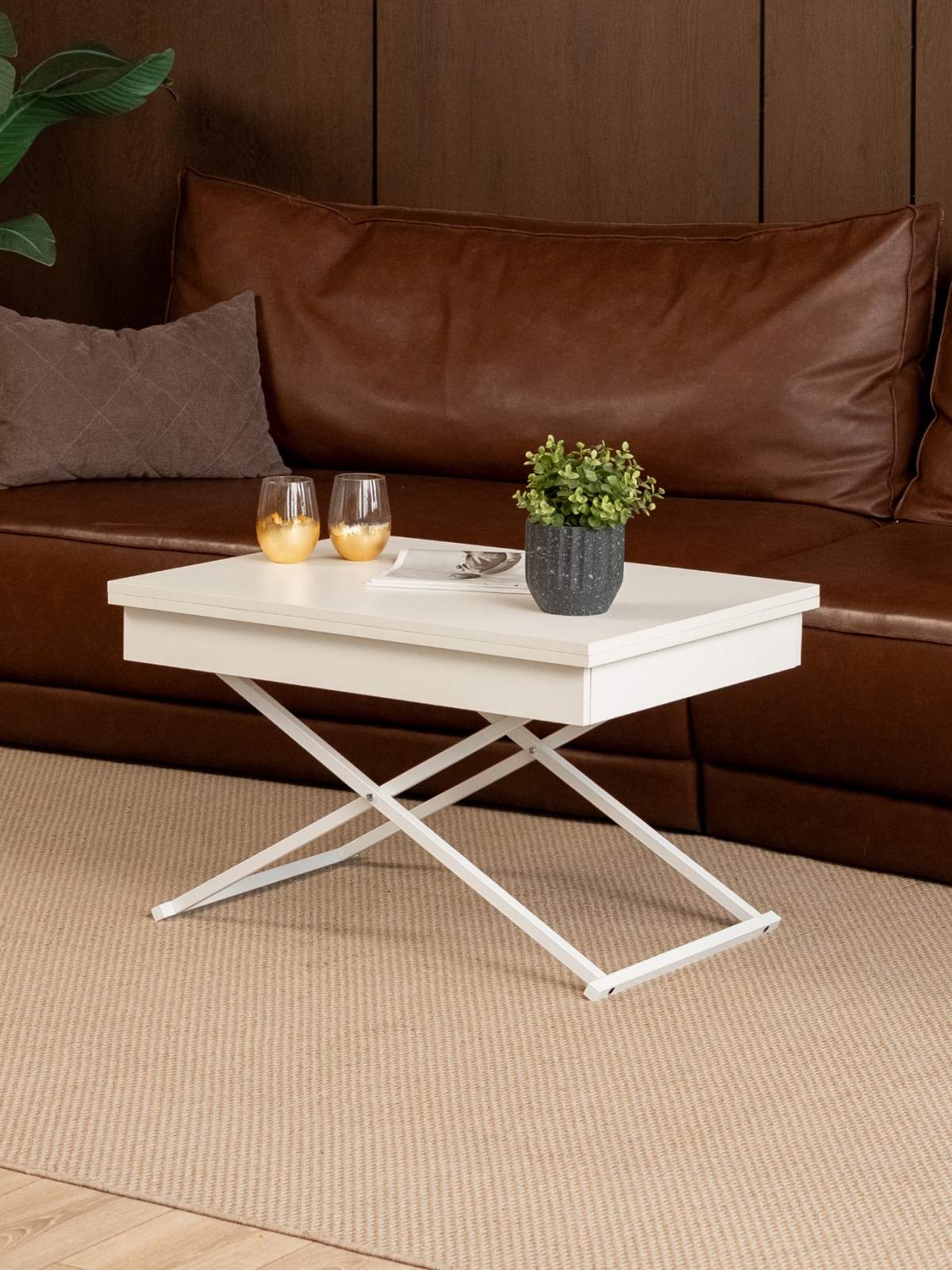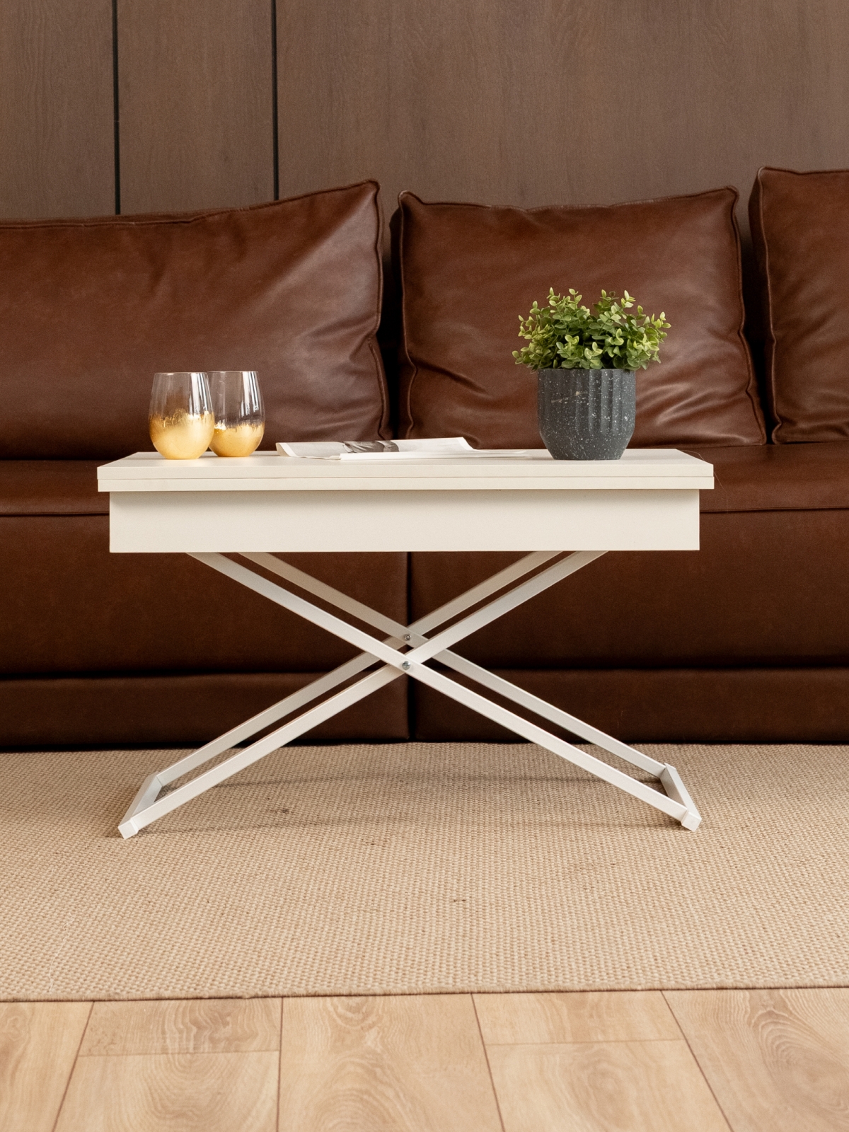 Раздвижная столешница и регулируемая высота позволяют подобрать оптимальный вариант для любой ситуации: будь то кофе-пауза, работа за ноутбуком или праздничный ужин. Важное преимущество — наличие подъемного механизма и регулировки высоты. Столик легко адаптируется под нужды семьи: его можно поднять до уровня полубарного или обеденного стола, что особенно удобно для современных квартир-студий, где часто совмещены кухня и гостиная. Такой универсальный подход делает стол трансформер незаменимым элементом для кухонного пространства, обеденной зоны или даже столовой. Благодаря складной конструкции изделие занимает минимум места в комнате, а при необходимости быстро раскладывается, превращаясь в полноценную поверхность для работы или приема гостей.