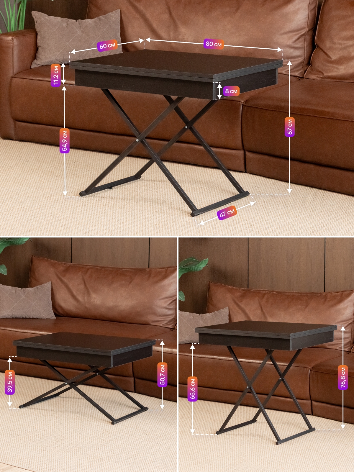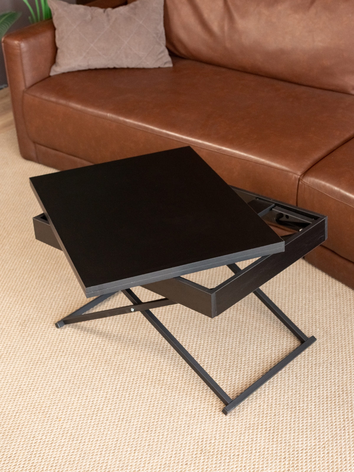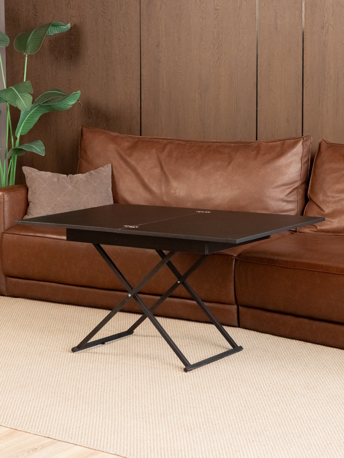 Современный дизайн в стиле лофт делает этот стол универсальным решением для различных интерьеров. Лаконичные формы, металлические ножки и стильный черный цвет — выбор любителей минимализма и урбанизма. Журнальный столик-раскладушка легко вписывается в современные тенденции, подчеркивает индивидуальность пространства и становится ярким акцентом в интерьере. Конструкция стола предусматривает складной механизм, который позволяет быстро изменять его размеры и высоту. Система регулировки высоты и раздвижная столешница обеспечивают дополнительное удобство в повседневном использовании. Стол на металлических ножках устойчив даже при максимальной нагрузке, а продуманная эргономика делает его комфортным для всех членов семьи и гостей. Такой трансформируемый стол — это не только функциональность, но и эстетика современного дизайна.