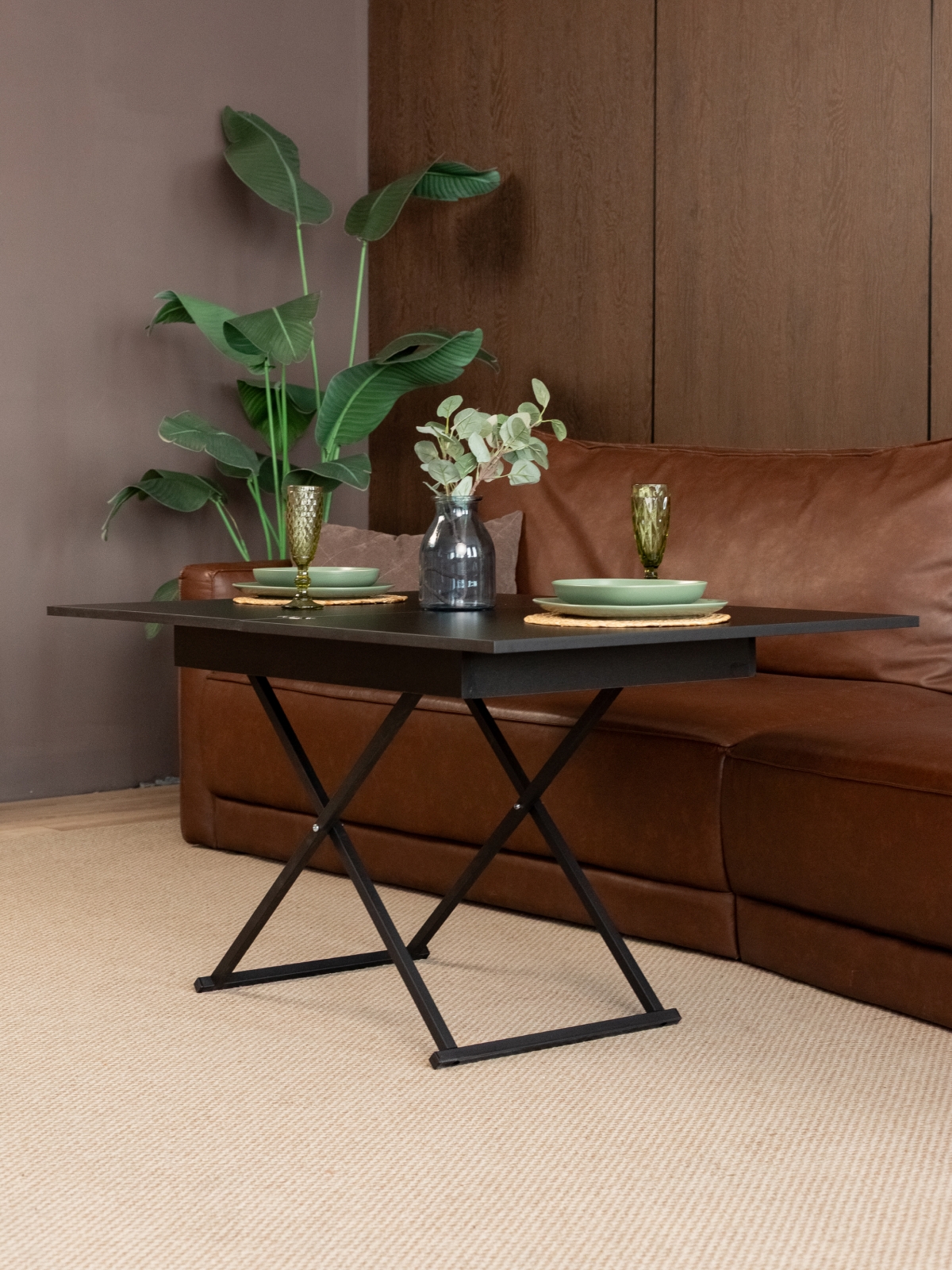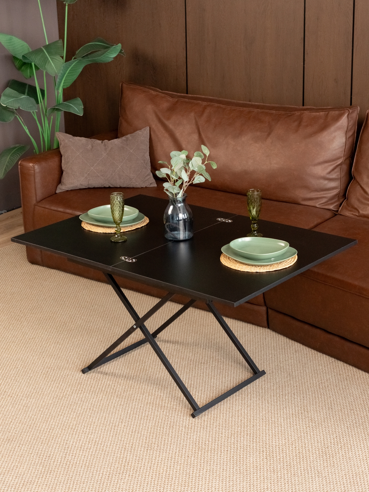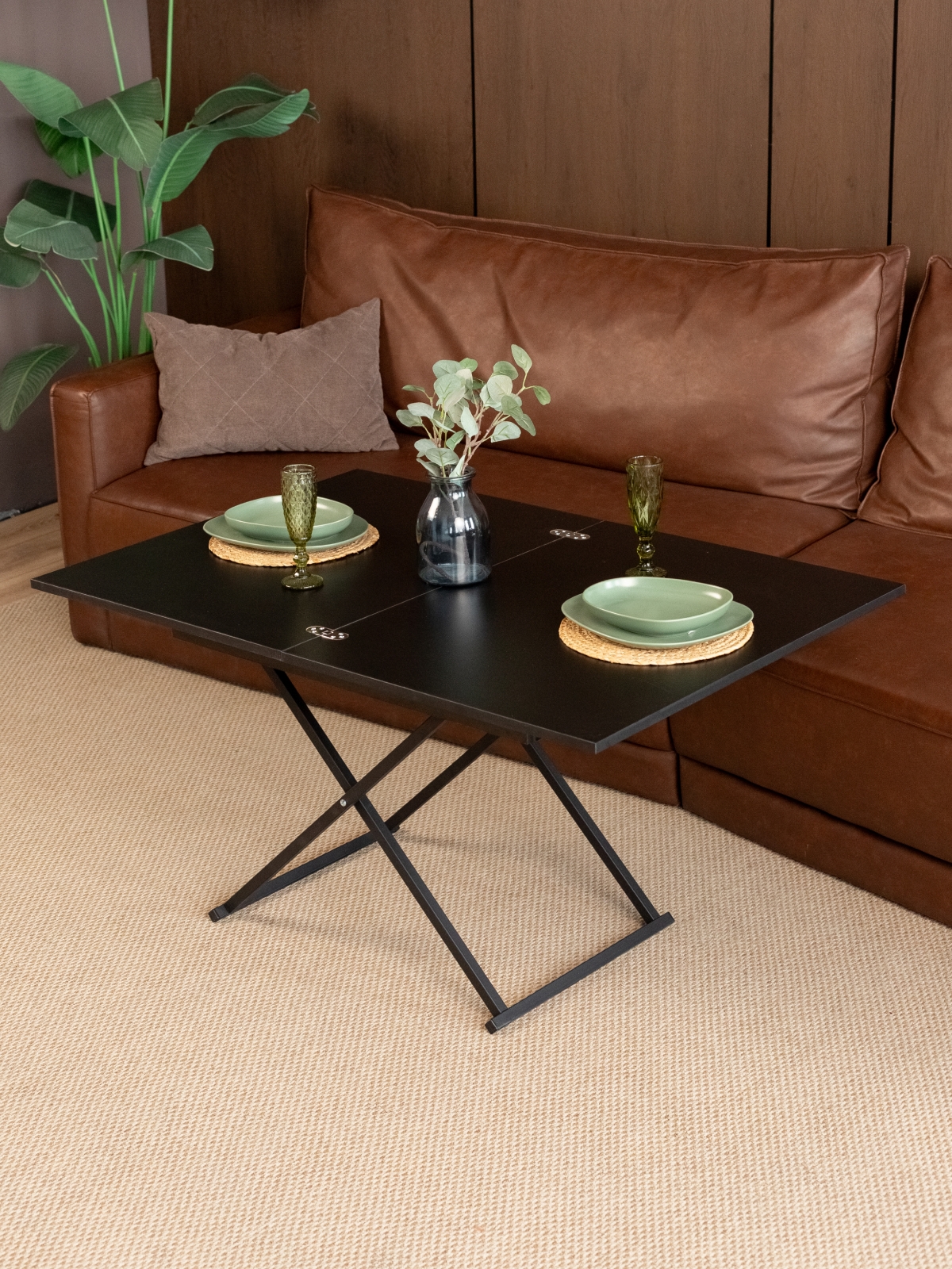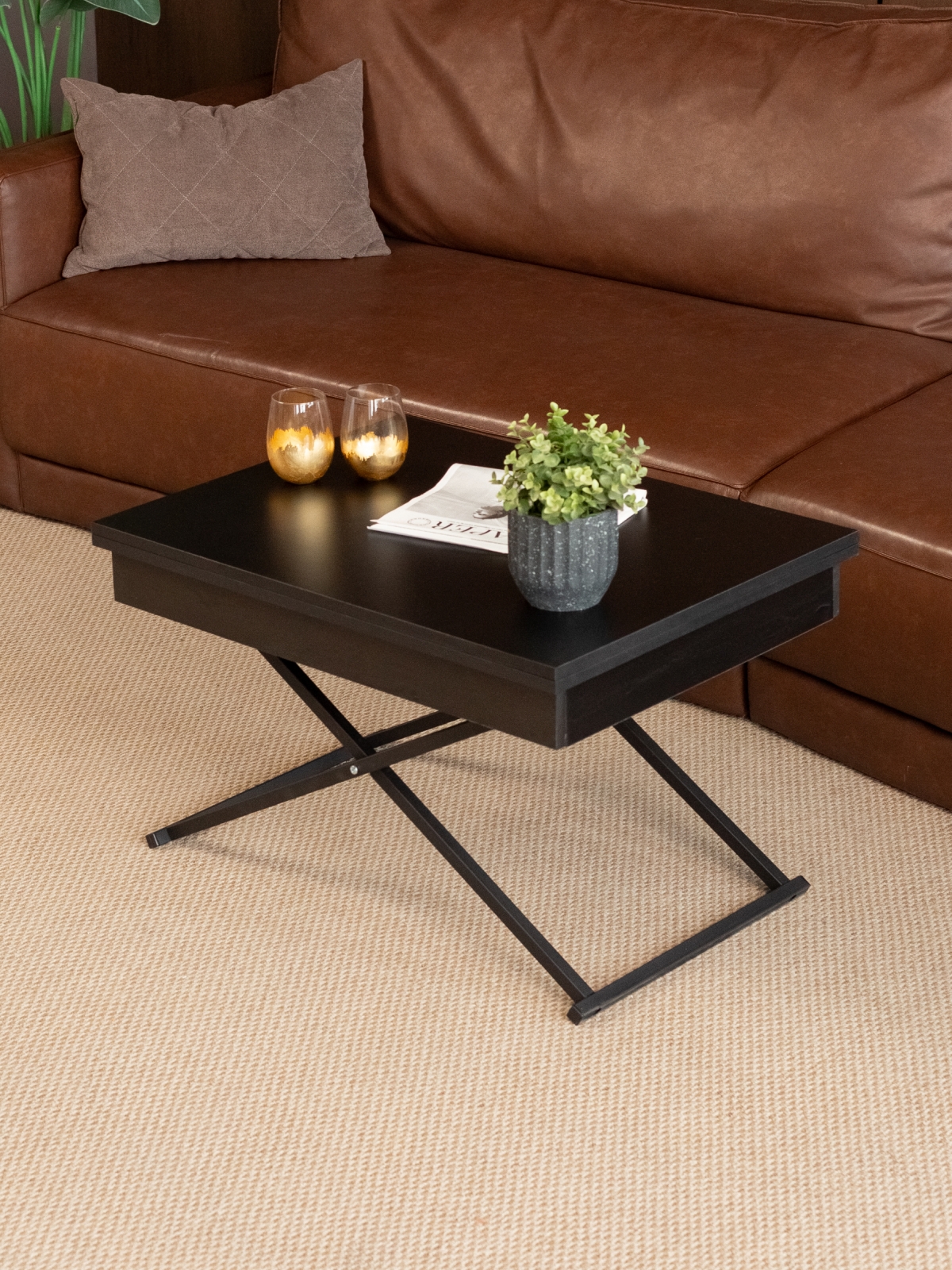 Современный дизайн в стиле лофт делает этот стол универсальным решением для различных интерьеров. Лаконичные формы, металлические ножки и стильный черный цвет — выбор любителей минимализма и урбанизма. Журнальный столик-раскладушка легко вписывается в современные тенденции, подчеркивает индивидуальность пространства и становится ярким акцентом в интерьере. Конструкция стола предусматривает складной механизм, который позволяет быстро изменять его размеры и высоту. Система регулировки высоты и раздвижная столешница обеспечивают дополнительное удобство в повседневном использовании. Стол на металлических ножках устойчив даже при максимальной нагрузке, а продуманная эргономика делает его комфортным для всех членов семьи и гостей. Такой трансформируемый стол — это не только функциональность, но и эстетика современного дизайна.
