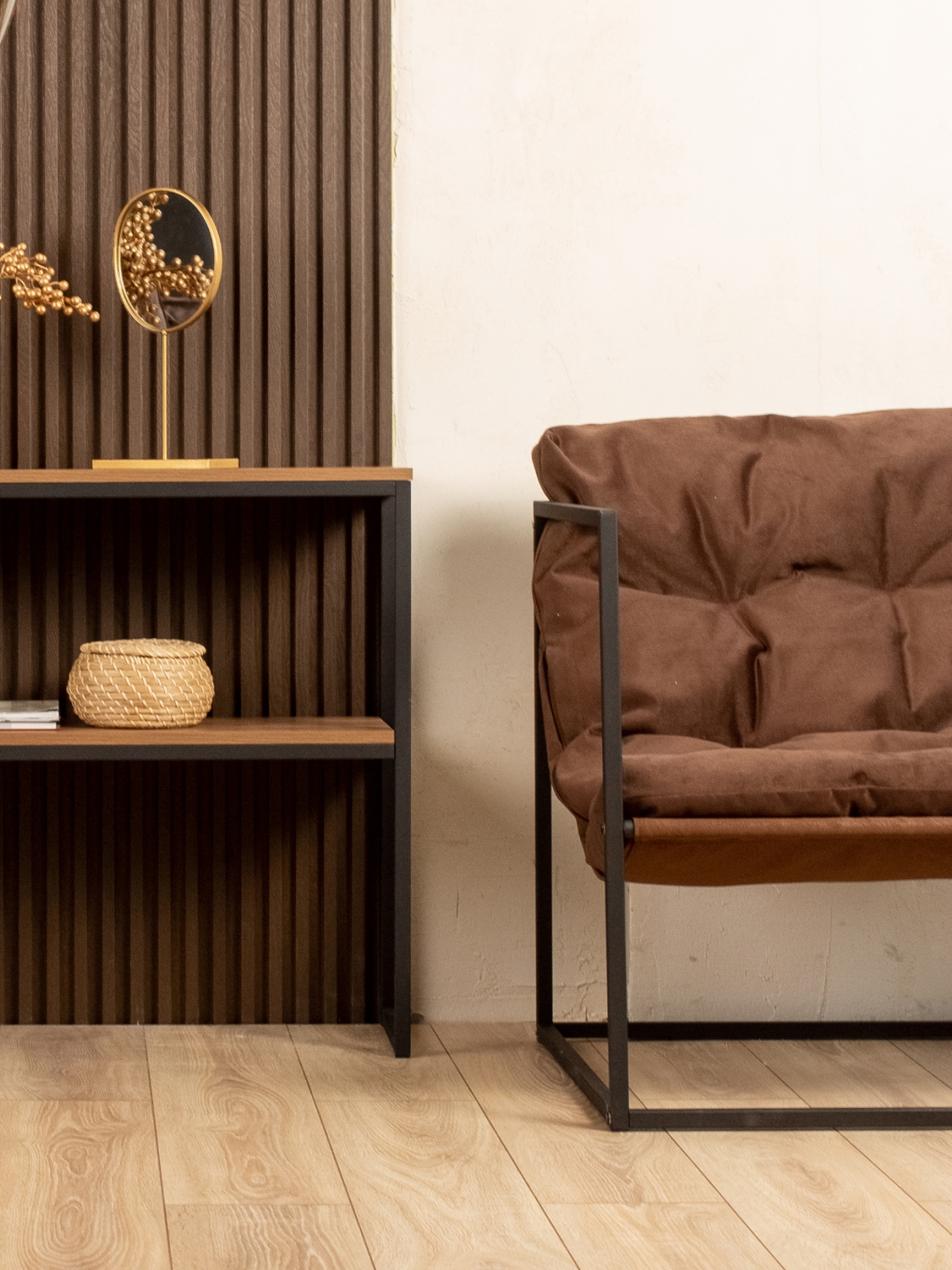 Интерьер в стиле лофт часто требует мебель простой формы и универсального назначения — такой, как «Вакка». Ее черный каркас становится частью дизайнерского замысла. Тумба для ТВ подчеркнет эффект состаренной кожи на кресле, металлизированные вставки в интерьере, потертые ковры с графичным рисунком или мебель с налетом времени. При этом столик будет уместно смотреться и в более современных интерпретациях лофта.