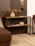 Изделие может служить тумбой под телевизор или открытой системой хранения для книг, журналов, документов. В интерьере прихожей или холла столик под телевизор легко адаптировать под декоративные композиции, фотографии, сувениры. Малый вес позволяет без труда переставлять консоль с места на место, адаптируя ее под текущее оформление комнаты.