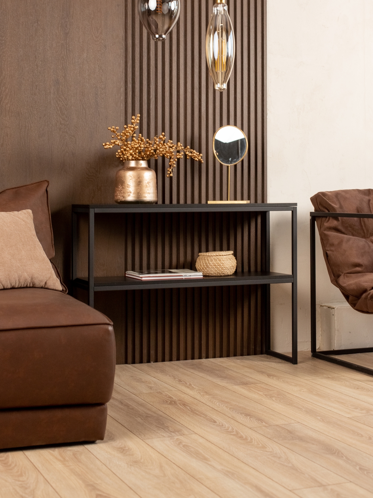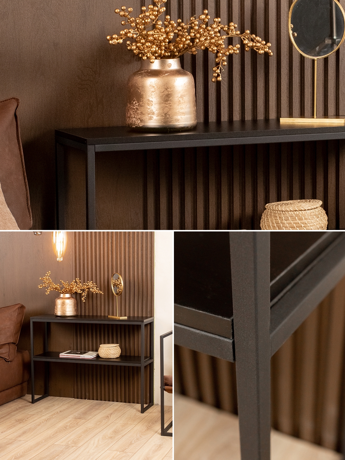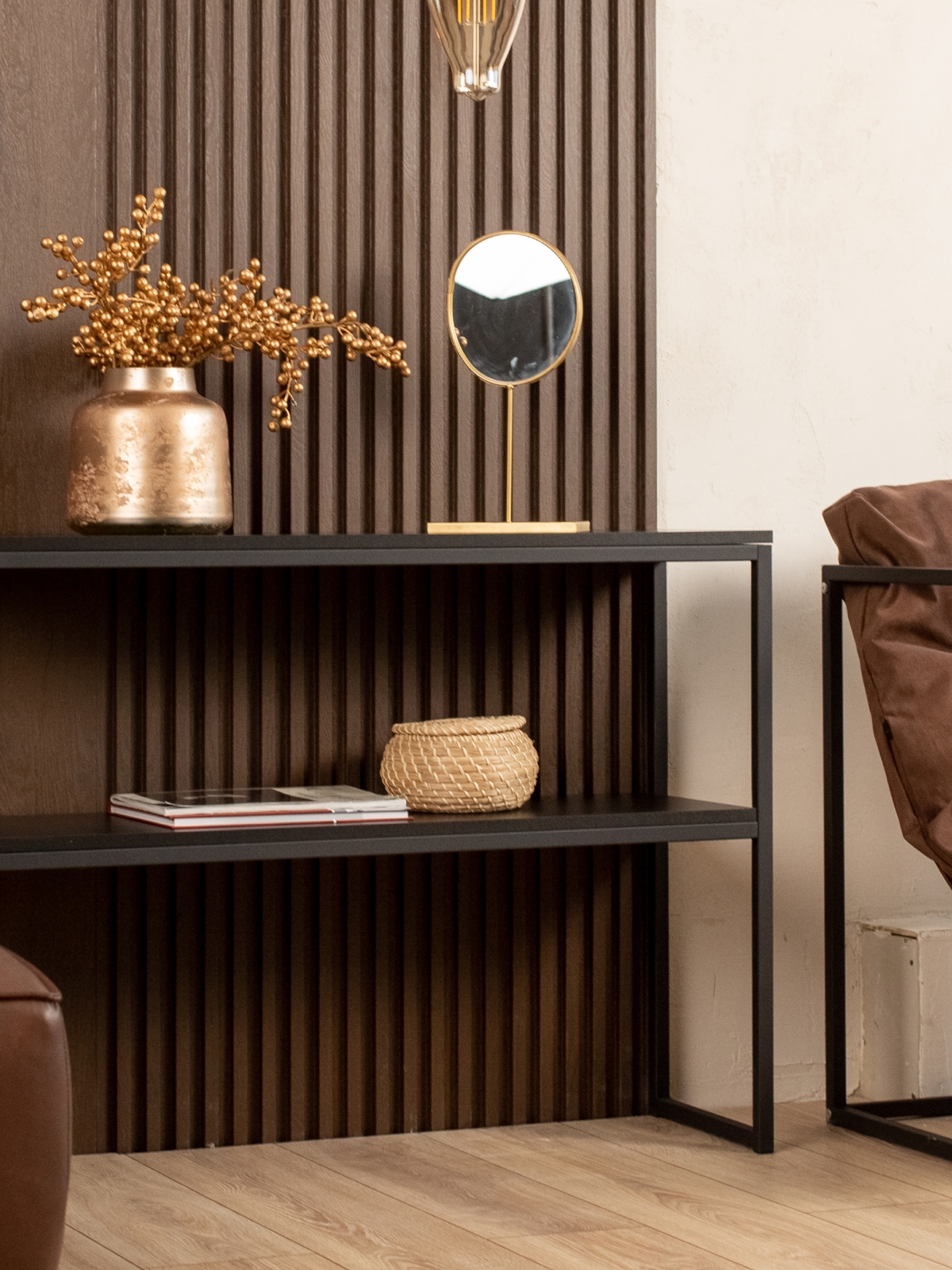 Консоль в прихожую «Вакка» с металлическим каркасом в черном цвете — это не просто функциональный предмет мебели, а выразительный акцент, способный задать тон интерьеру. Универсальный и продуманный дизайн делает тумбу для телевизора идеальным решением для различных пространств: квартиры, дачи, а также офисов, лобби или залов ожидания. Компактные размеры и лаконичная форма позволяют разместить консольный стол даже в небольших комнатах без потери площади.