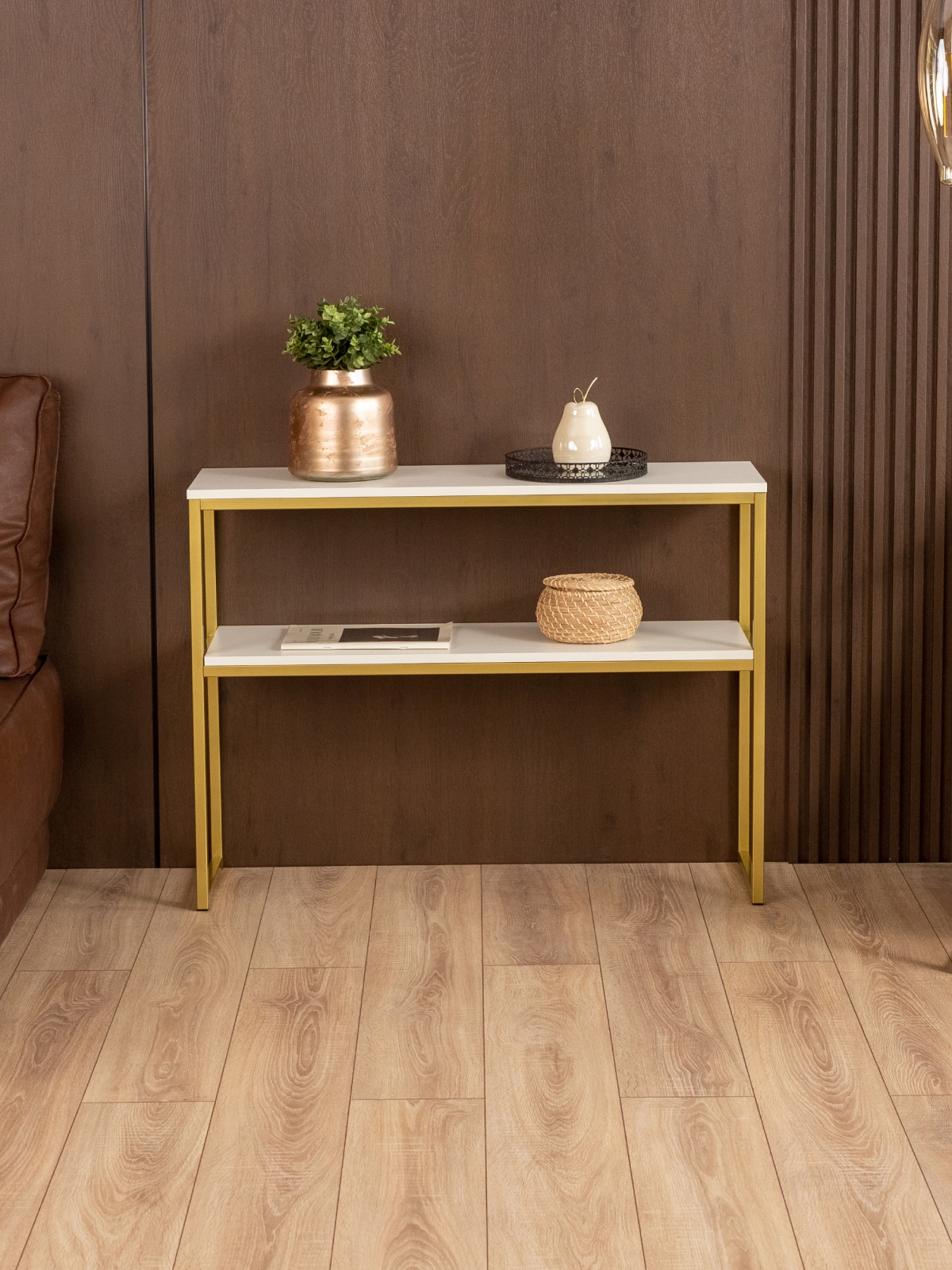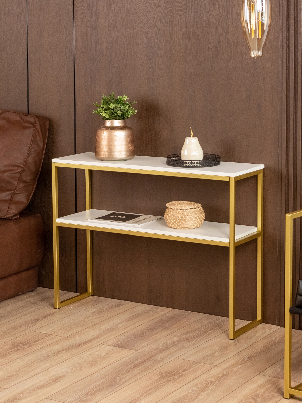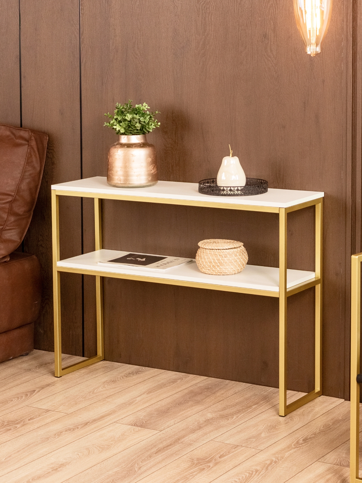 Туалетный консольный столик в стиле лофт Вакка золотой/белый