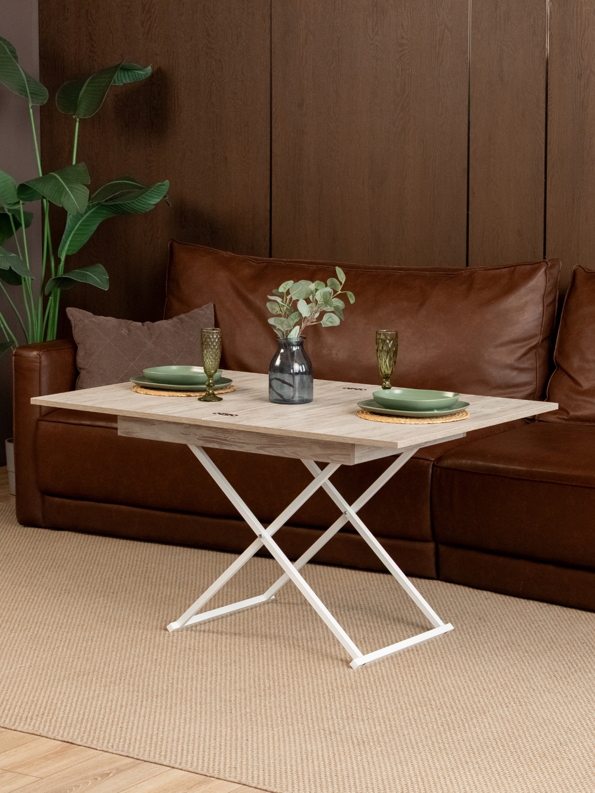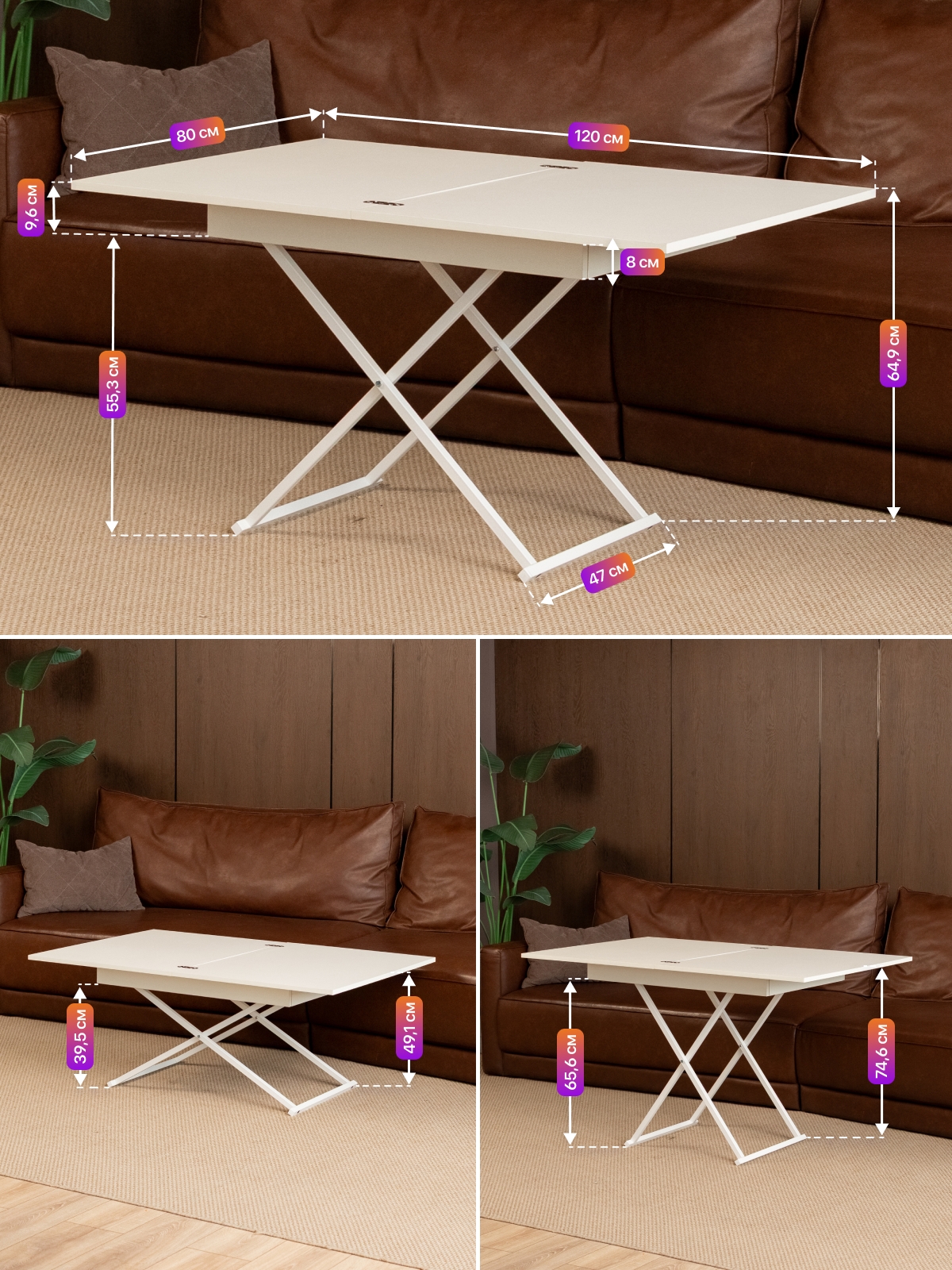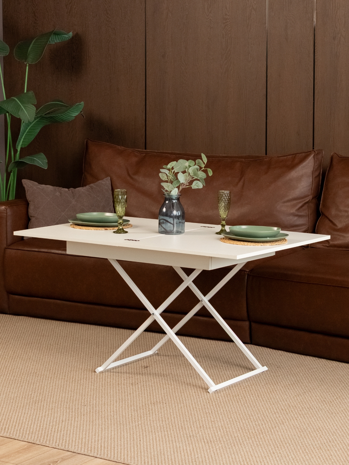 Стол трансформер лофт для гостиной Кемь белый/кашемир
