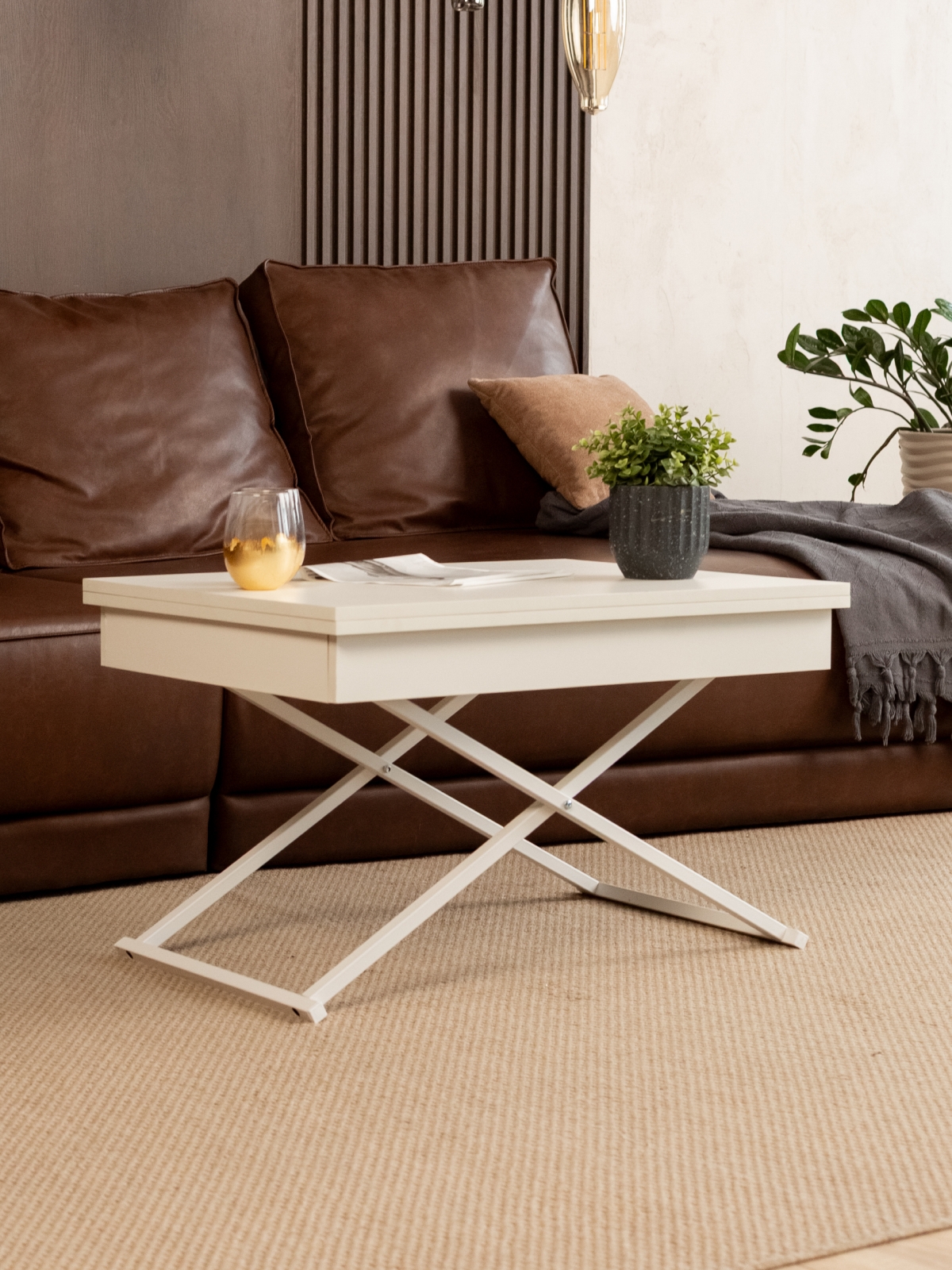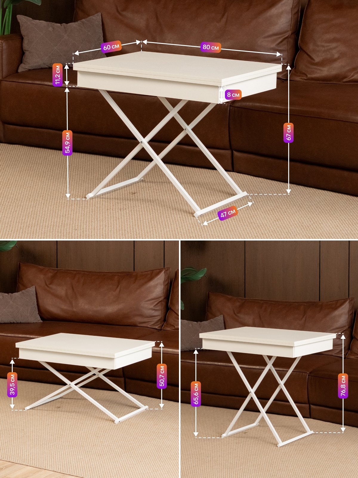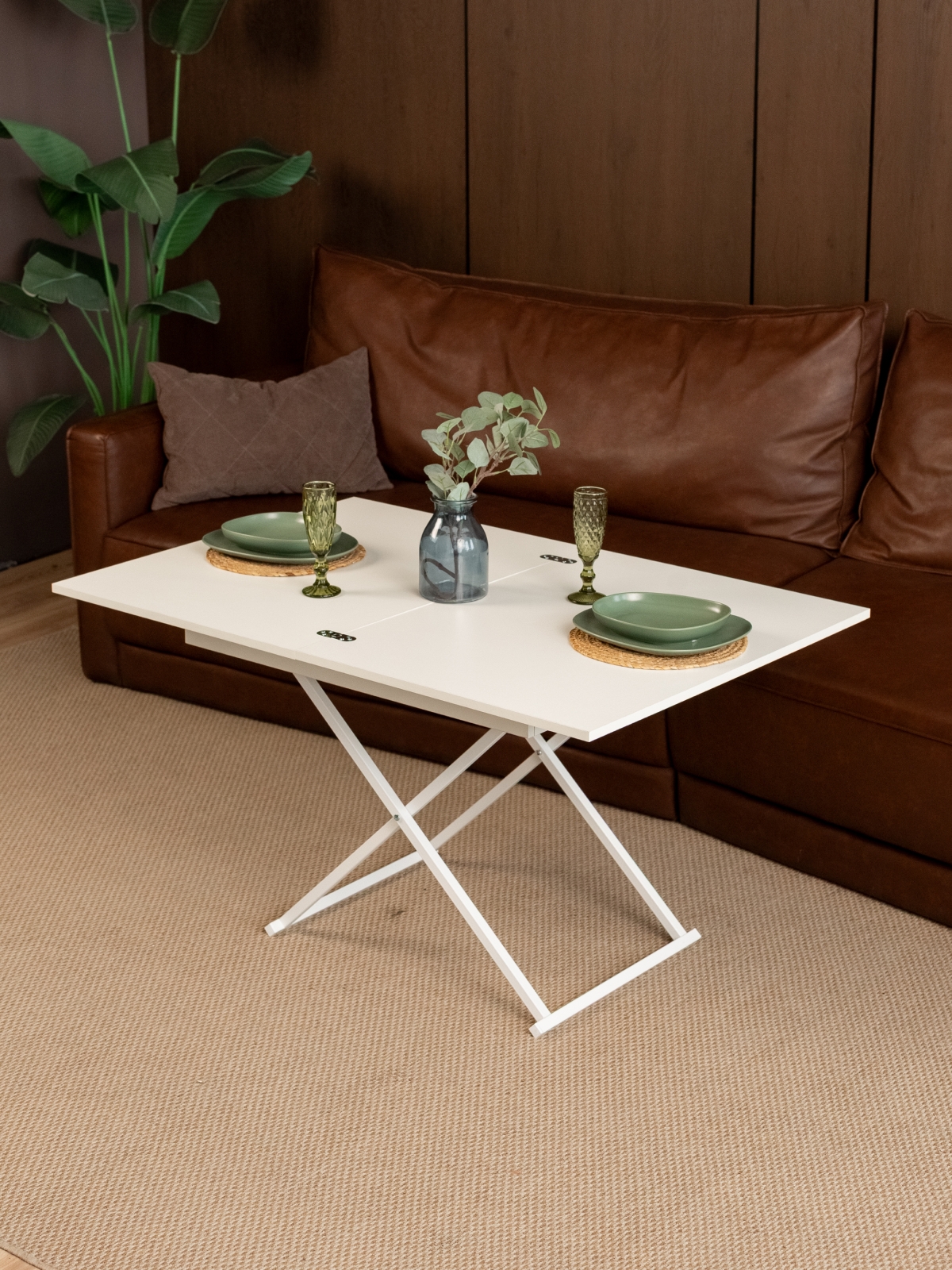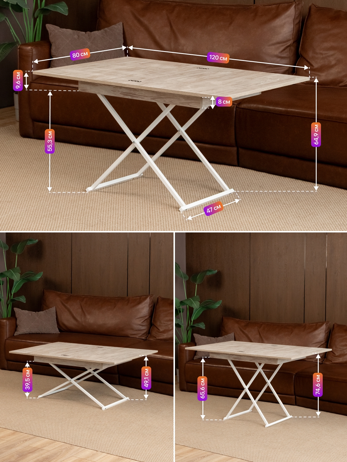 Стол трансформер лофт для гостиной Кемь белый/кашемир