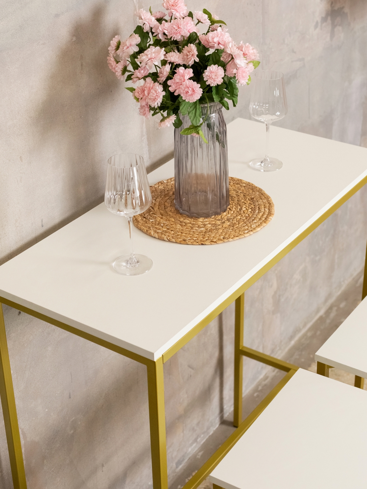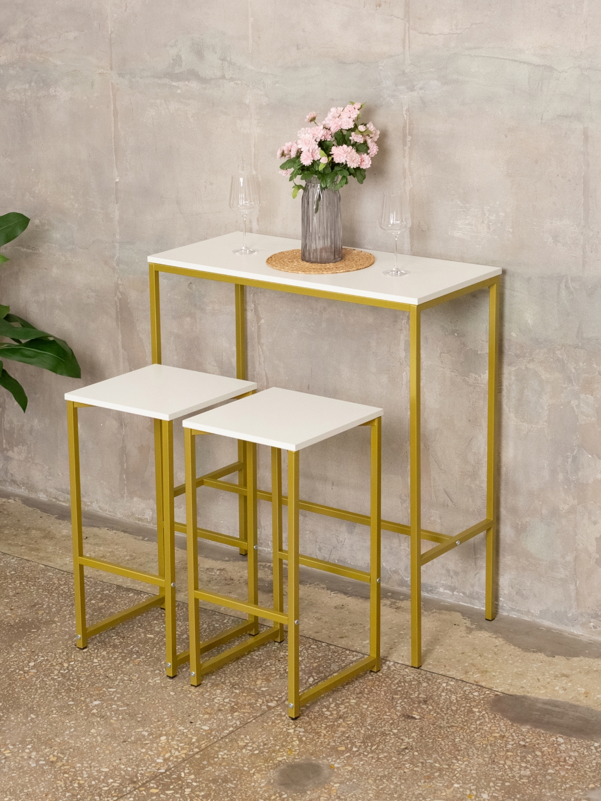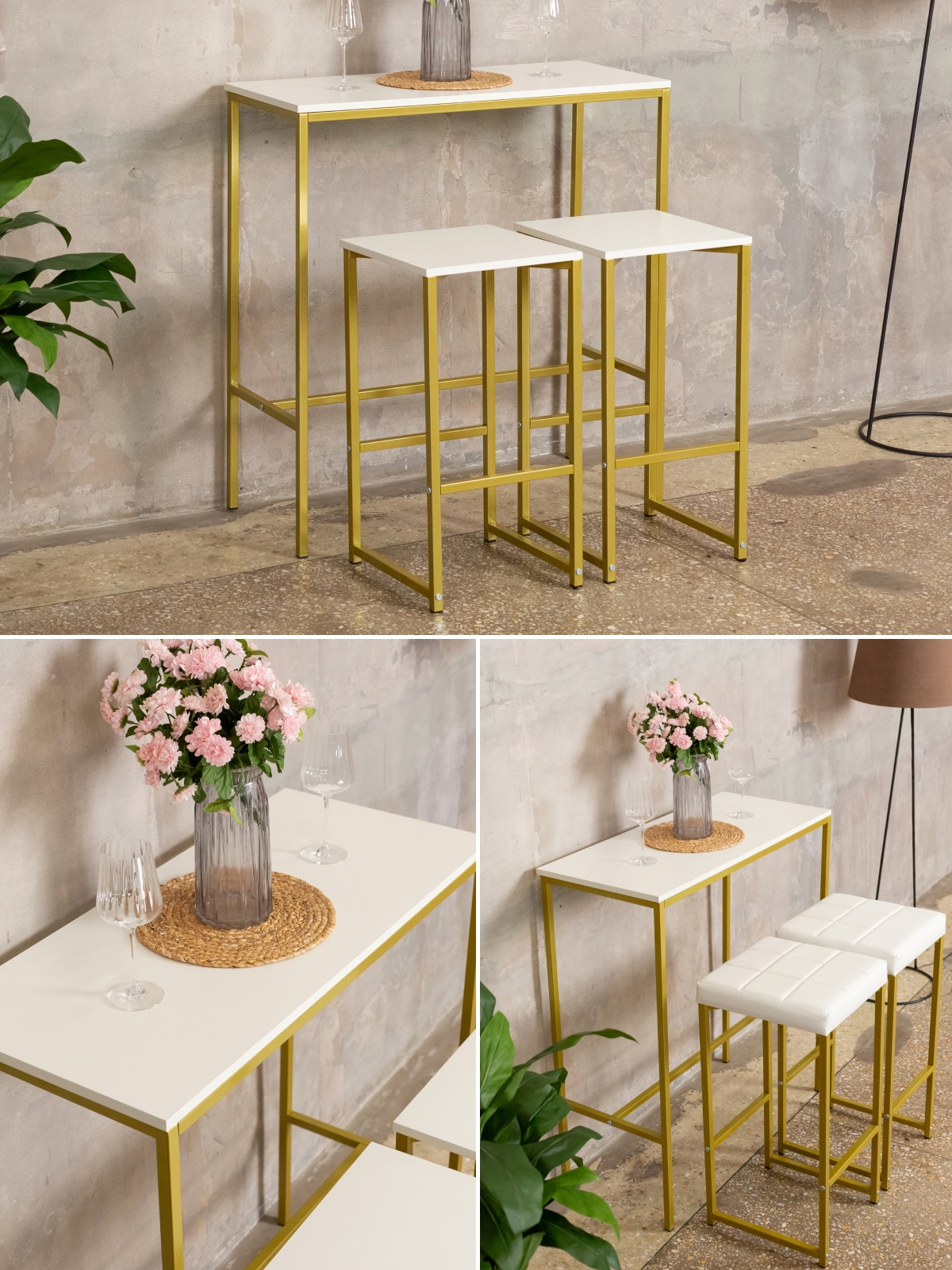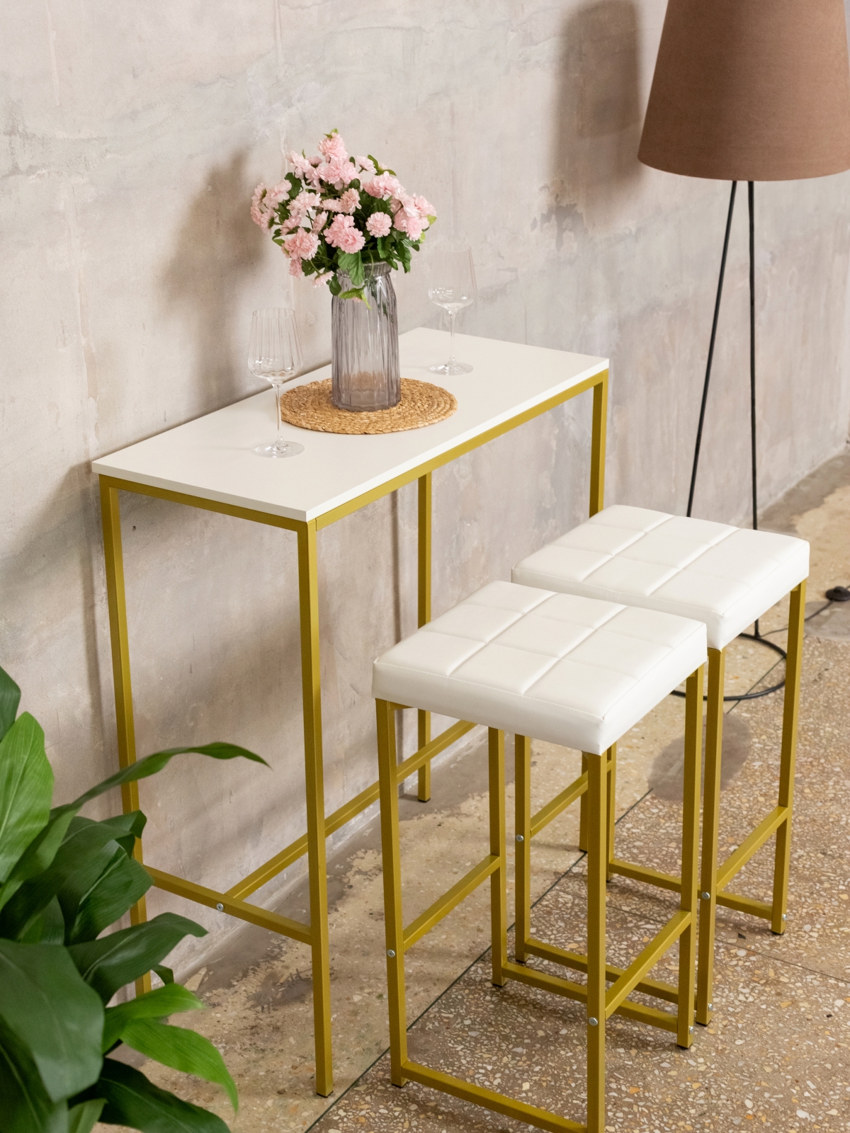 Дизайн изделия создан с акцентом на glam-лофт — сочетание индустриальной строгости и утонченной роскоши. Такой барный стол используется в кафе, барах, домашних студиях и даже на балконах. Компактная форма и продуманная эргономика позволяют эффективно организовать пространство, обеспечивая максимум комфорта для общения, завтраков, работы или отдыха.