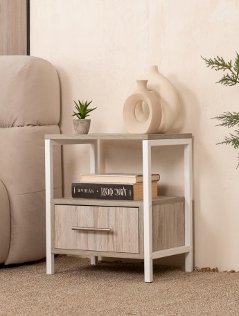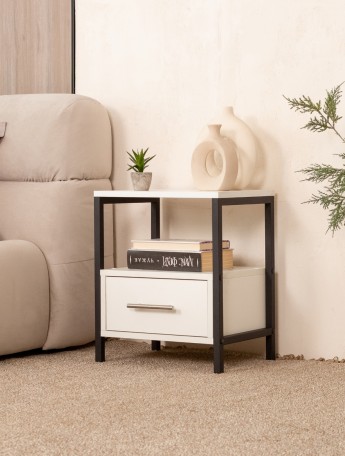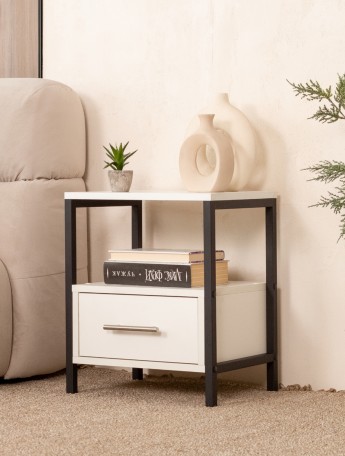 Прикроватная тумба открытая с полкой в стиле Лофт Вельга белая