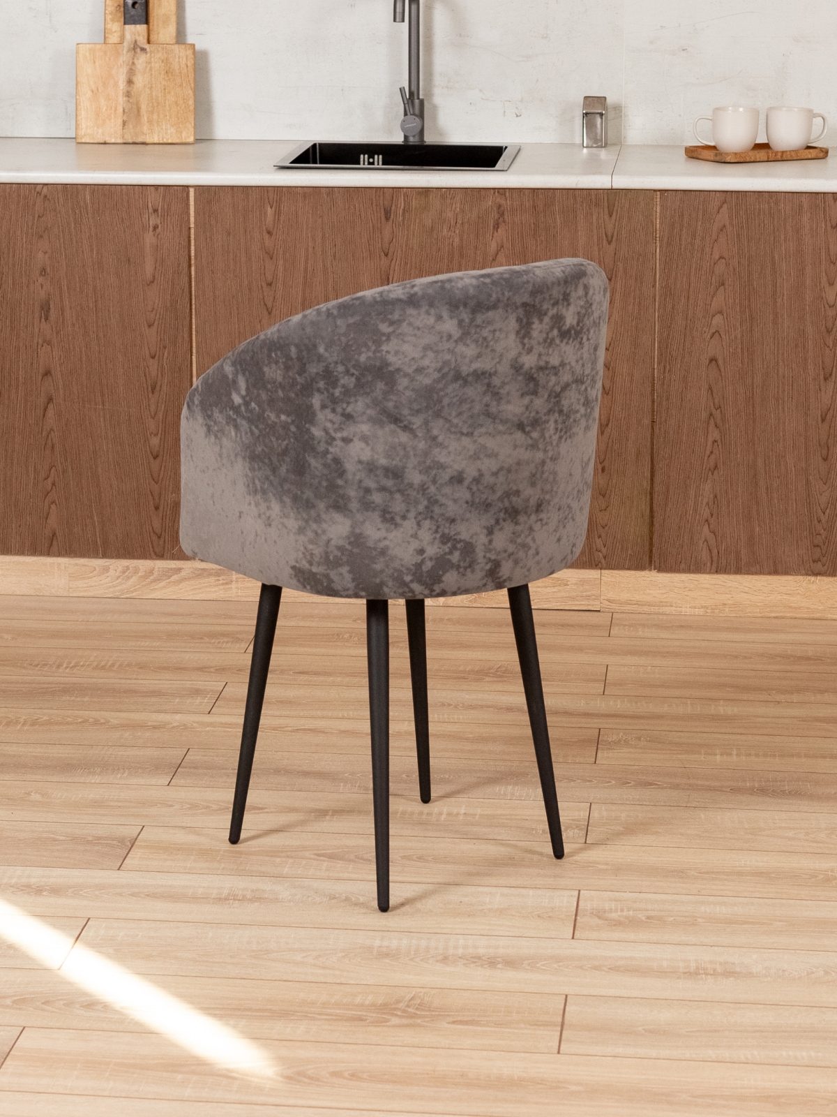 Комфортный стул с округлой спинкой и мягким сиденьем идеально подойдет для рабочего стола, клиентской зоны в офисах, а так же для уютных кафе и ресторанов . Обивка из велюра или экокожи придает изделию современный и опрятный вид, а приятная на ощупь текстура обеспечивает дополнительный комфорт. Стулья-кресла на тонких конусообразных ножках выглядят очень эффектно, гармонично вписываясь в интерьеры в стиле лофт. Стул отличается эргономичной формой, плавно изогнутой спинкой и подлокотниками, что делает его удобным для длительной работы или отдыха. Универсальный дизайн сочетается с различными вариантами мебели для офиса, а также станет отличным выбором для зоны отдыха на балконе. Мягкие материалы сиденья и спинки поддерживают спину и создают ощущение уюта. Стул без колесиков, что делает его устойчивым и безопасным для использования на любом типе напольного покрытия.