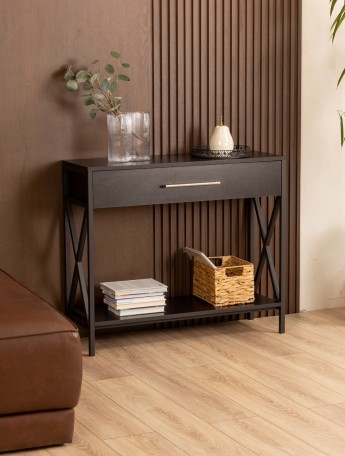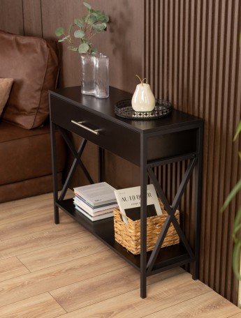 Тумба консоль под телевизор в стиле лофт Эльба черная
