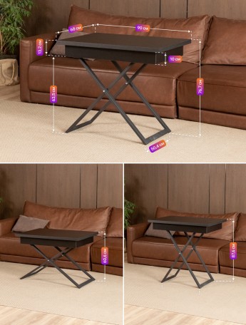 Прикроватная тумба с ящиком и полкой в стиле лофт Томо черный/кашемир