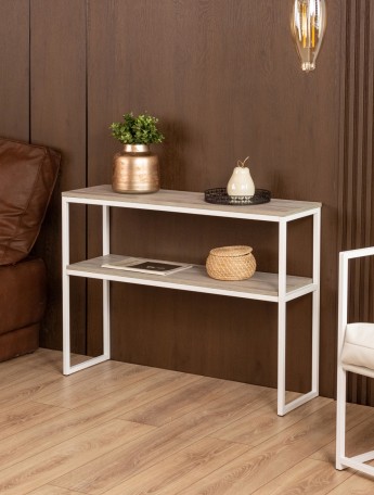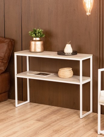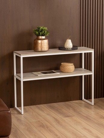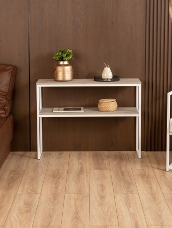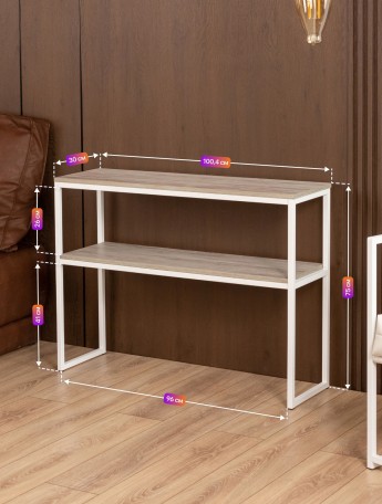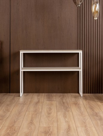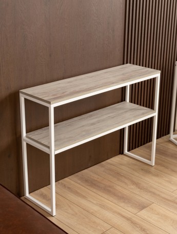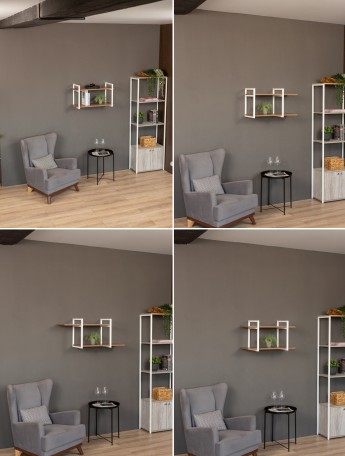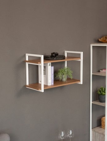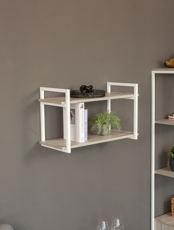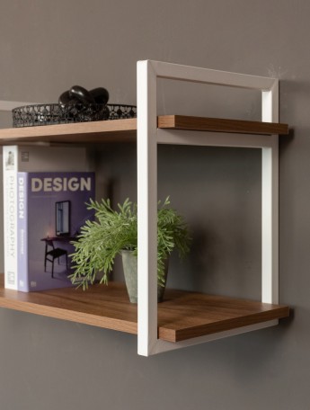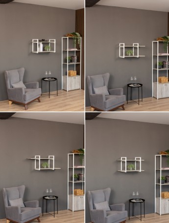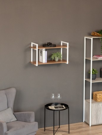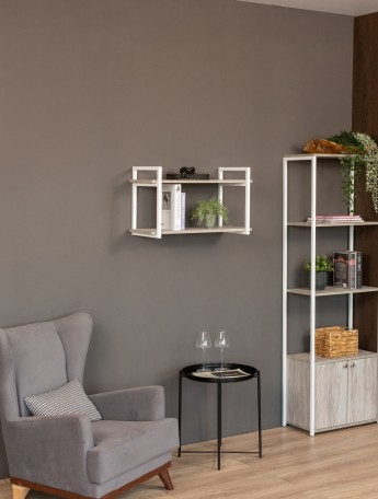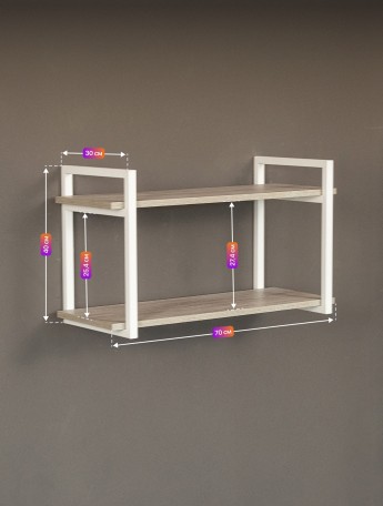 Настенный стеллаж выполнен из ЛДСП. Это прочный материал, который устойчив к перепадам температур и влажности воздуха.