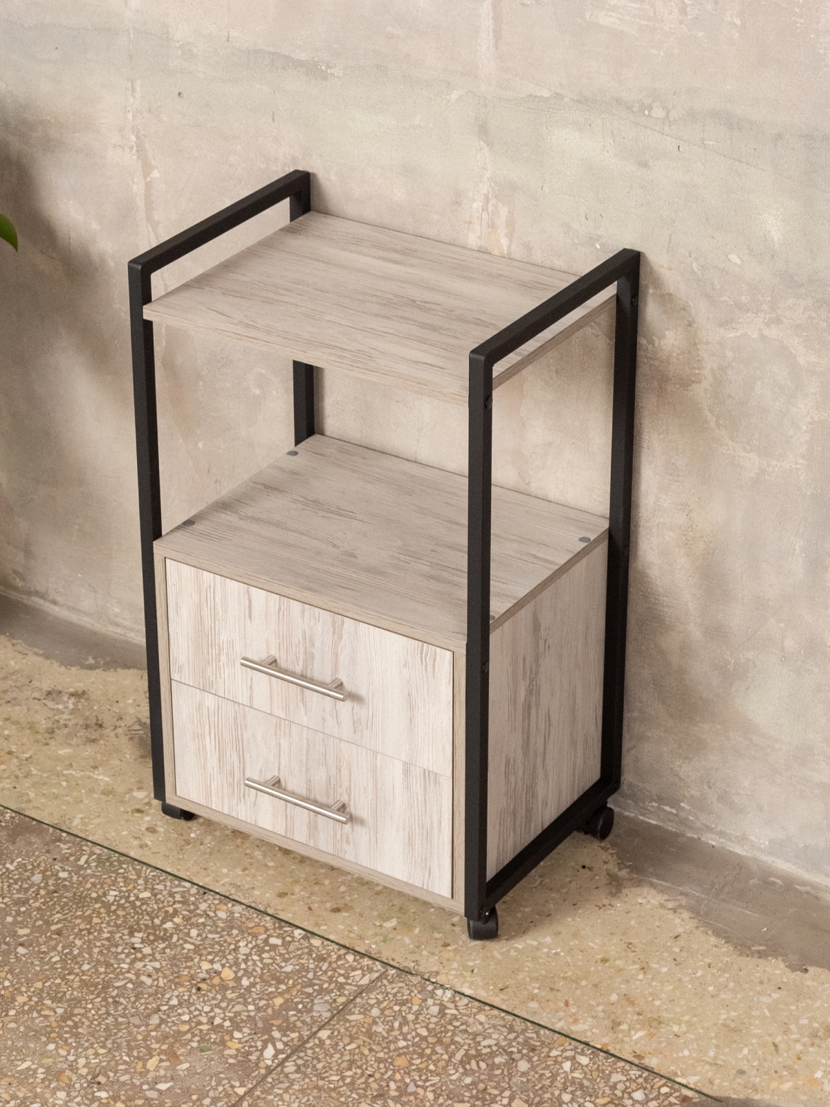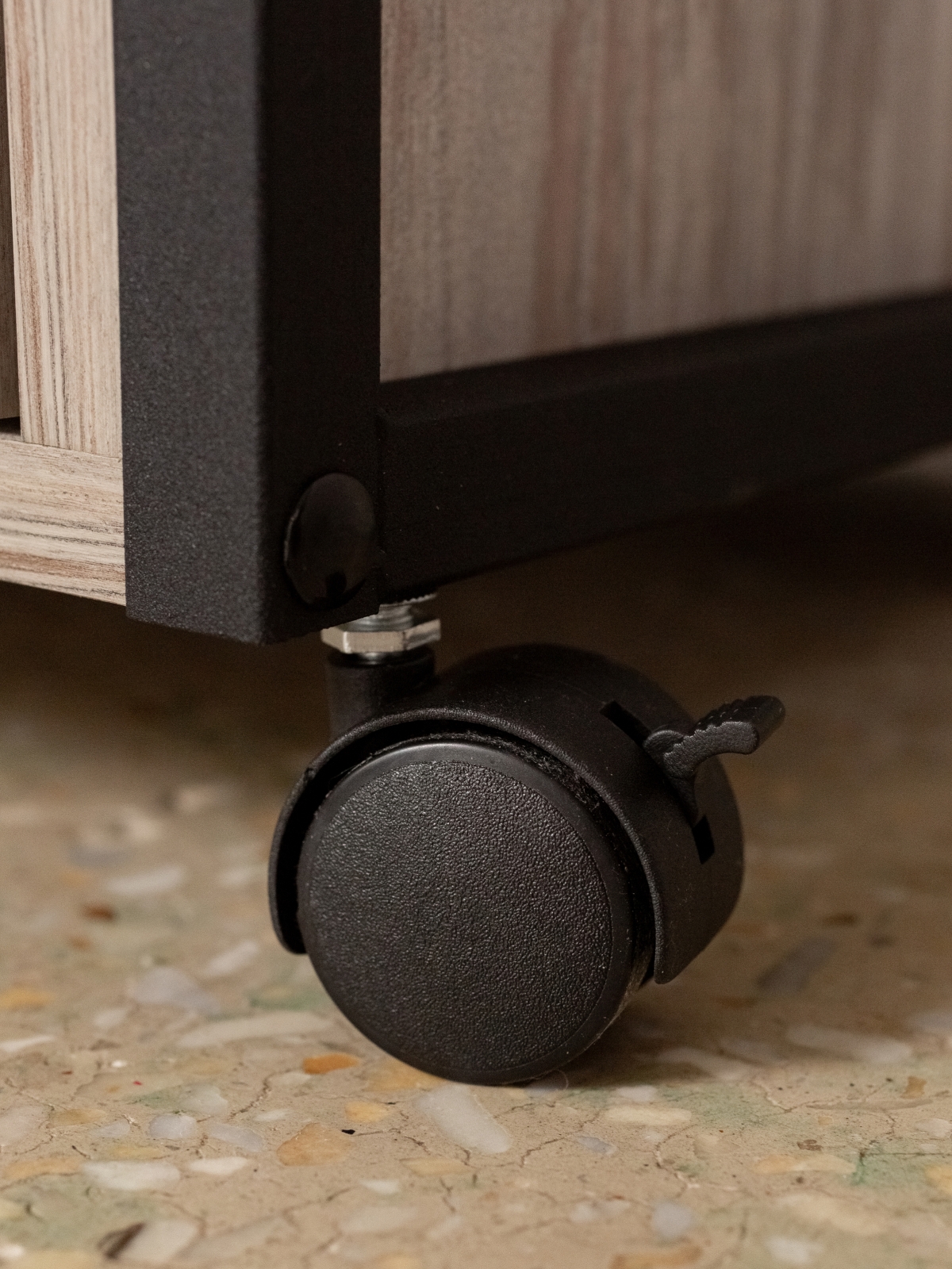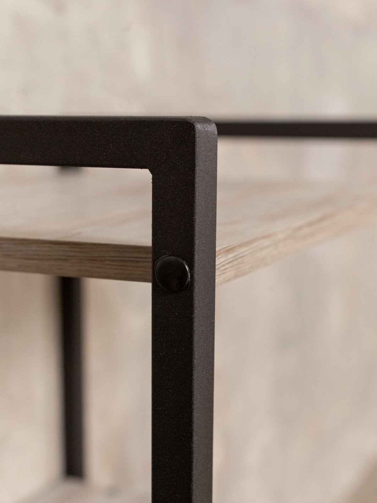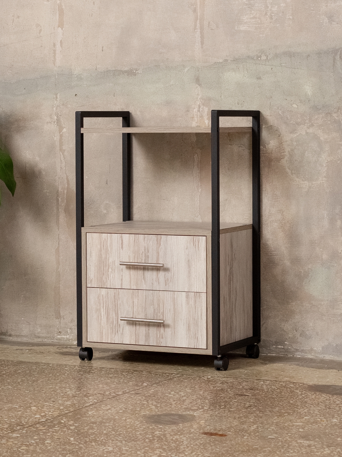 Конструкция из металлического каркаса черного цвета подчеркивает классический стиль лофт. Два ящика и полочки обеспечивают достаточно места для хранения косметических средств, расходников для маникюра и педикюра и других необходимых вещей. Открытые полки идеально подходят для быстрого доступа к часто используемым инструментам и аппаратам. Такая конструкция делает тележку универсальным решением — она прекрасно справится с ролью тумбочки в прихожей для хранения ключей и мелочей, прикроватной тумбы в спальне, этажерки под посуду и мелкую бытовую технику на кухне, либо как органайзер для ванной комнаты.Тележка «Кая» создана для тех, кто ценит мобильность и стиль, а также желает поддерживать идеальный порядок без лишних усилий.