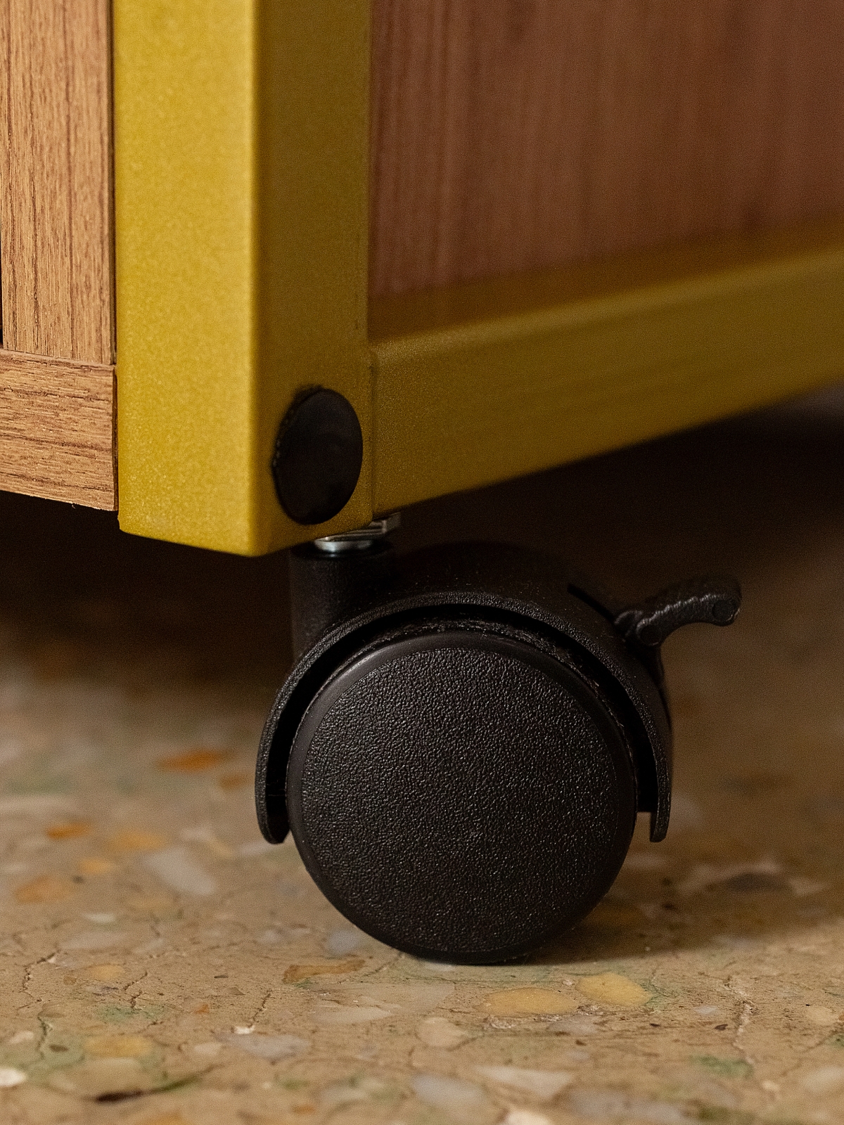 Этажерка оснащена двумя ящиками на шариковых направляющих. Это идеальное решение для хранения косметики, инструментов для педикюра, маникюра, наращивания ресниц, моделирования бровей, парикмахерских инструментов. Две открытых полки над ящиками обеспечивают быстрый доступ к самым нужным вещам — например, аппаратам для косметологических процедур, бутылочкам с дезинфицирующими средствами, органайзерам для кистей и расчесок, инструментам для маникюра и педикюра. Конструкция тумбы-тележки позволяет использовать её для обустройства кухни, домашнего кабинета и даже офиса.