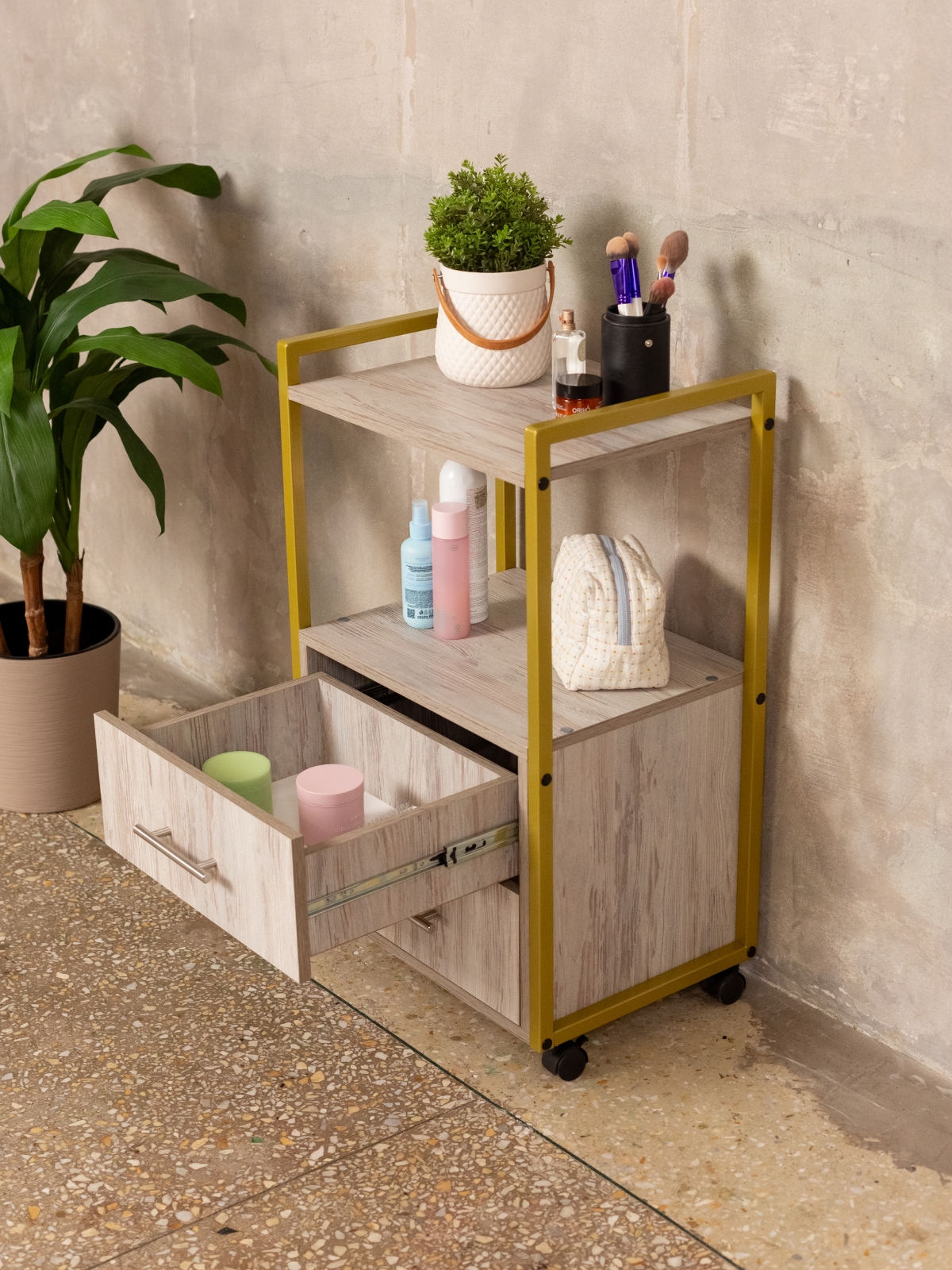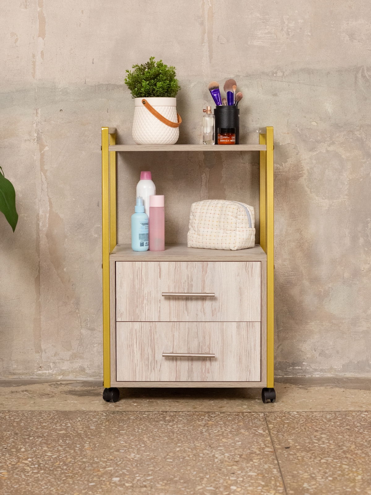 Тележка косметологическая на колесиках Ангара золотой/кашемир