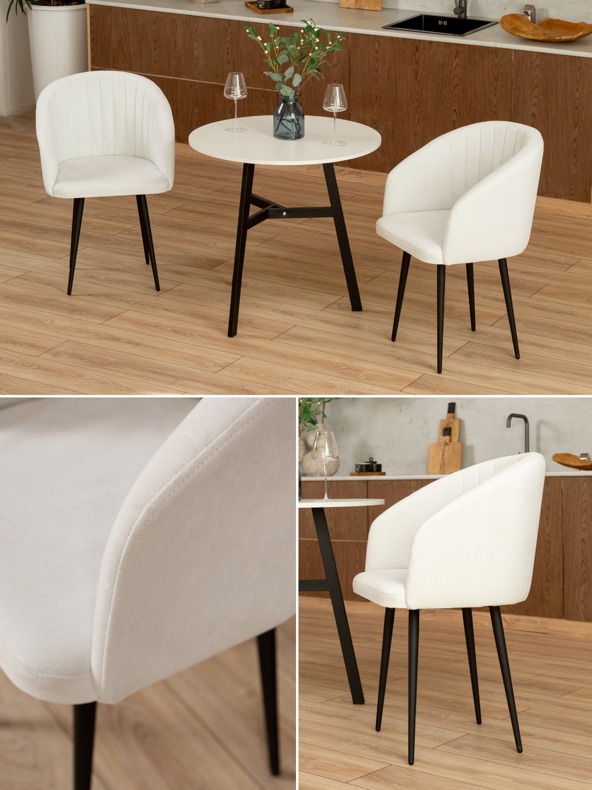 Мягкие стулья подходят для кухни и обеденной зоны, а также будут отличным решением для коммерческих помещений — офисов, кафе, ресторанов и салонов. Велюровое кресло с подлокотниками и мягкой обивкой станет стильным акцентом в гостиной, столовой или просторном зале. Мягкое сиденье и эргономичная спинка, переходящая в подлокотники, обеспечивают комфорт для работы за письменным столом или отдыха в домашней обстановке. Дизайнерский полукруглый силуэт с плавными линиями дарит ощущение уюта, создает эффект «обволакивания» благодаря глубокой посадке. Велюровый материал приятен на ощупь и эффектно смотрится при разном освещении. Стулья-полукресла такого же дизайна, но с обивкой из экокожи, выглядят не менее эффектно и легко вписываются в интерьер. Всего один интерьерный стул для комнат с мягкой обивкой и удобной спинкой станет стильным акцентом для дома, балкона, лоджии или спальни. Плавные линии спинки с подлокотником дарят ощущение комфорта, создавая атмосферу уюта и расслабленности.