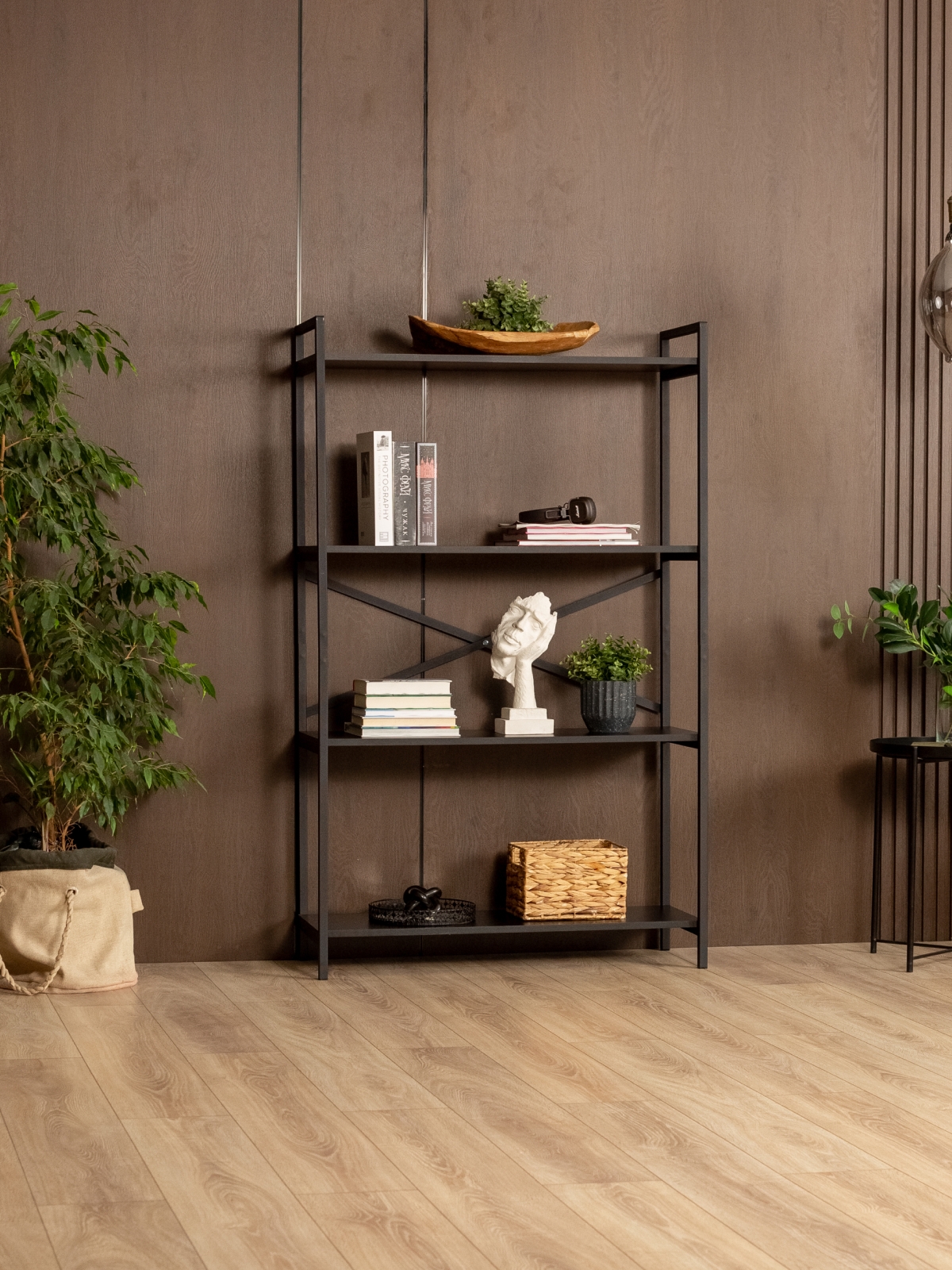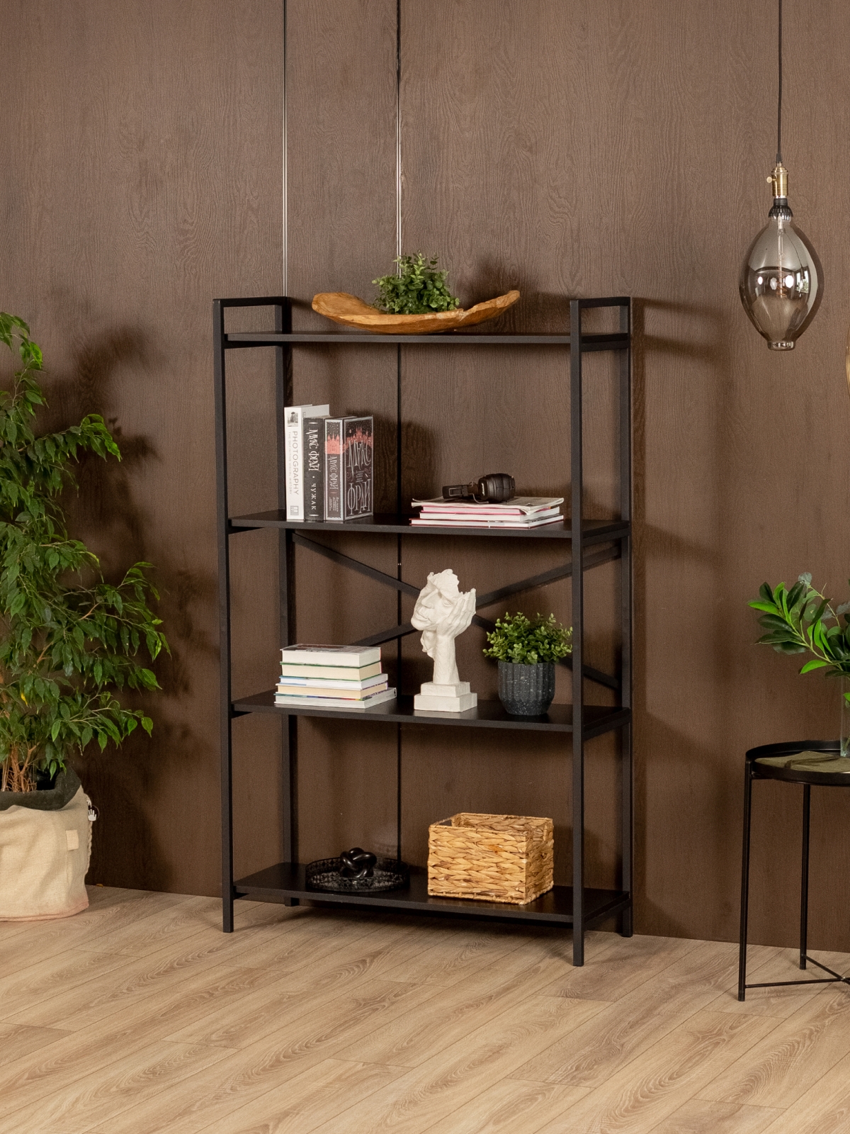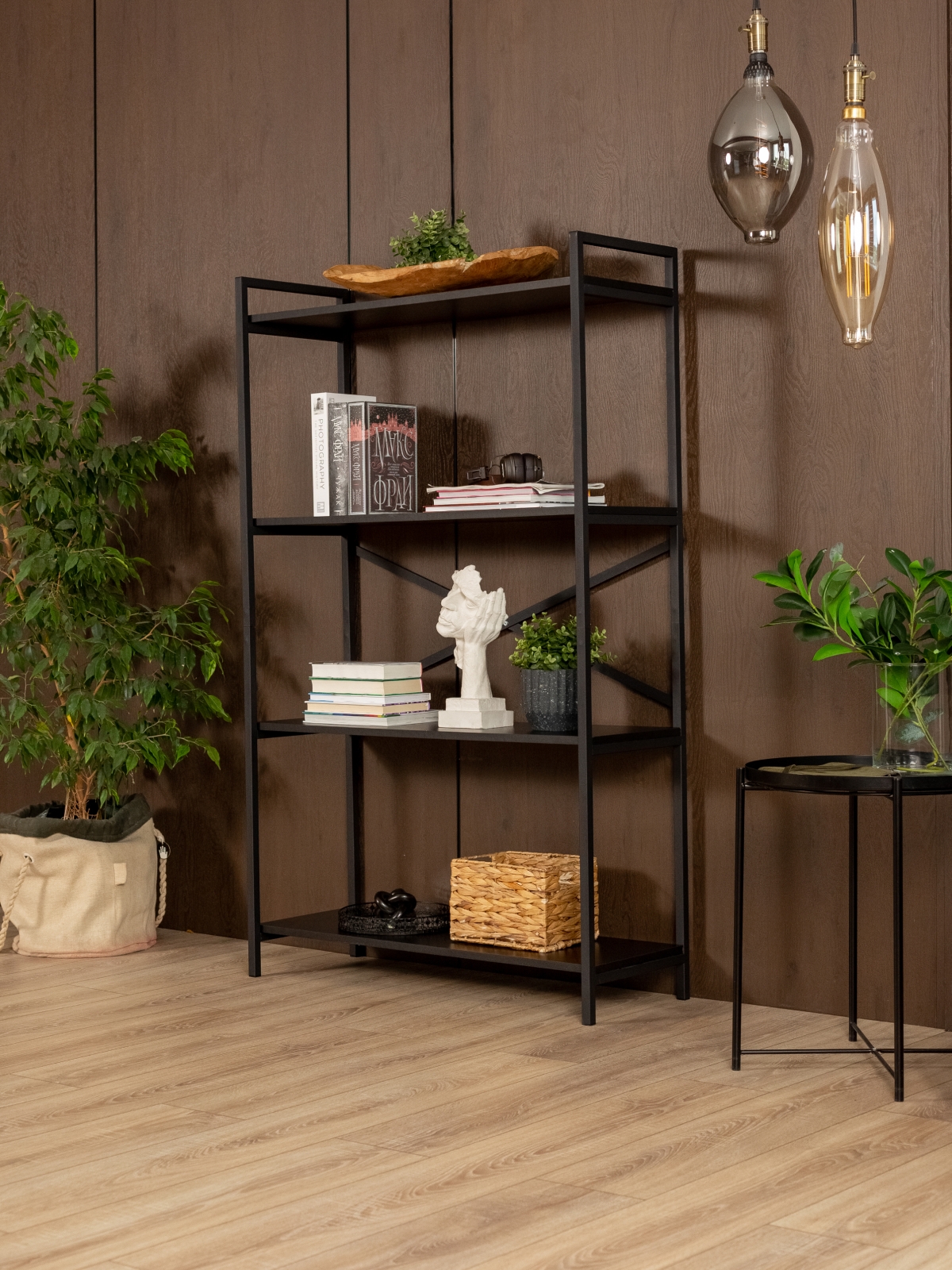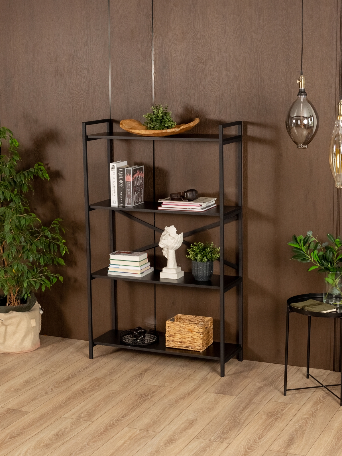 Стеллаж для посуды «Катунь» органично впишется в современные городские интерьеры — от лофта с кирпичными стенами и открытыми трубами до более мягких скандинавских и минималистичных пространств, где требуется выразительный акцент. Продуманная геометрия стеллажа на ножках и сочетание черного металла с древесной текстурой создают баланс между индустриальностью и теплотой, подчеркивая как строгие, так и уютные интерьеры. Металлический стеллаж для комнаты будет уместен в гостиной, кабинете, спальне, на кухне — везде, где нужно грамотно организовать хранение и при этом добавить пространству архитектурную выразительность.