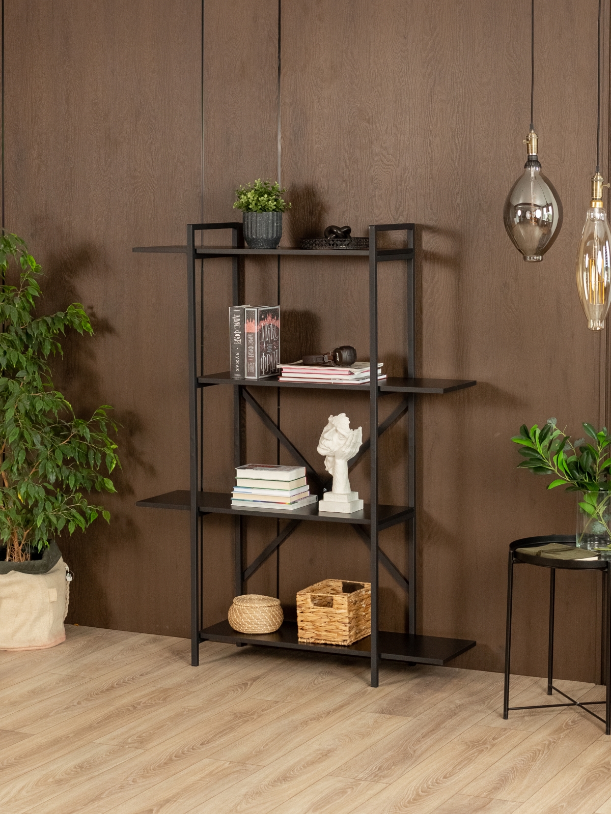 Открытый стеллаж с полками особенно пригодится для тех, кто ценит эстетику порядка. Строгие формы визуально структурируют интерьер, а выбор варианта сборки позволяет избежать однообразия. В комбинации с другой мебелью в стиле лофт — столами, вешалками или тумбами — стильный стеллаж «Катунь» легко становится частью полноценной интерьерной композиции.