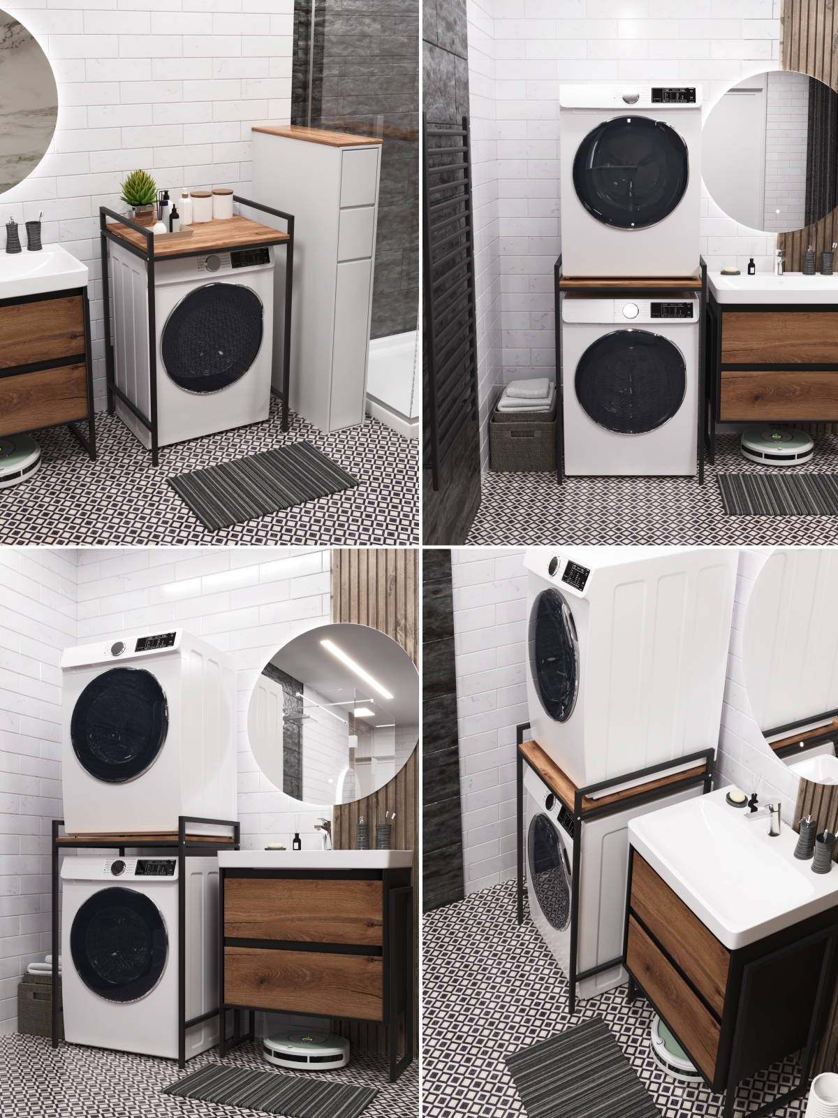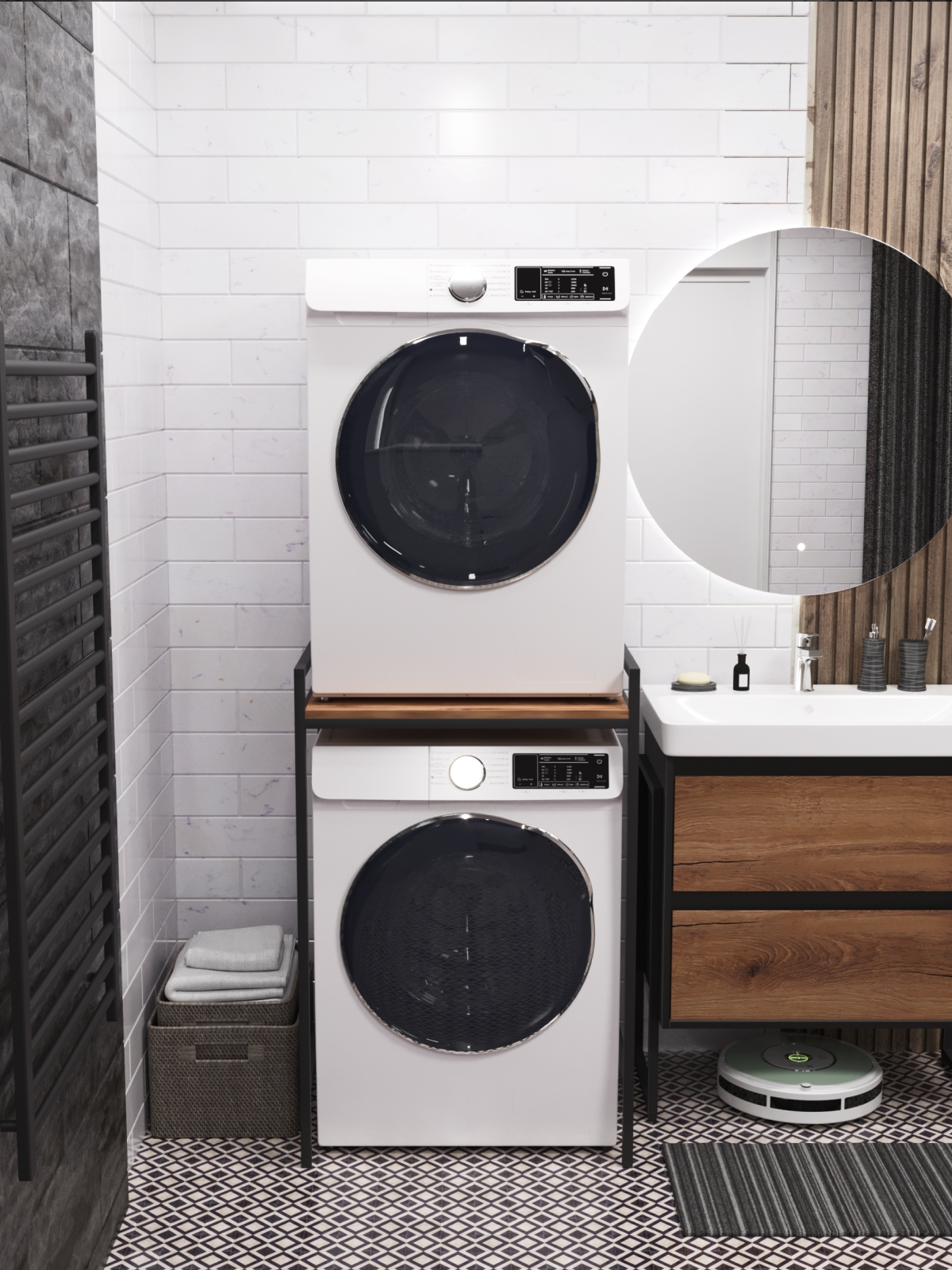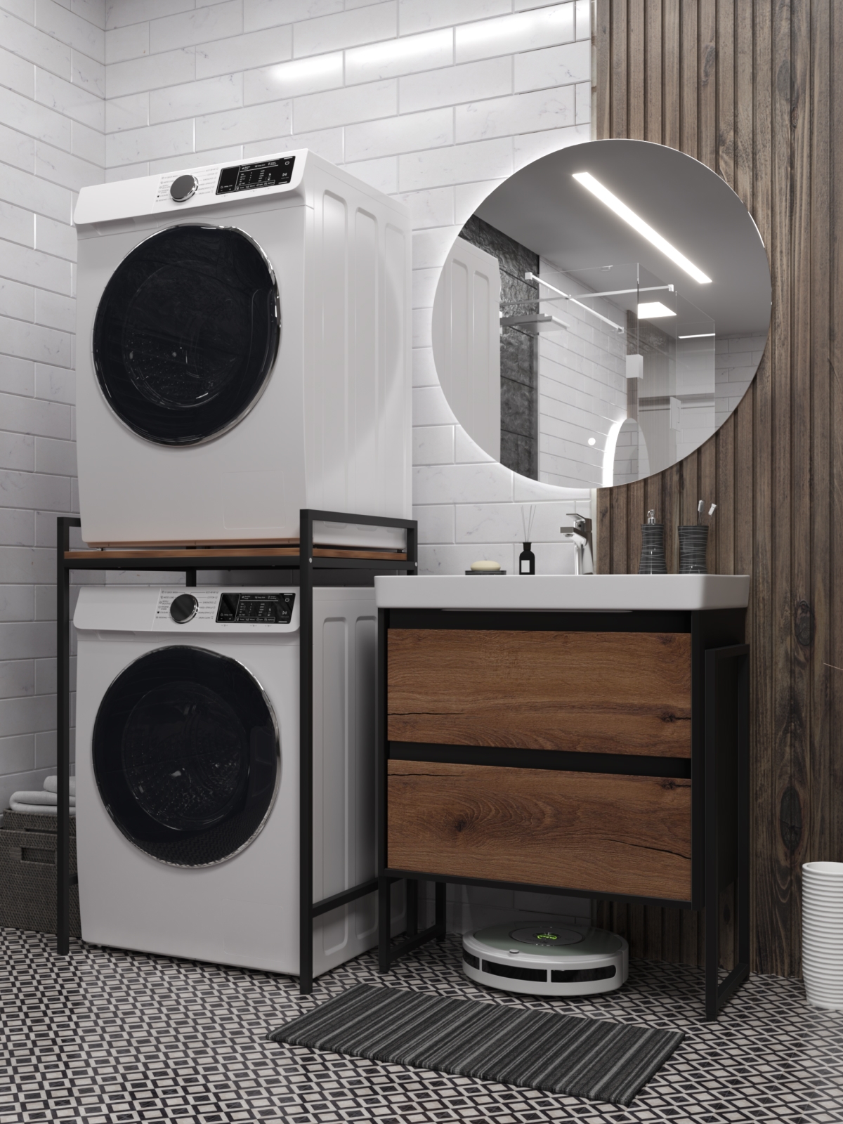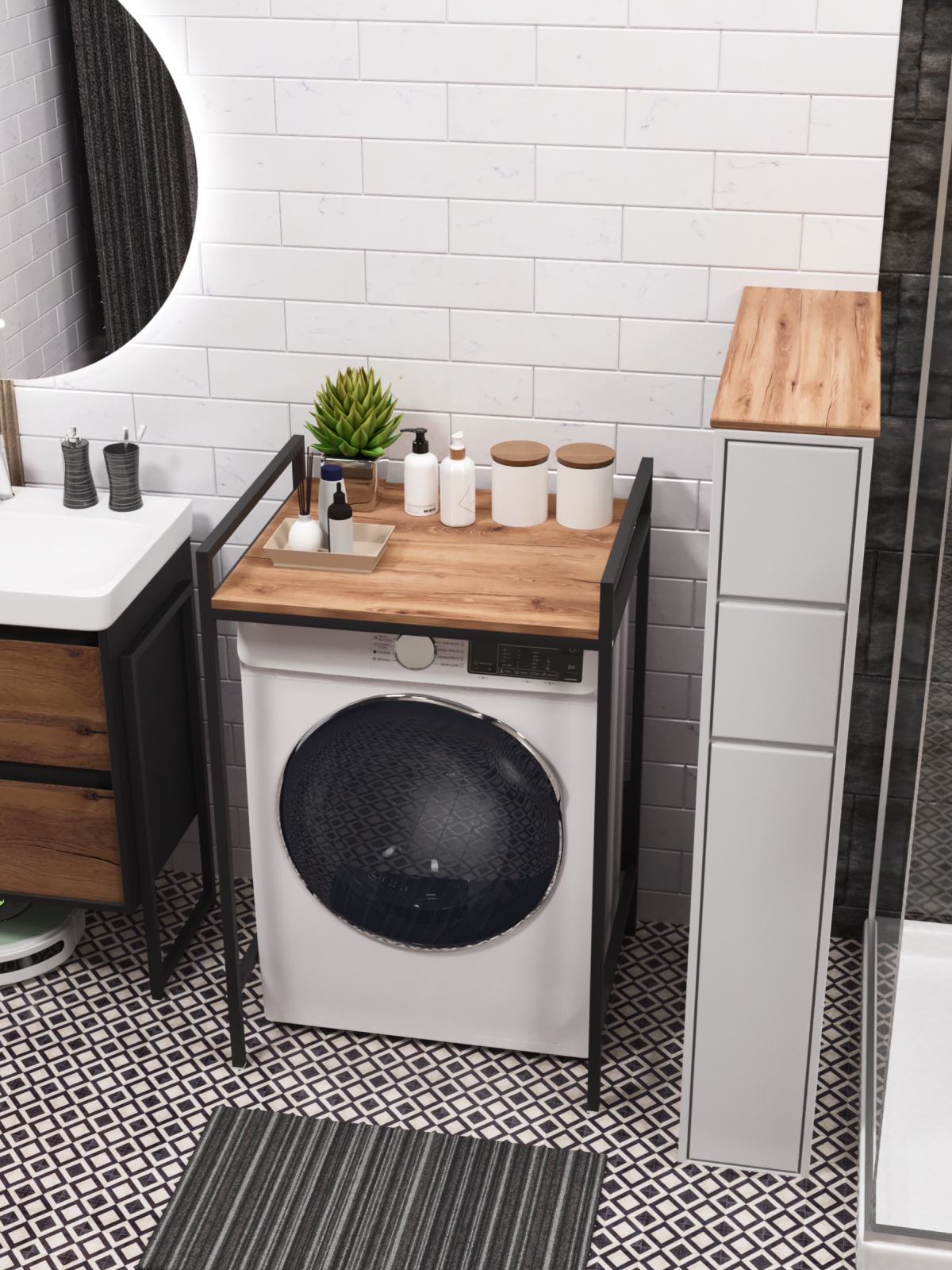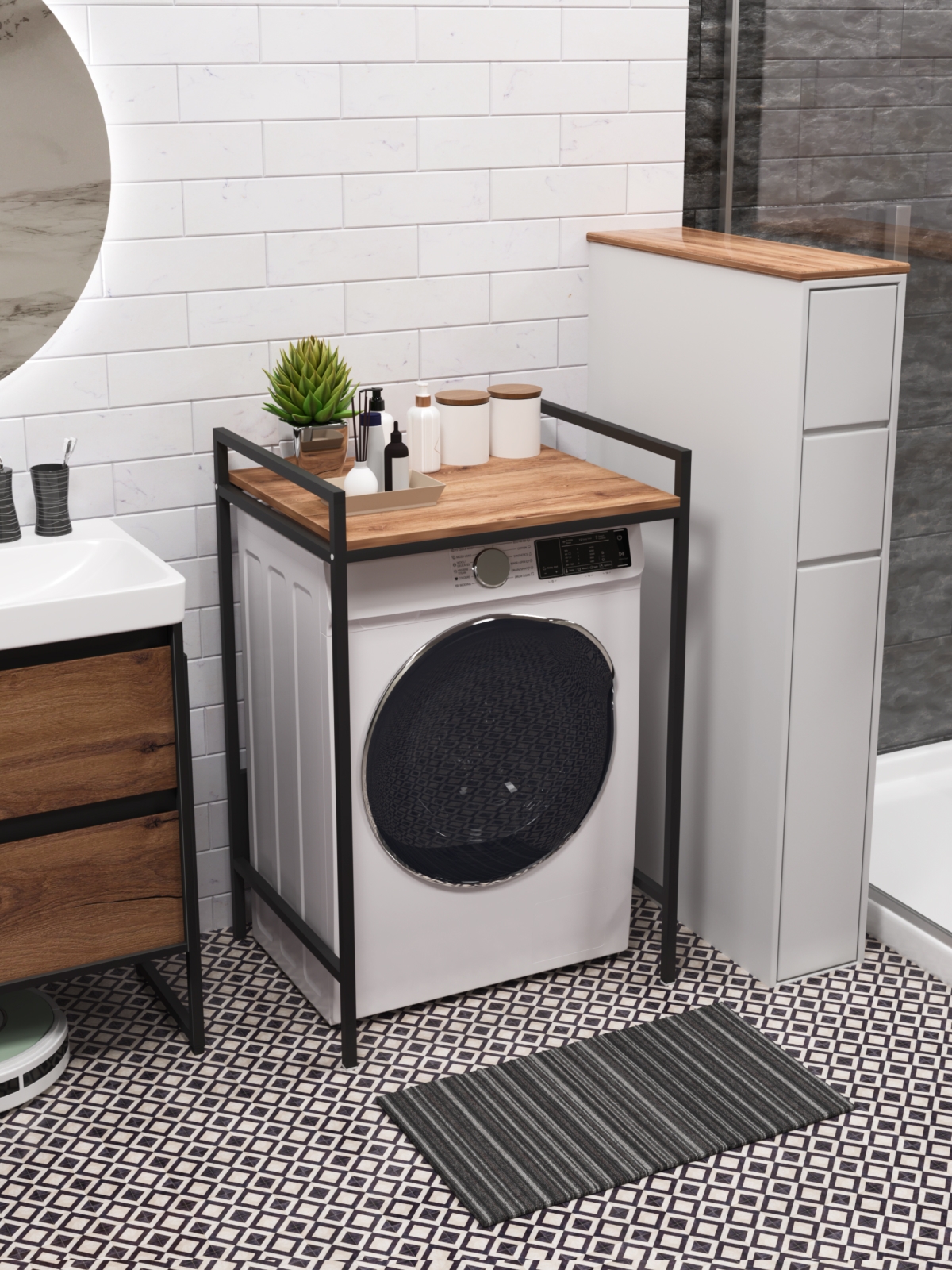 Стеллаж для стиральной машины «Шексна» — продуманное решение в стиле лофт для современной прачечной и ванной комнаты. Интерьер ванных комнат и хозяйственных помещений постепенно уходит от утилитарности и стремится к эстетике. Даже самые функциональные зоны дома становятся частью общей стилистики. Если вы цените порядок, минимализм и современный индустриальный дизайн — стеллаж «Шексна» создан именно для вас.
