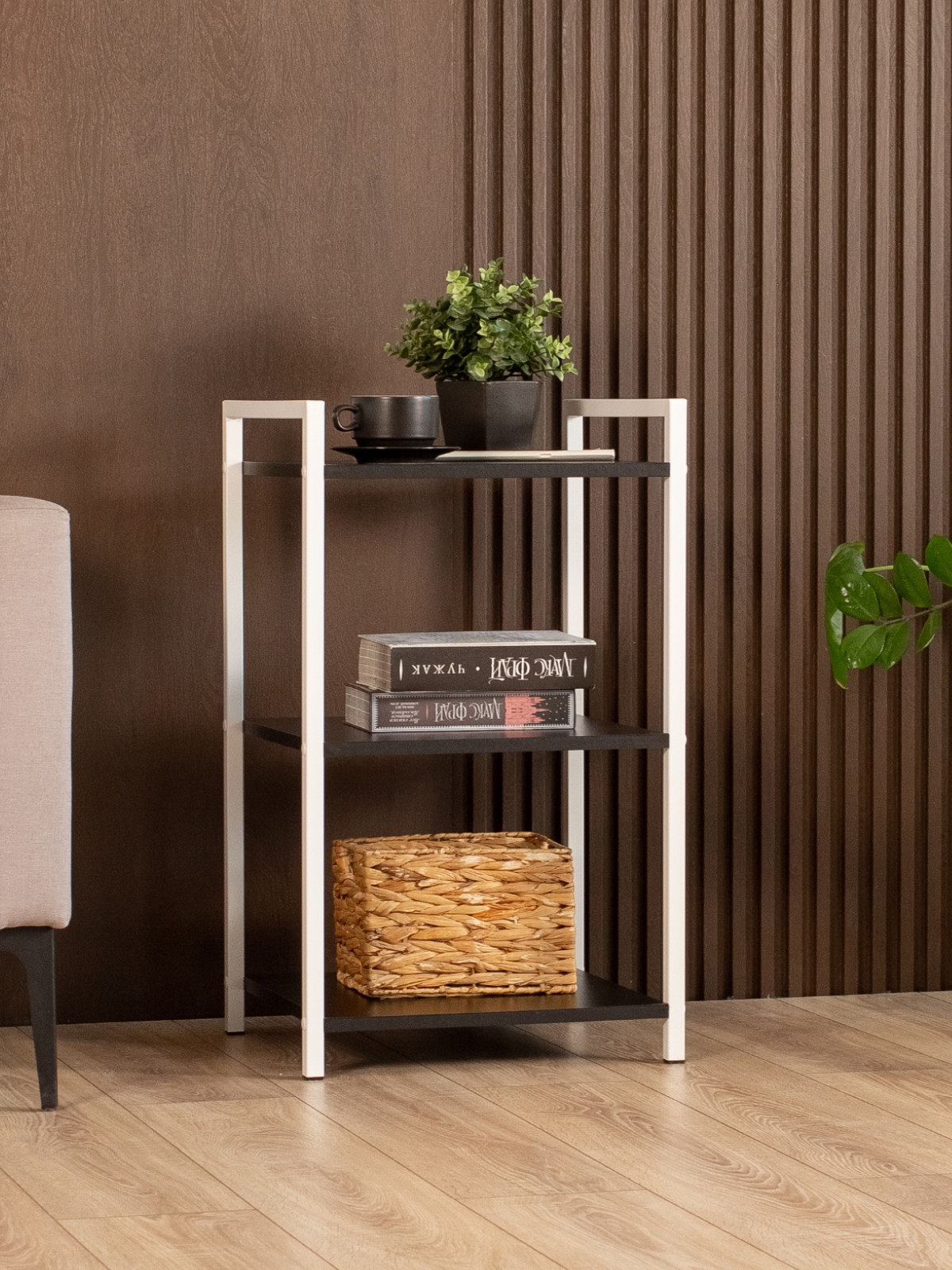 Благодаря лаконичному дизайну и сбалансированным пропорциям стеллаж не перегружает пространство, сохраняя визуальную легкость и создавая необходимый порядок в вашем доме.