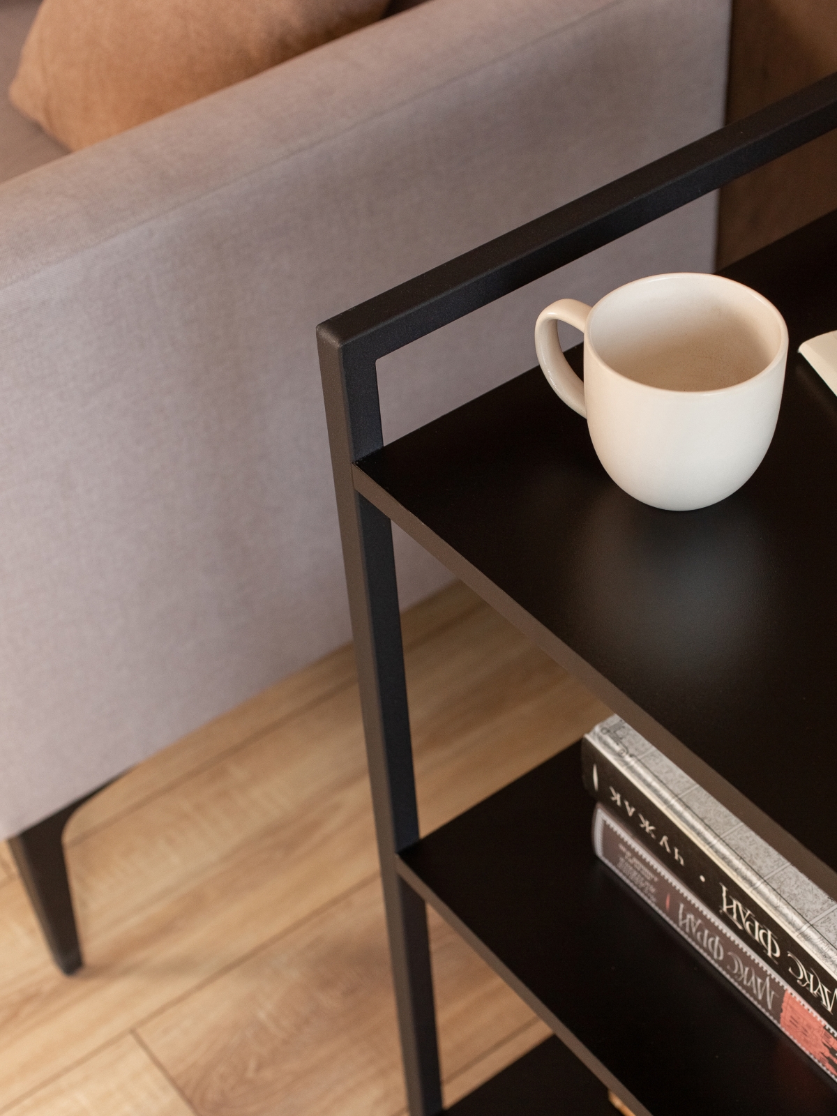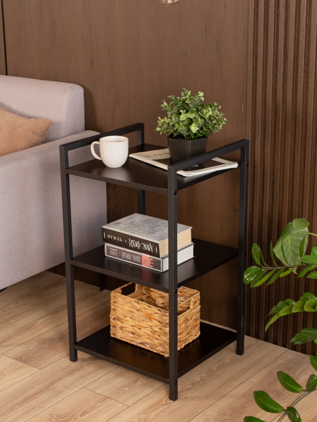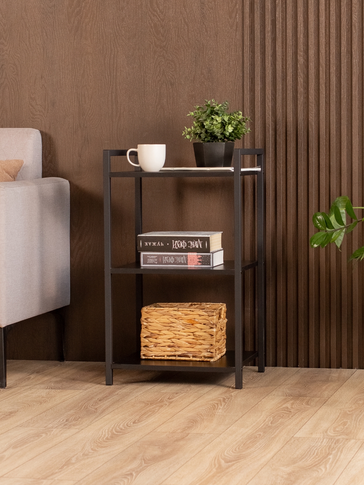 Напольная полка-стеллаж «Двина» — это гармоничное воплощение классического лофта, объединяющее прочность, функциональность и выразительный дизайн. Ее каркас выполнен из сварного металла с полимерно-порошковым покрытием насыщенного черного цвета, что гарантирует долговечность и устойчивость к царапинам и коррозии. Стеллаж подойдет для хранения самых разных предметов — от книг и декора до бытовой техники и повседневных аксессуаров.