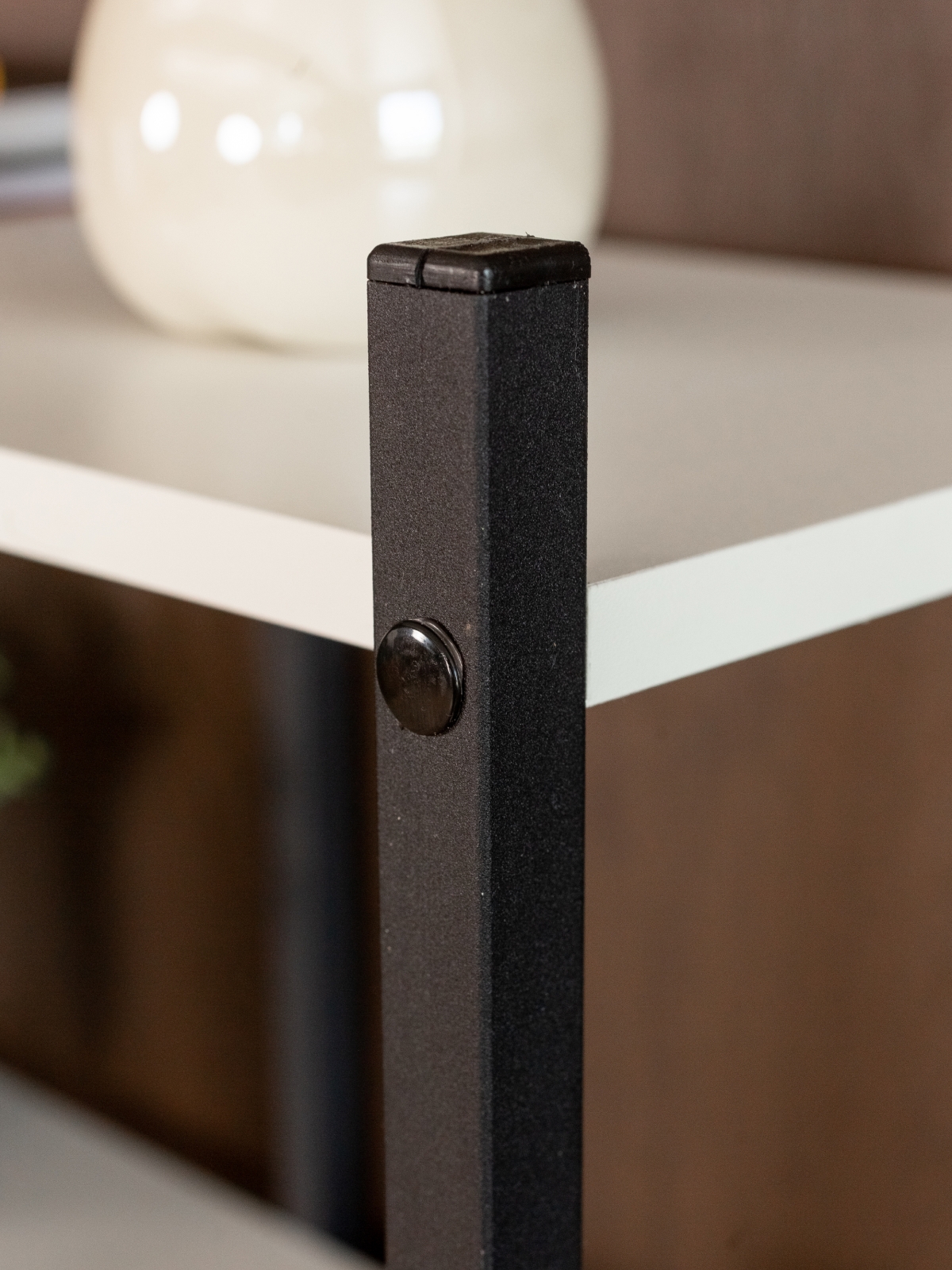 Стеллаж можно использовать как для декора, так и для практичного хранения. Он подойдет как для гостиных, так и для рабочих зон, домашних библиотек и даже кухонь, оформленных в урбанистическом духе.
