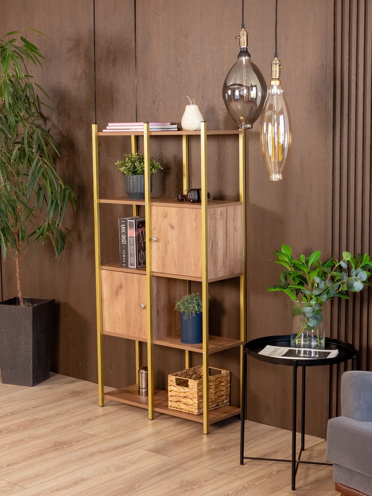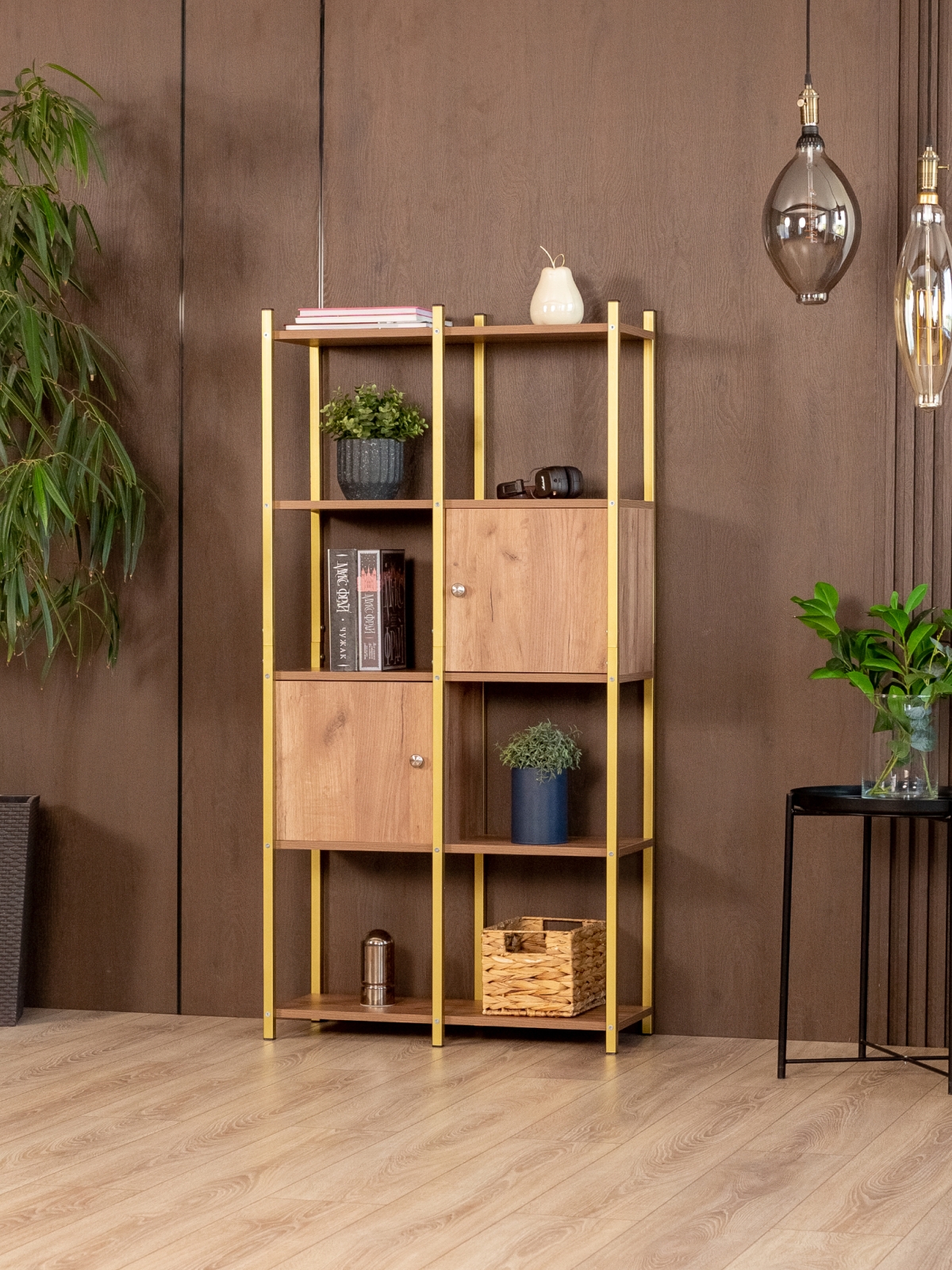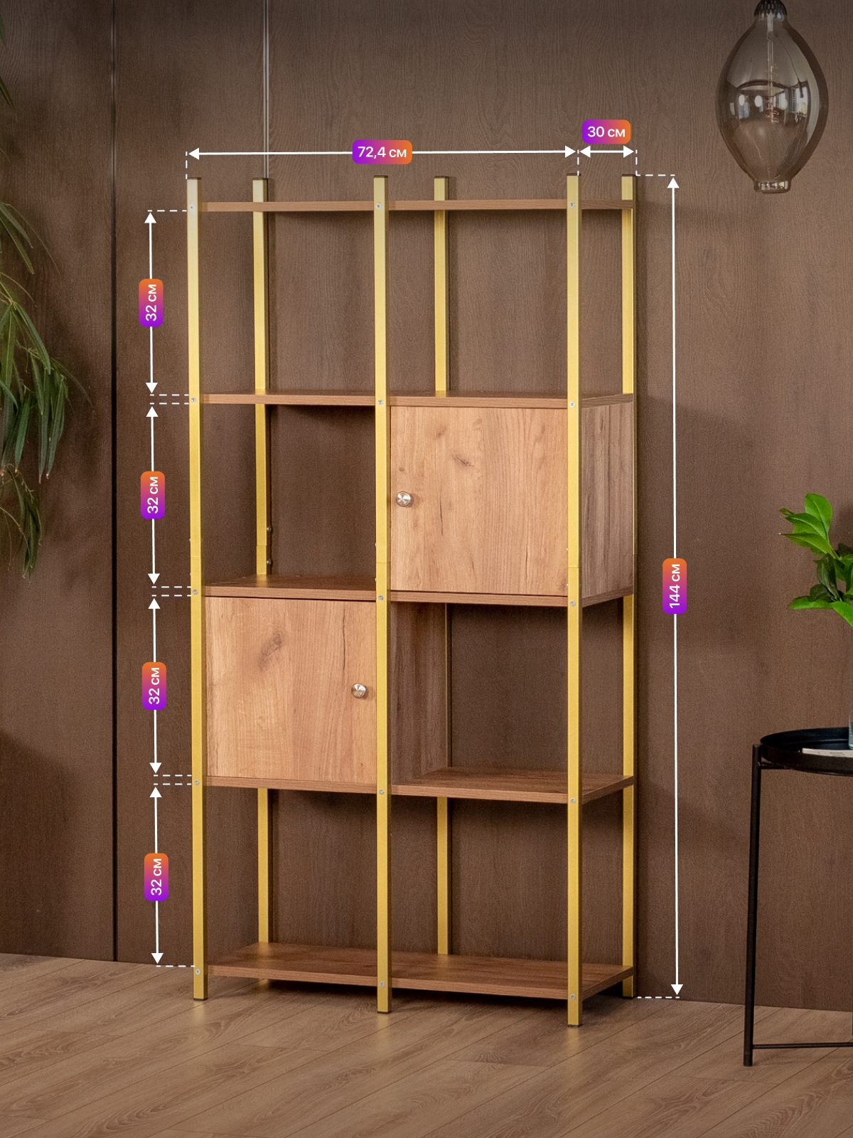 Стеллаж с дверцами и полками Сагамо золотой/амаретто