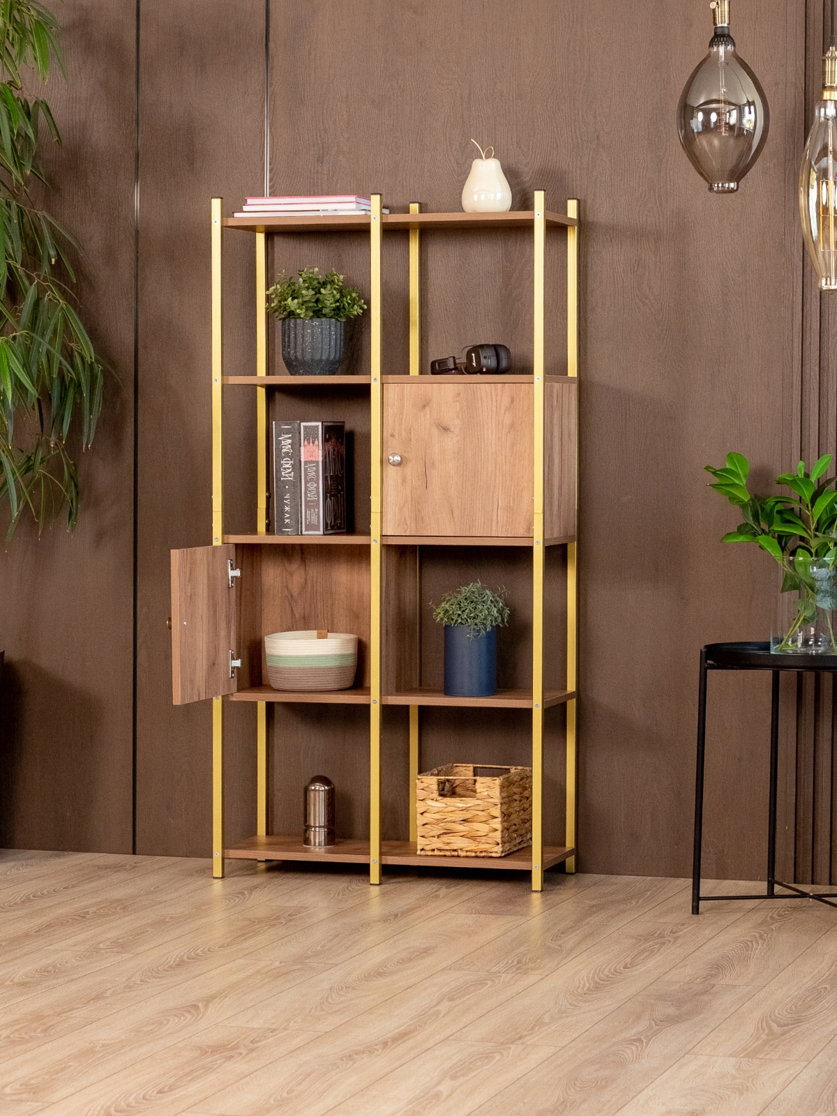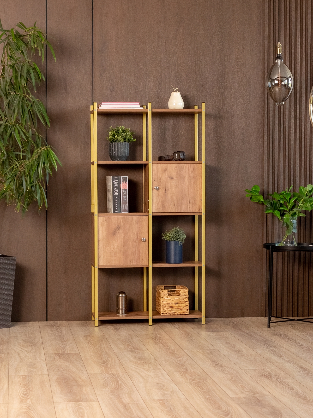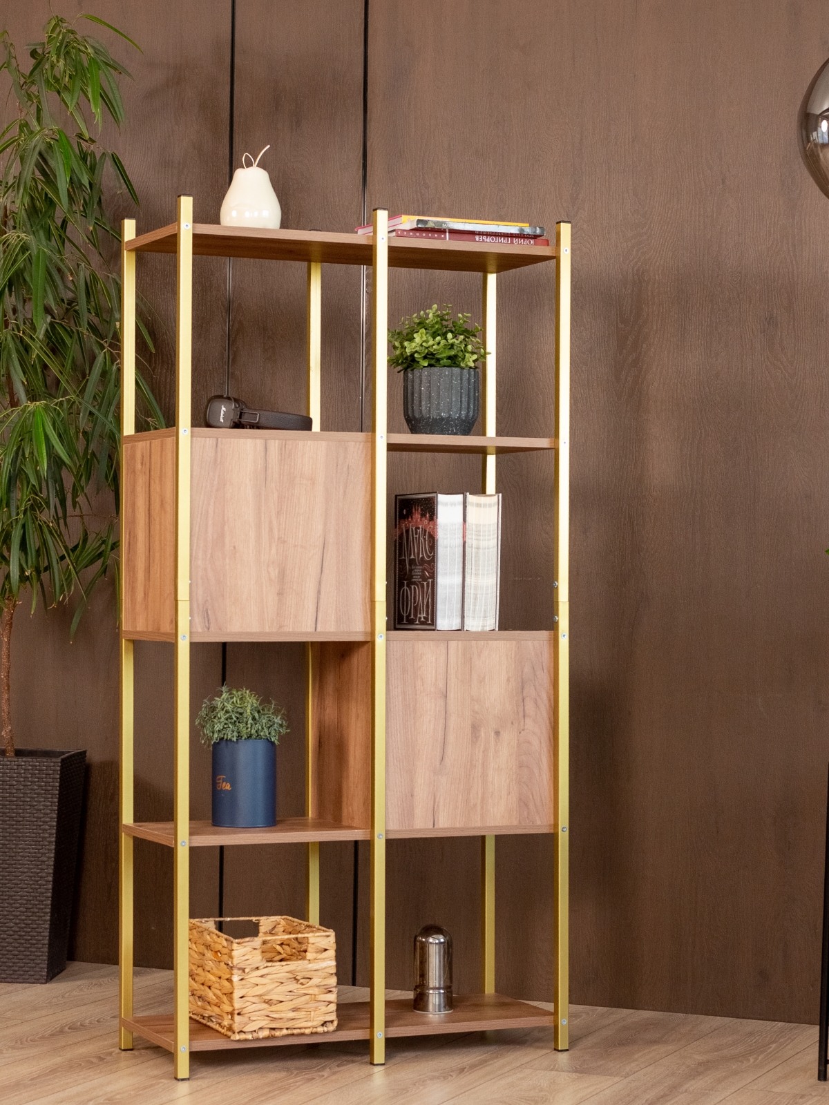 Стеллаж с дверцами и полками Сагамо золотой/амаретто