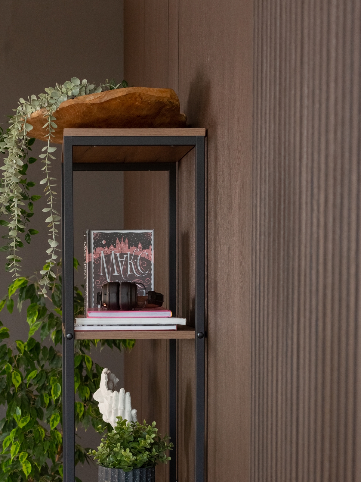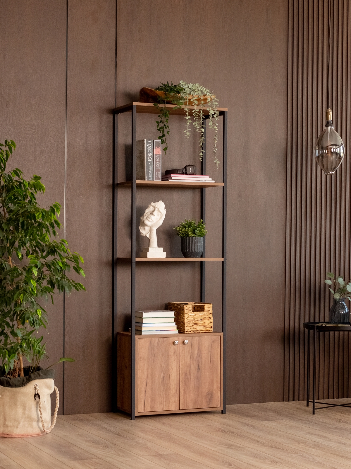 Этот стеллаж создан для того, чтобы служить долго и выглядеть актуально вне зависимости от перемен в интерьере. Он поддерживает визуальный порядок, при этом не создает ощущения нагроможденности. Четкие формы, теплая фактура дерева и надежность металла делают его идеальным выбором для тех, кто ценит стиль, продуманность и универсальность в каждой детали