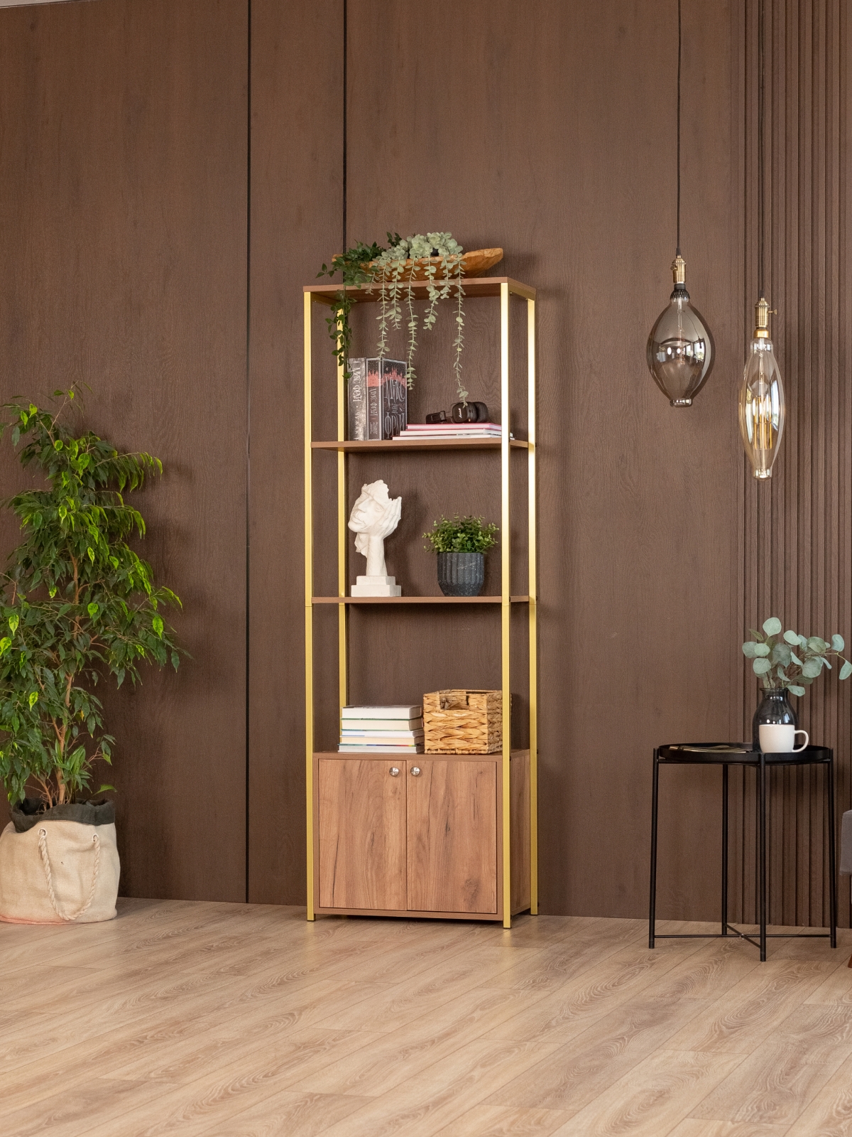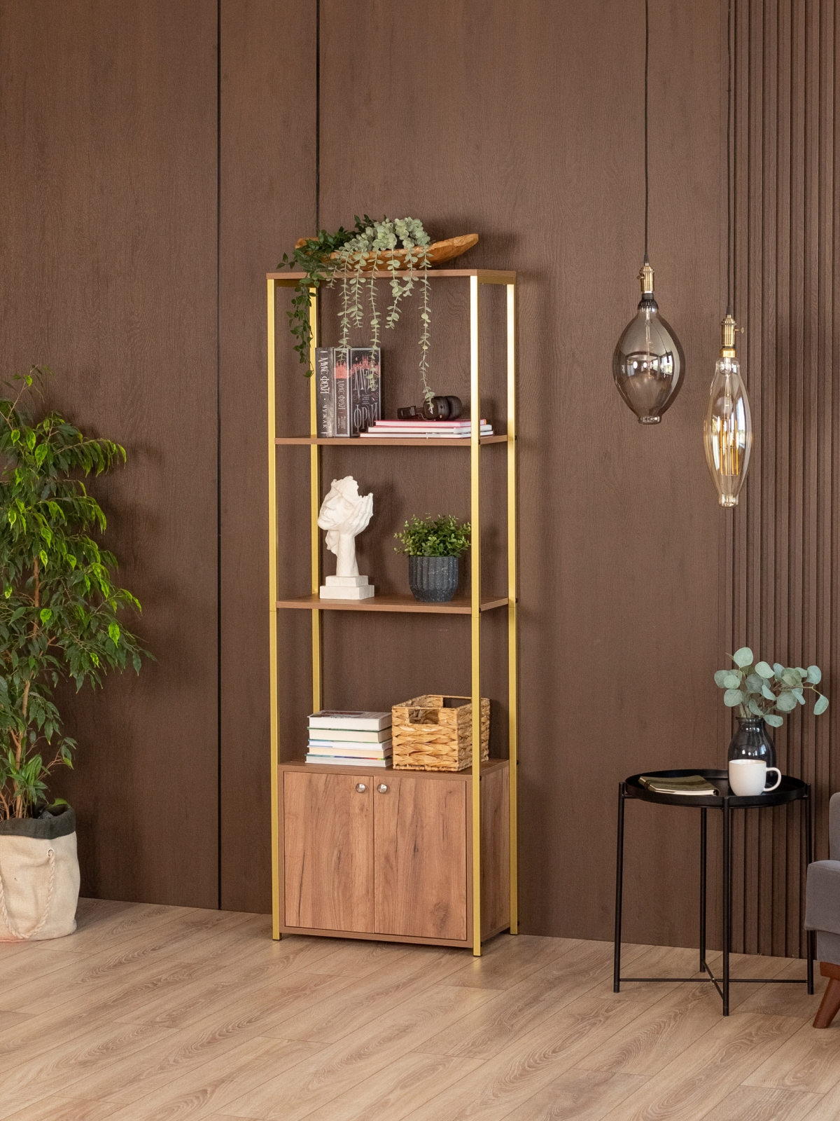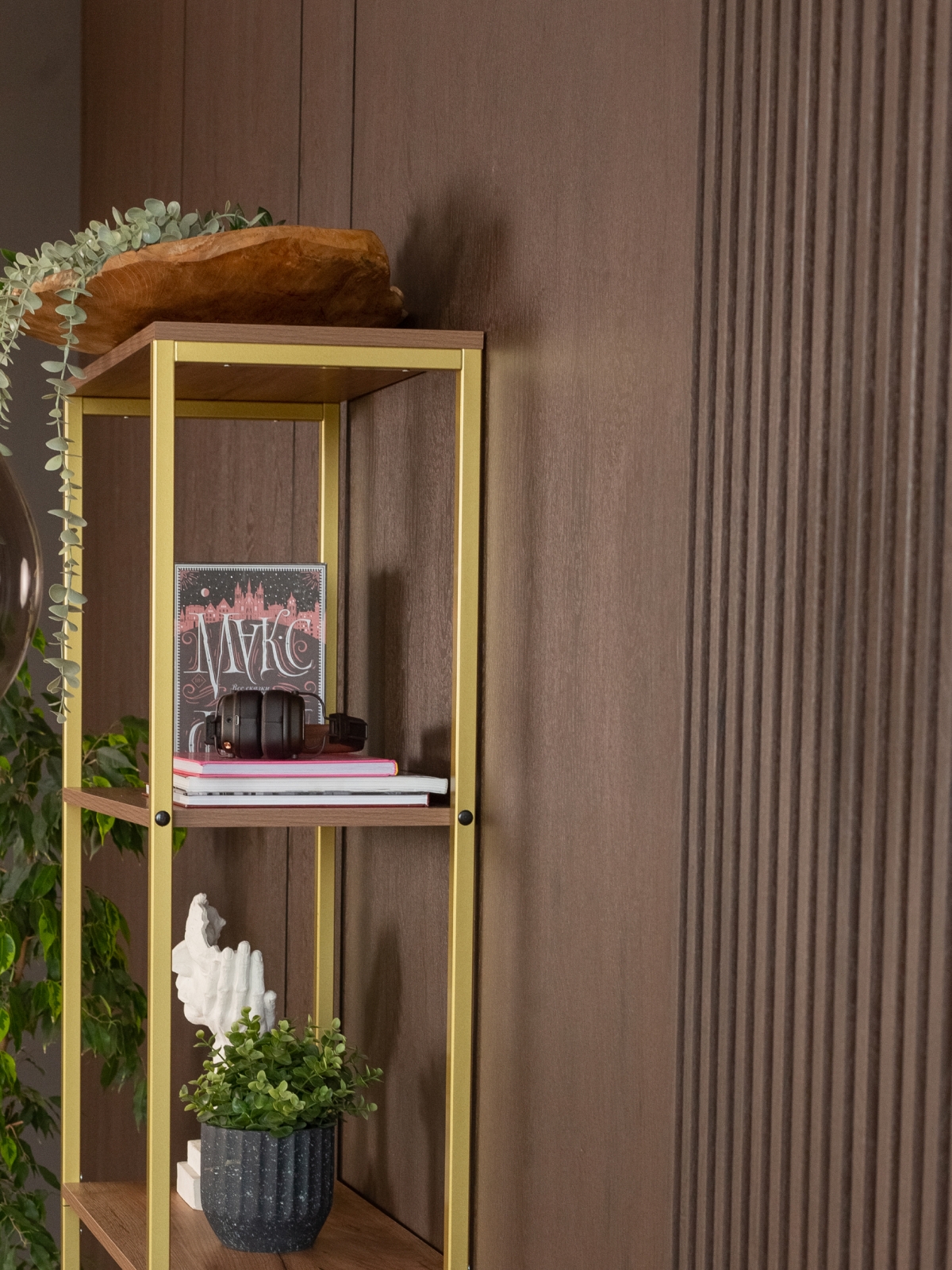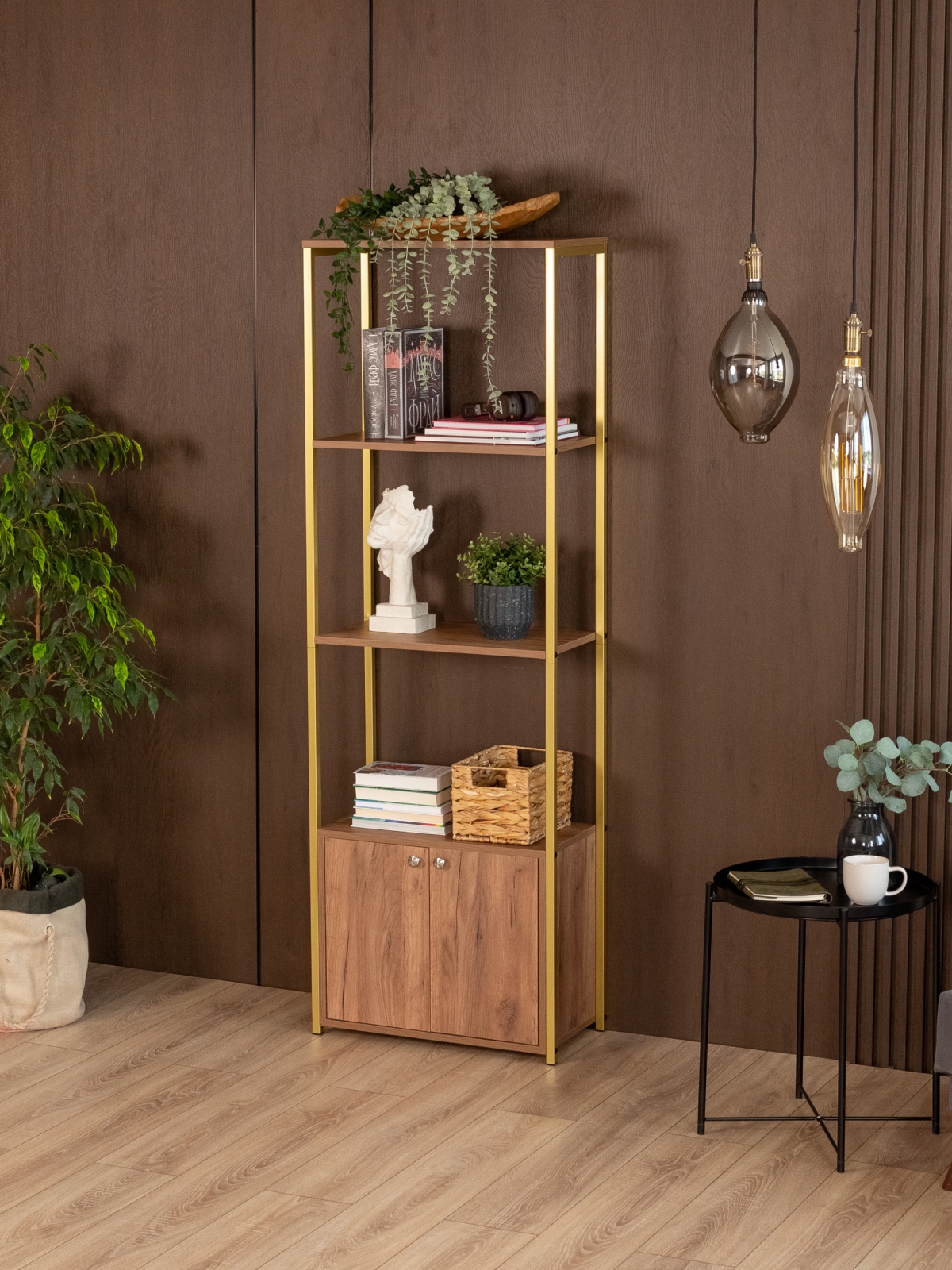 Стеллаж «Семуа» — это эффектный акцент для интерьера, в котором сочетаются индустриальный характер и нотки изысканности. Стеллаж создан в стиле глэм-лофт и объединяет геометрию лофта с выразительными материалами и благородным золотым оттенком, превращаясь из просто функционального элемента в яркий интерьерный объект с харизмой. Такой стеллаж не остается фоном — он становится визуальной опорой пространства, придавая ему характер, глубину и завершенность.
