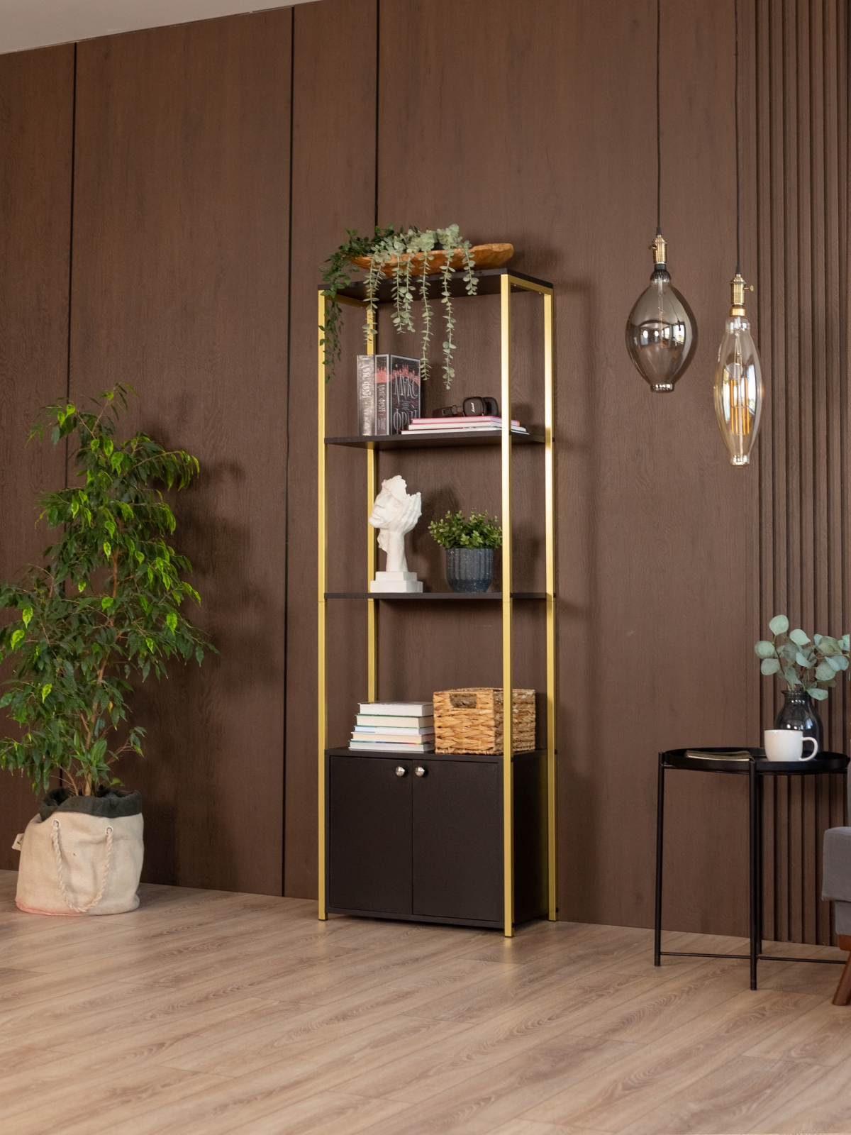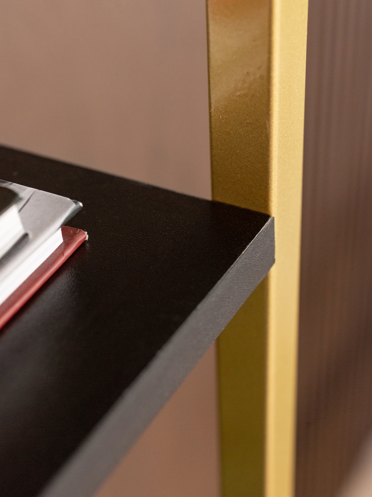 Стеллаж «Семуа» — это эффектный акцент для интерьера, в котором сочетаются индустриальный характер и нотки изысканности. Стеллаж создан в стиле глэм-лофт и объединяет геометрию лофта с выразительными материалами и благородным золотым оттенком, превращаясь из просто функционального элемента в яркий интерьерный объект с харизмой. Такой стеллаж не остается фоном — он становится визуальной опорой пространства, придавая ему характер, глубину и завершенность.