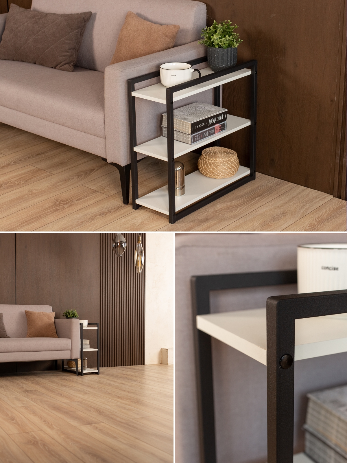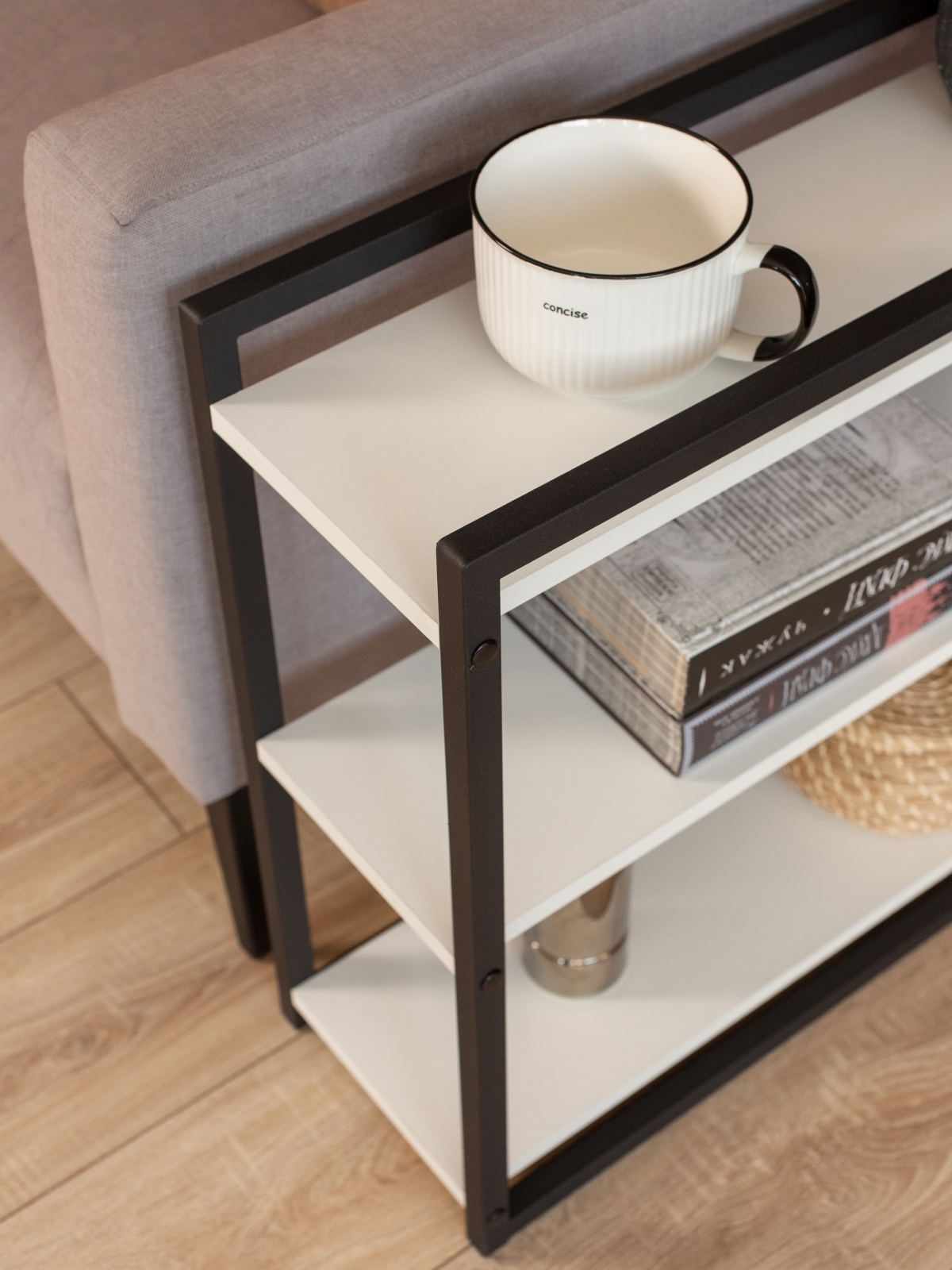 Выбирая этот узкий приставной стол, вы получаете функциональный журнальный стол для дивана, который станет прекрасной приставкой к любой зоне отдыха. Он подчеркивает индустриальный стиль, создавая ощущение современности и динамики в комнате. Металлический черный каркас с полками из ЛДСП предлагает идеальный баланс между эстетикой и удобством хранения.