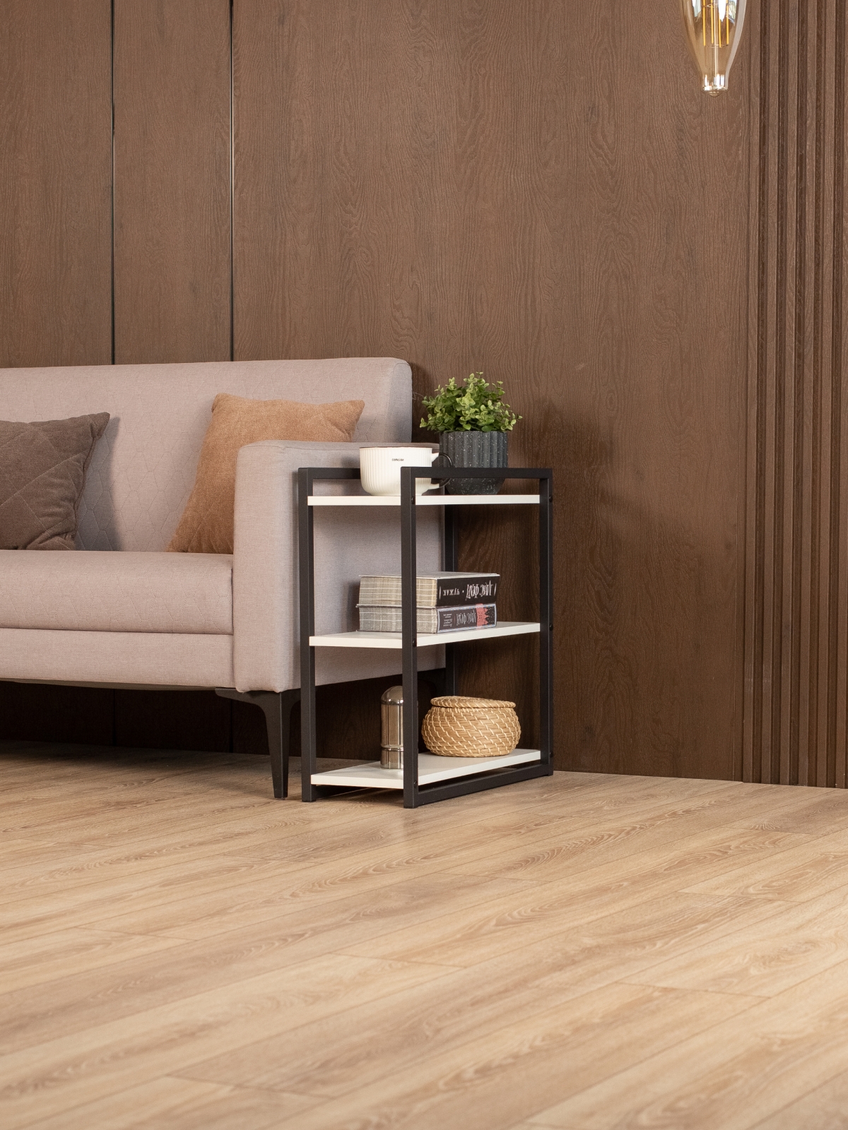 Напольный диванный приставной стол «Ула» — универсальное решение как для дома, так и для коммерческих помещений. Он отлично работает в качестве приставки к дивану, обеспечивая удобную поверхность для чашки кофе, гаджетов или уютных деталей интерьера. Столик с полками в прямоугольной форме подчеркивает функциональность при сохранении легкости и воздушности конструкции.