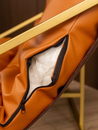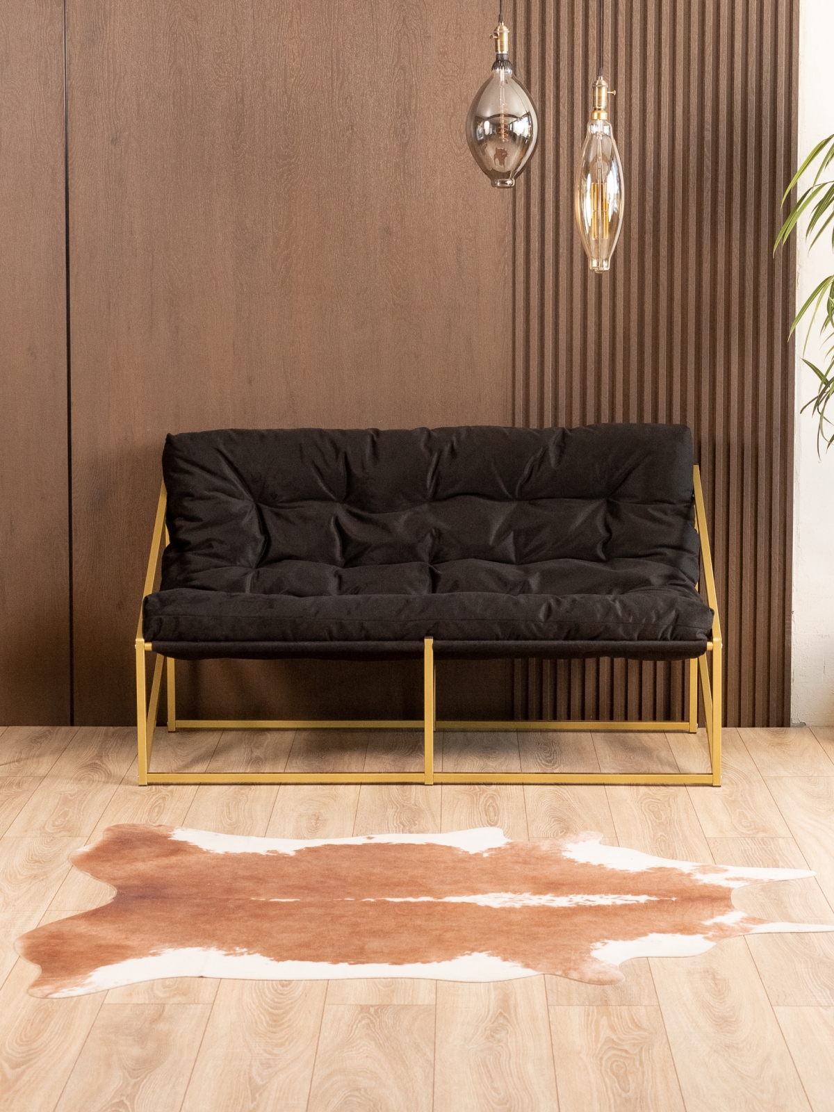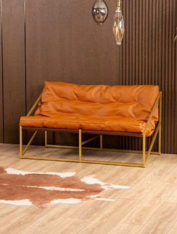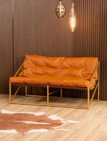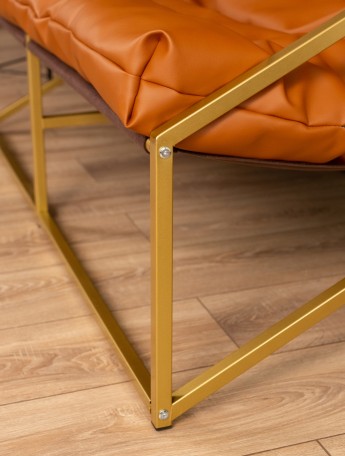 Диван металлический с мягкой подушкой Кирья кожа золотой/коричневый