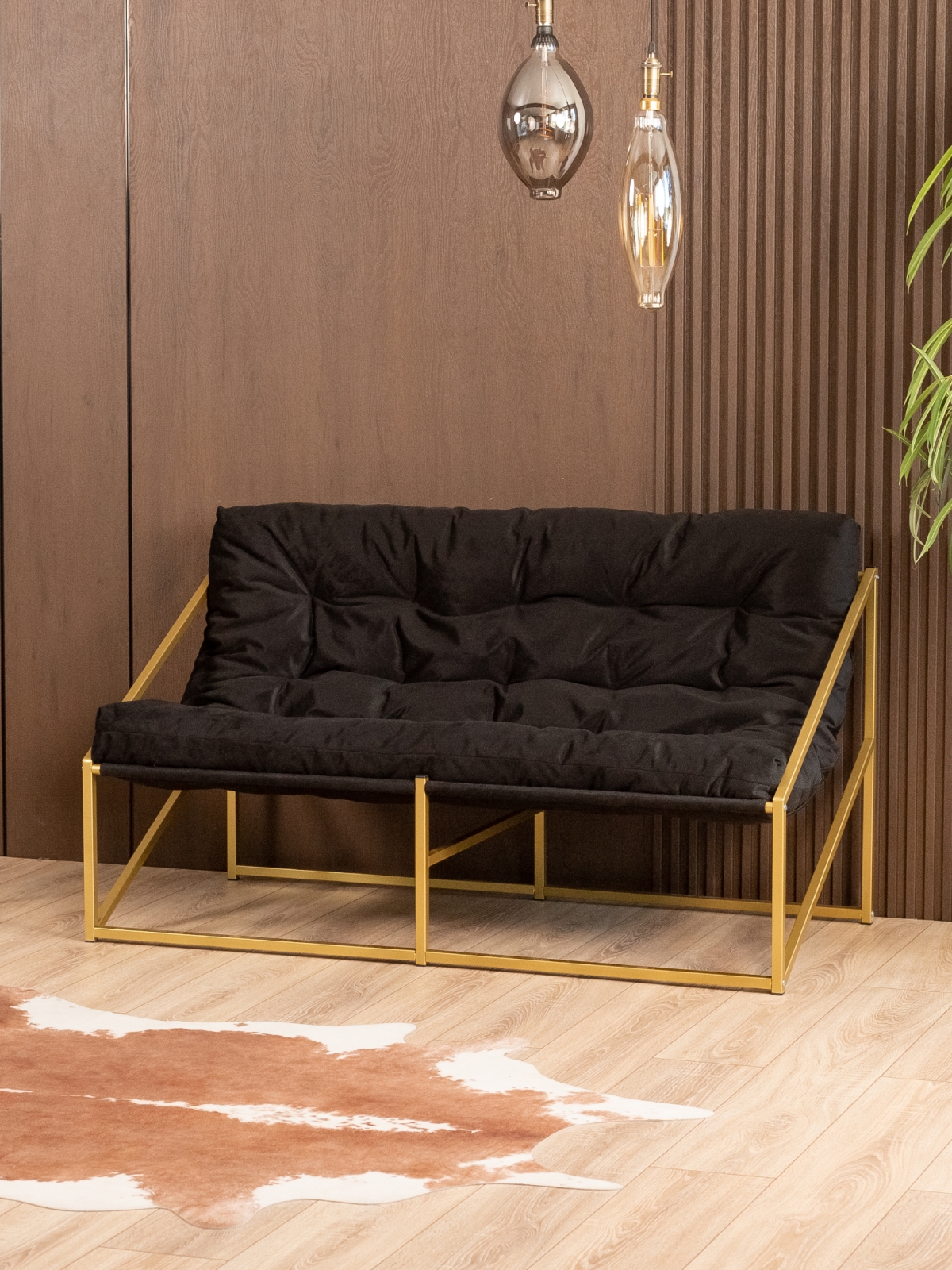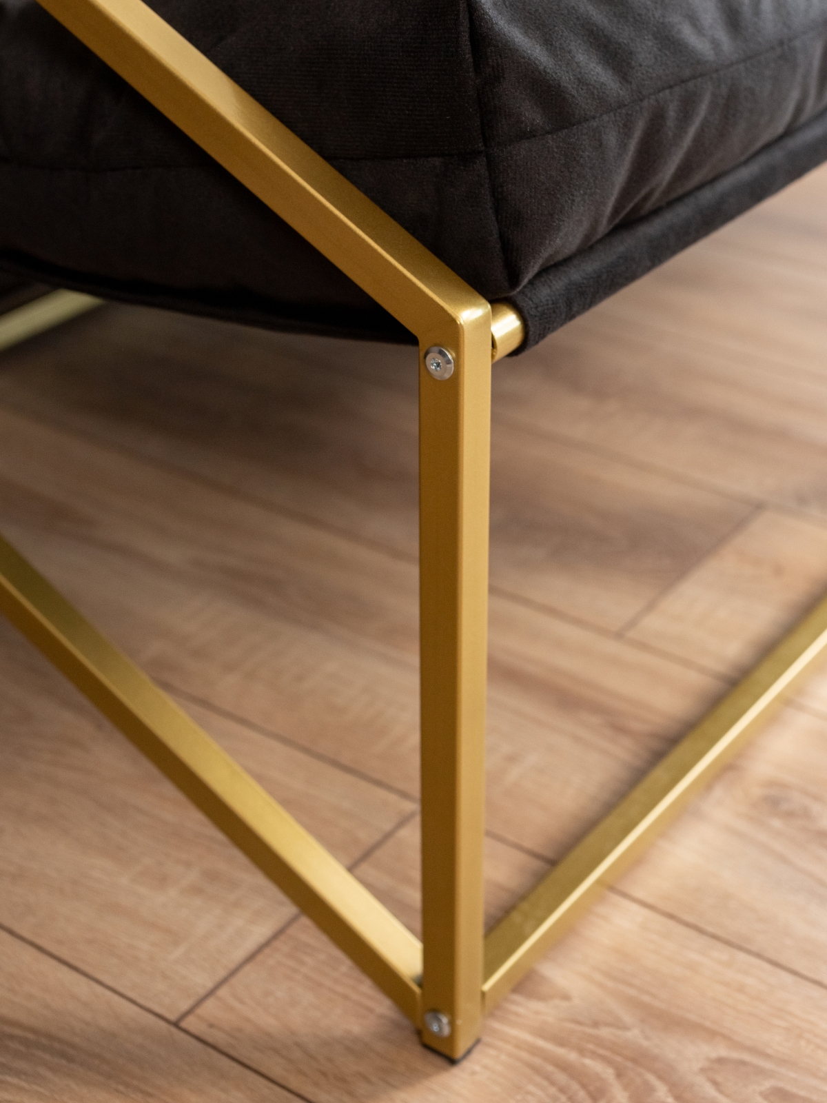 Диван металлический с мягкой подушкой Кирья велюр золотой/черный