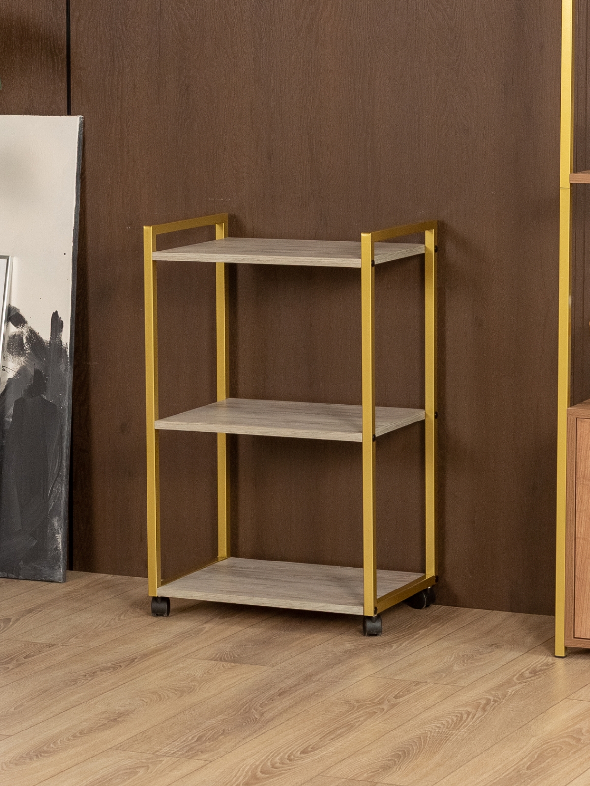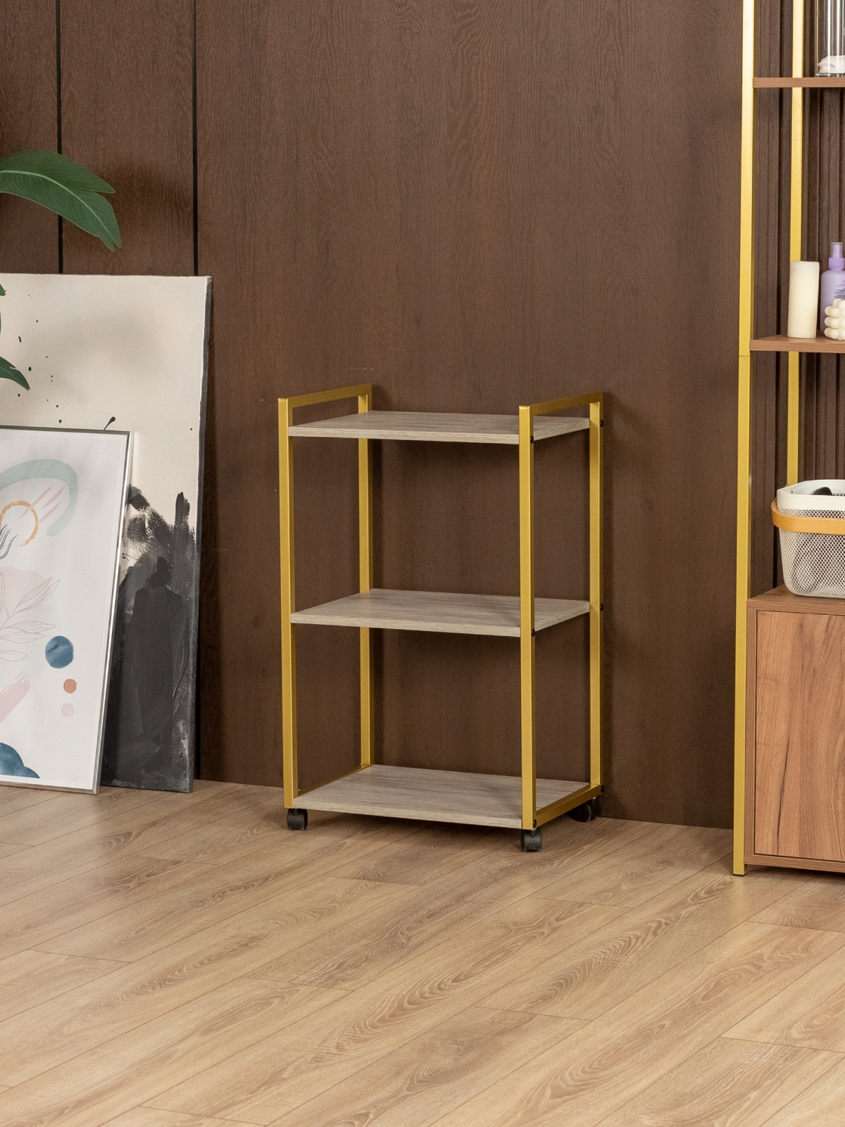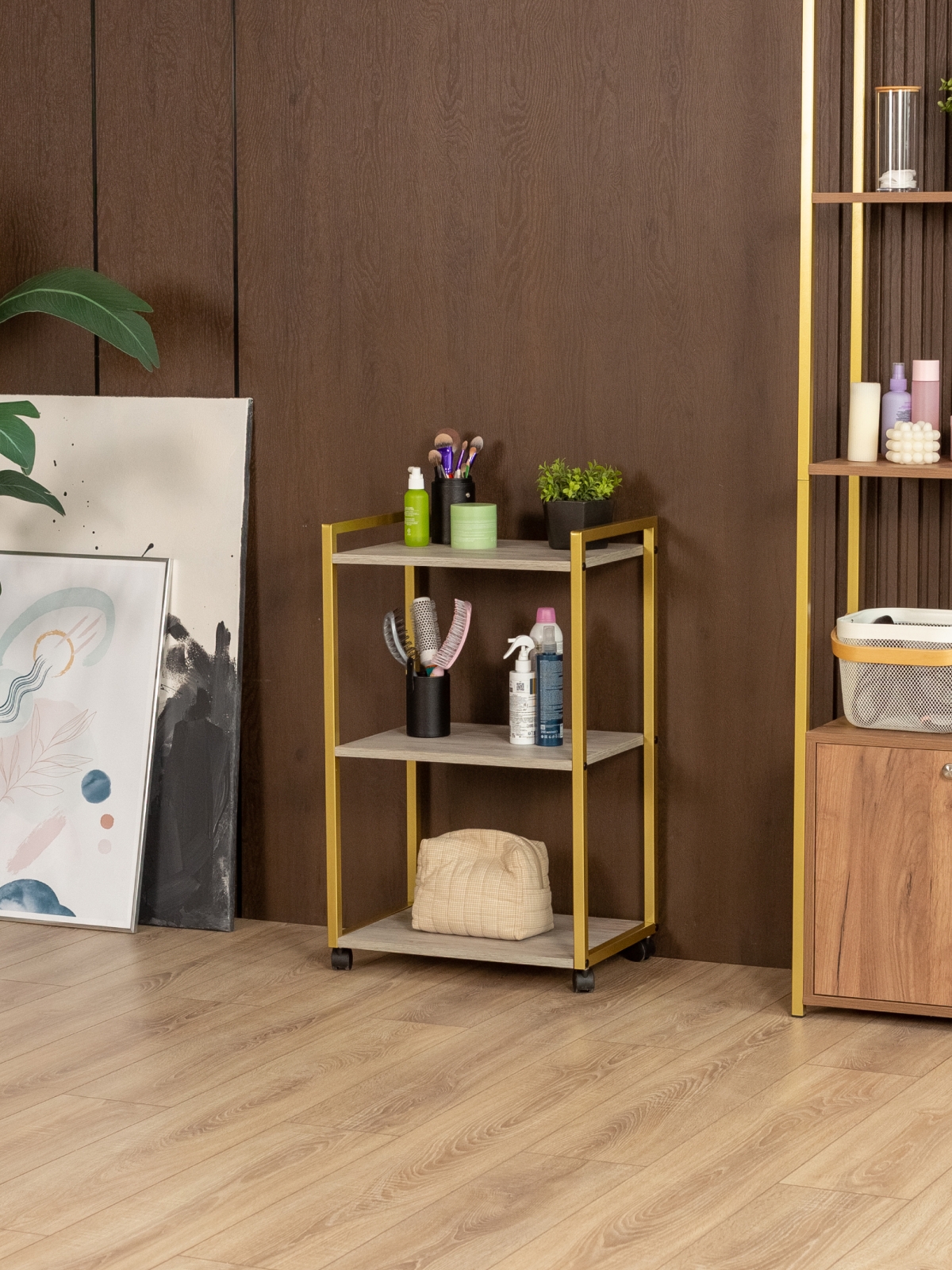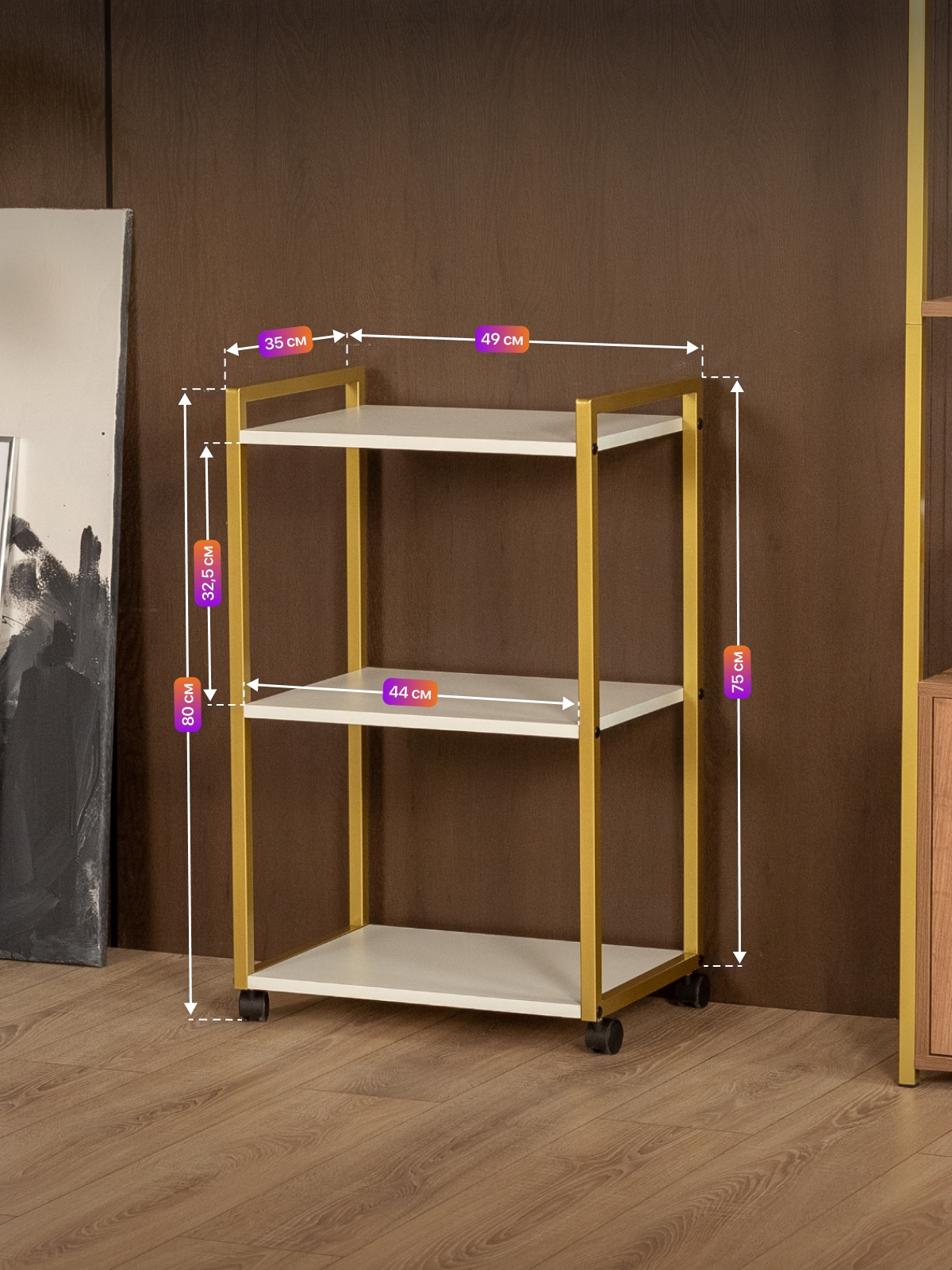 Косметологическая тележка трехъярусная на колесиках Амур золотой/кашемир