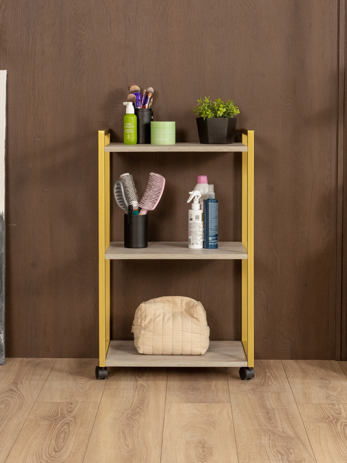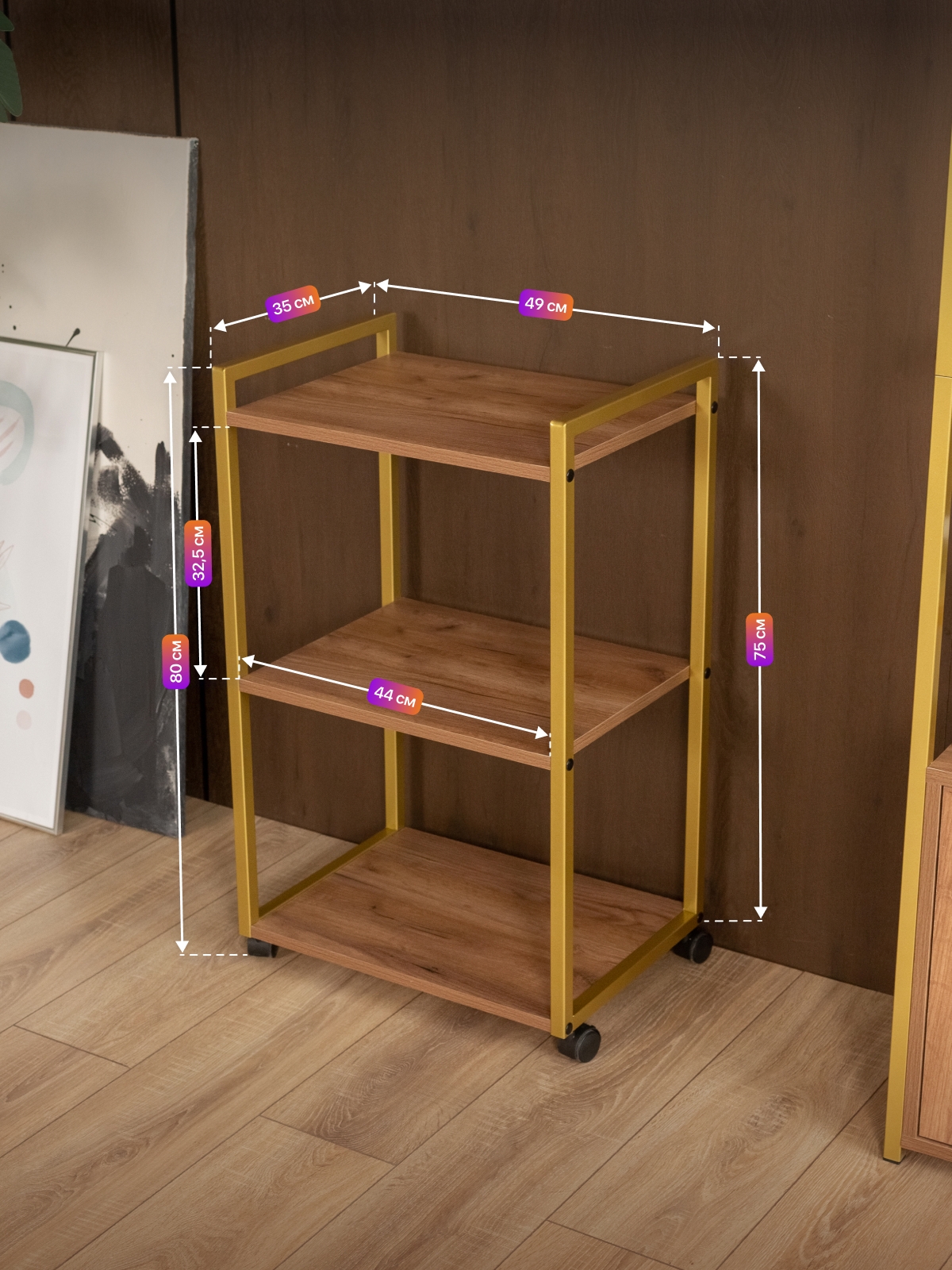Косметологическая тележка трехъярусная на колесиках Амур золотой/амаретто