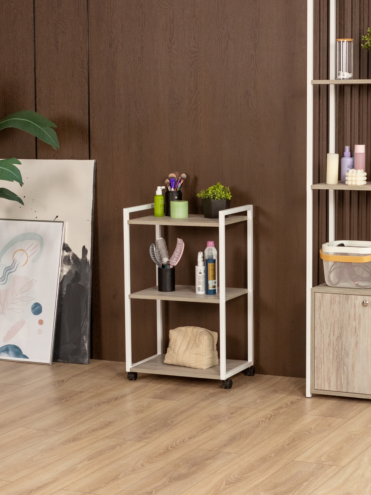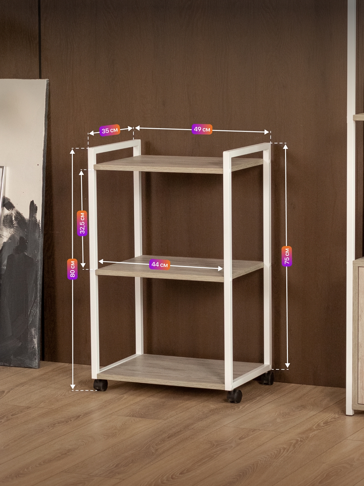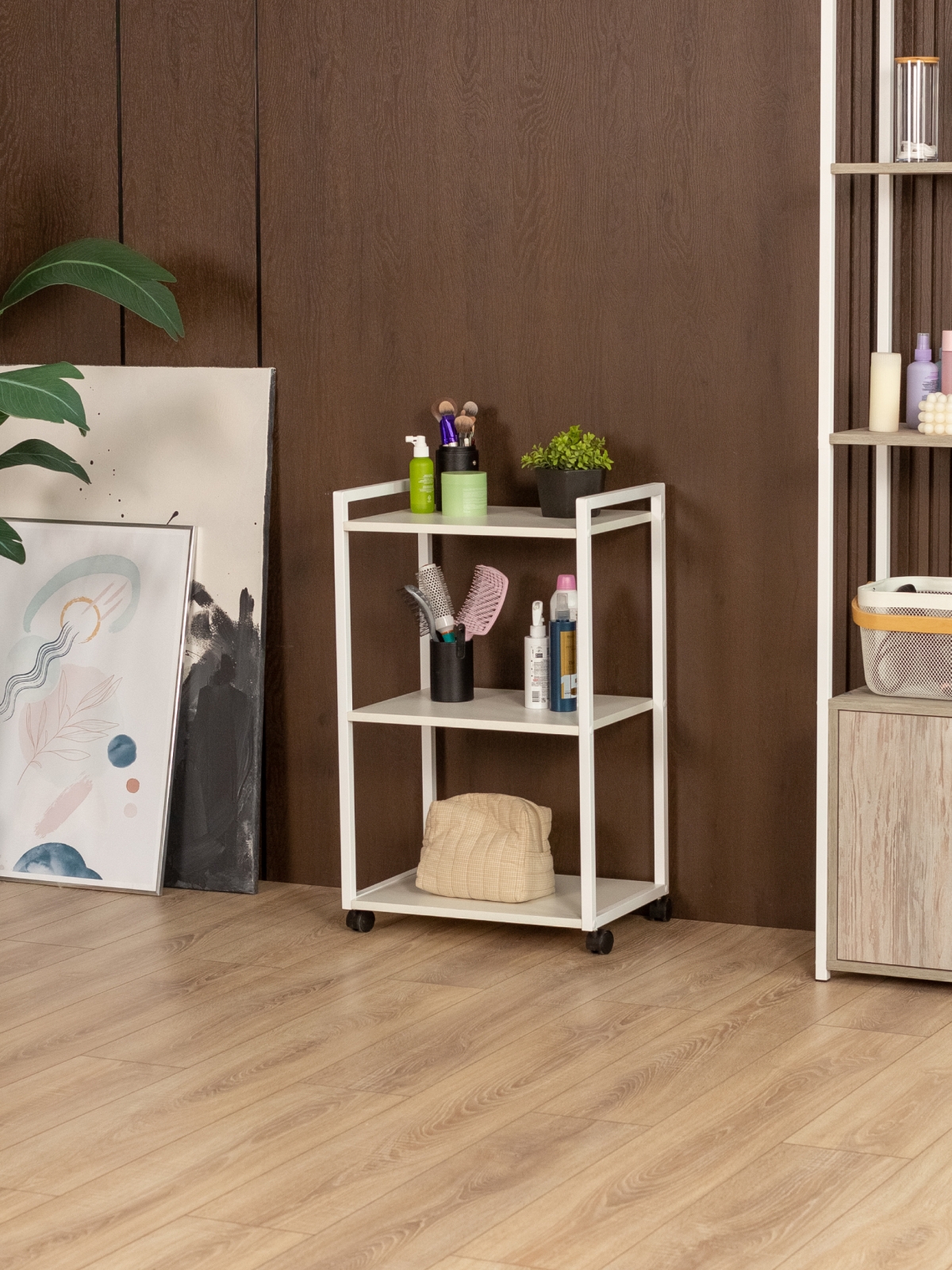Косметологическая тележка трехъярусная на колесиках Амур белый/кашемир