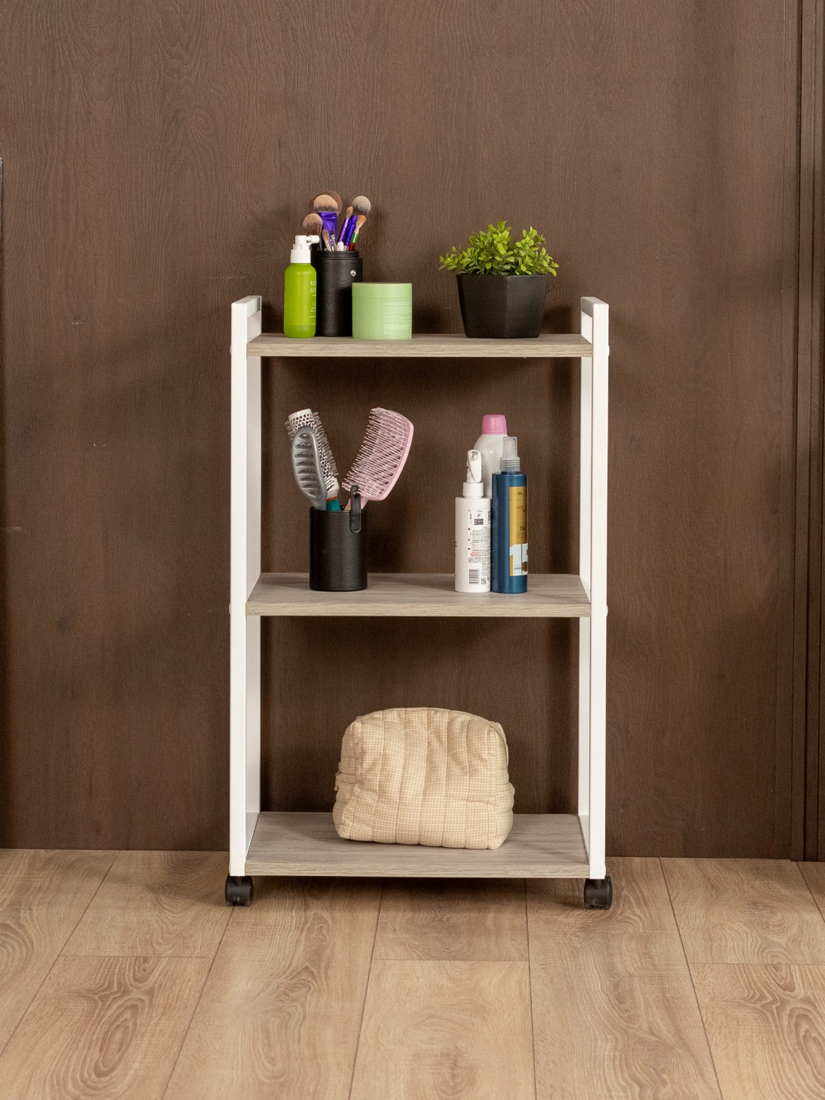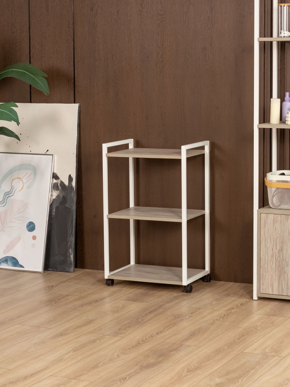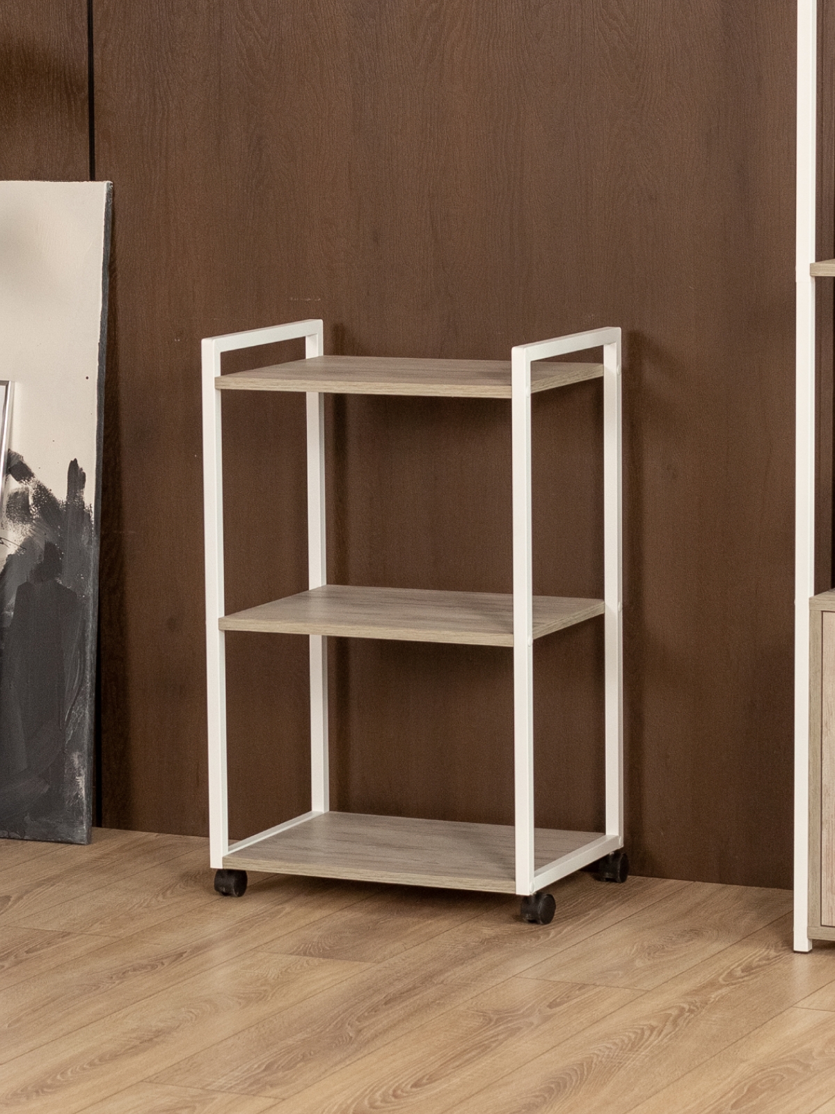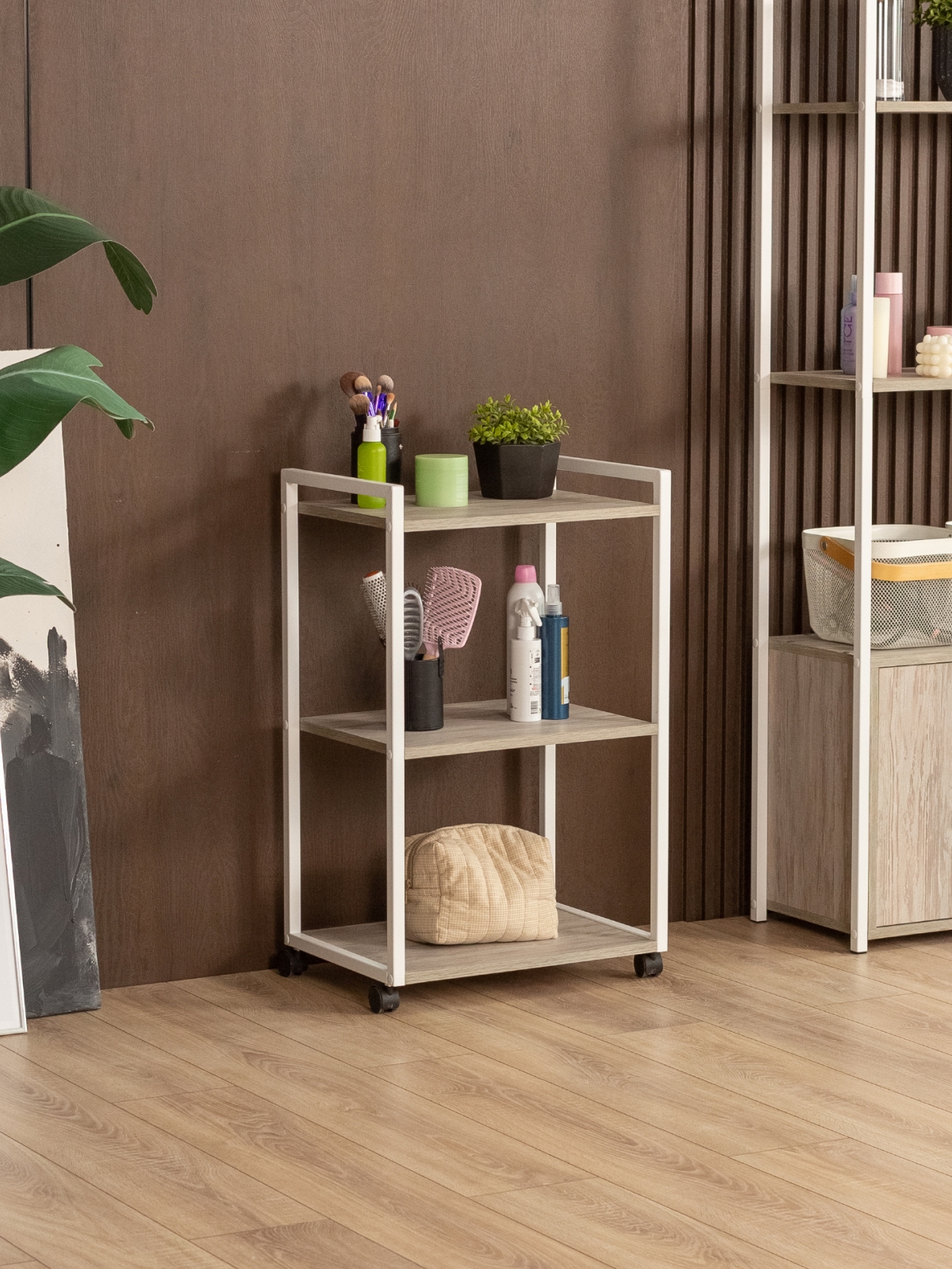 Косметологическая тележка трехъярусная на колесиках Амур белый/кашемир