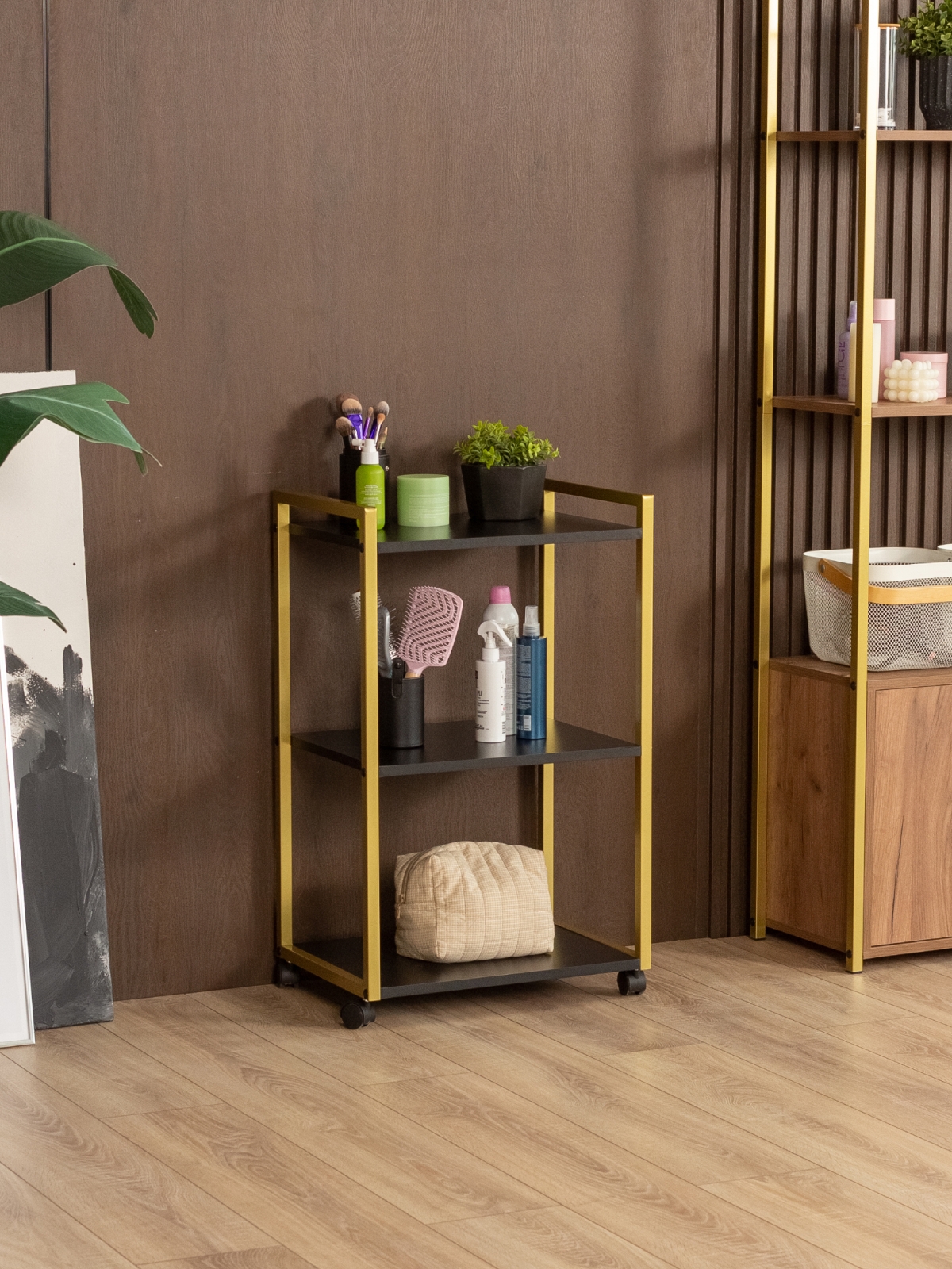 Косметологическая тележка трехъярусная на колесиках Амур золотой/черный