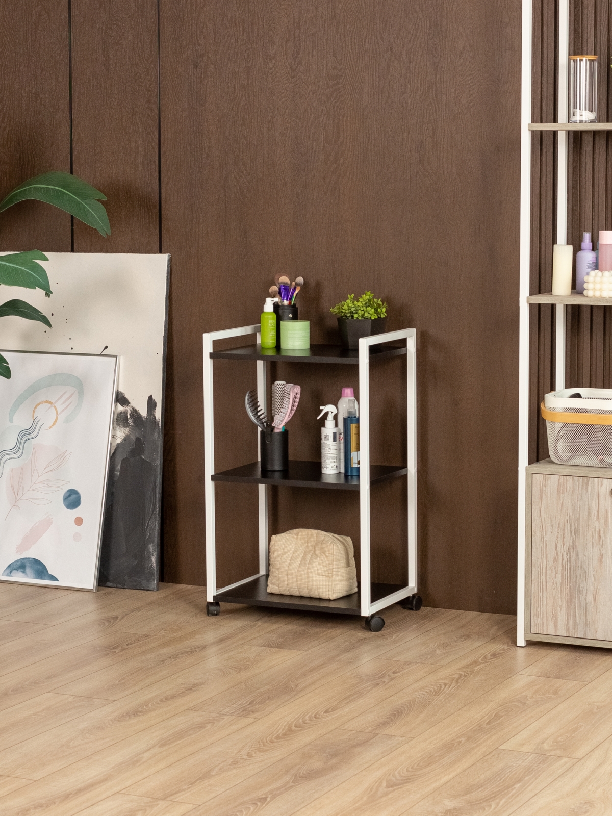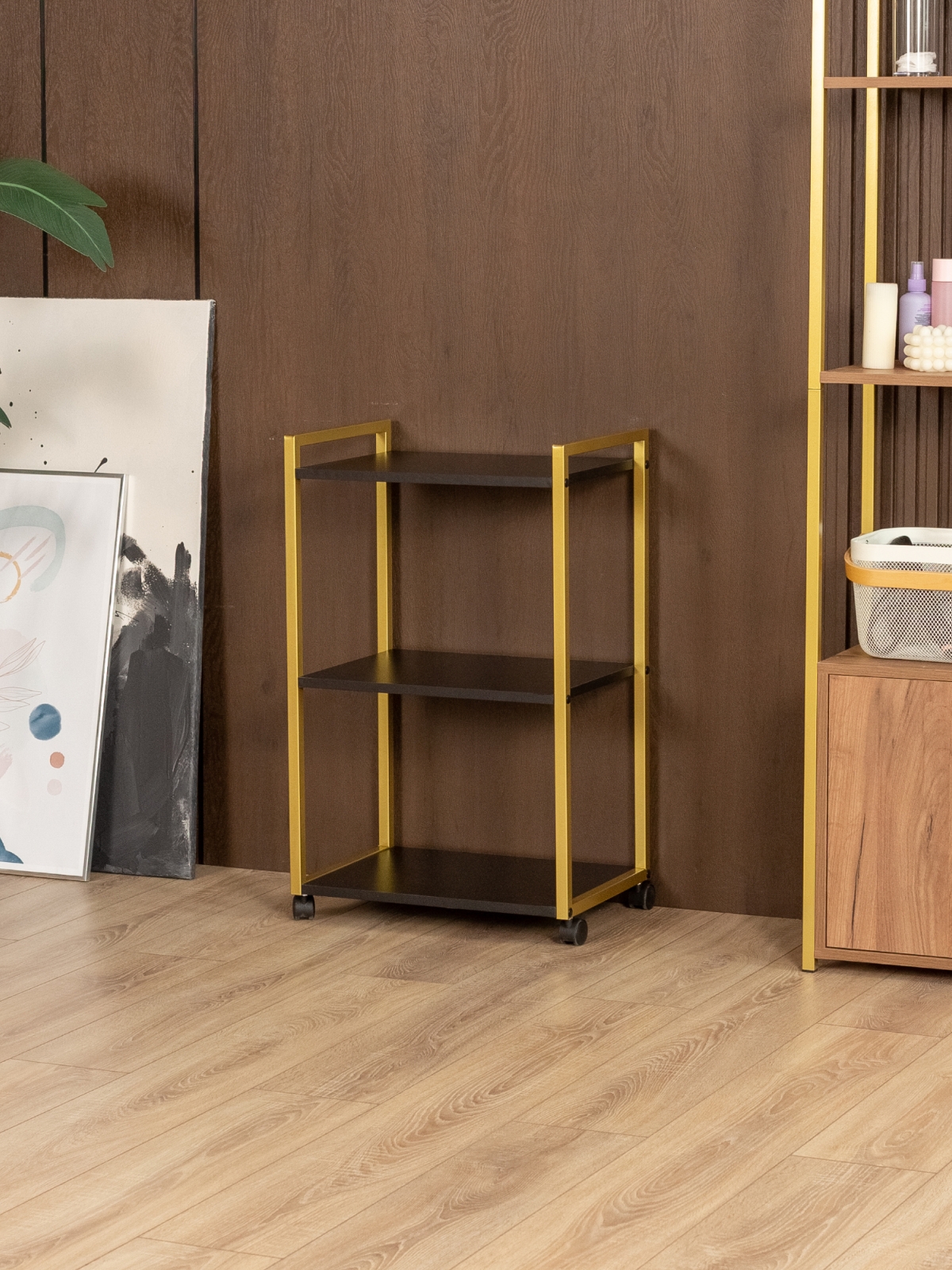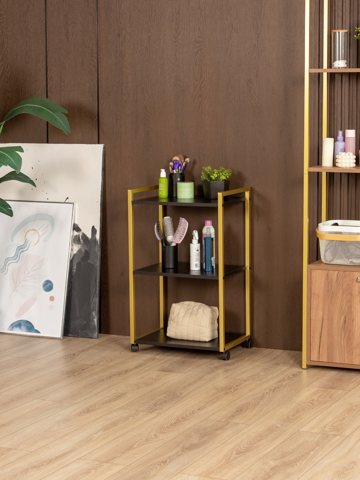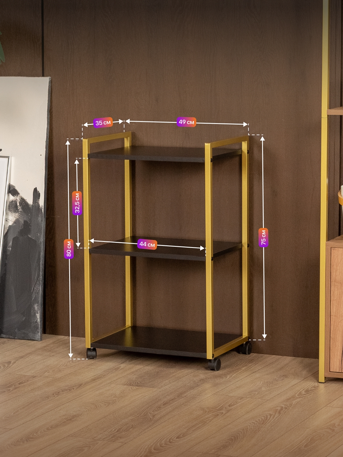 Косметологическая тележка трехъярусная на колесиках Амур чёрный/амаретто