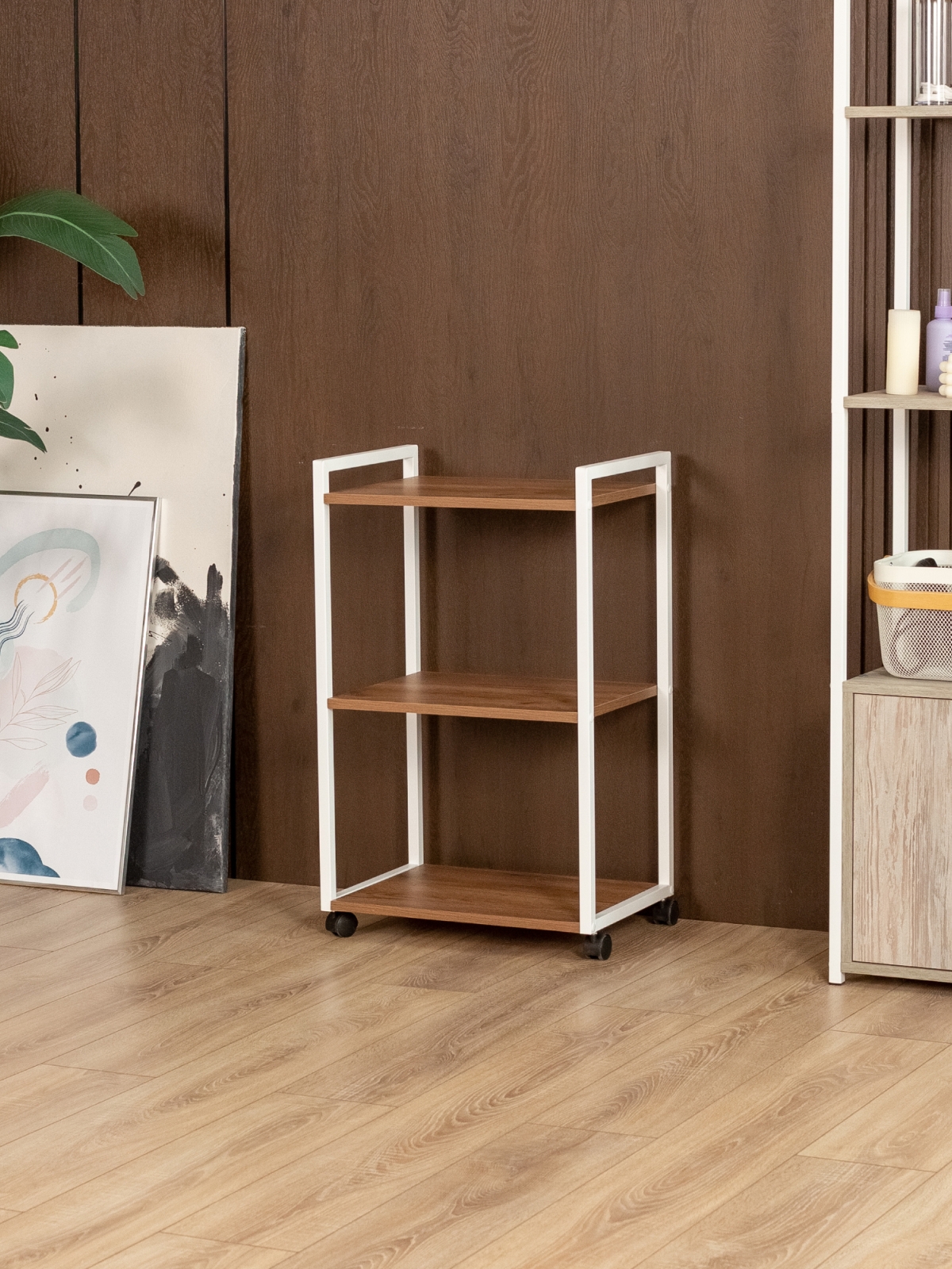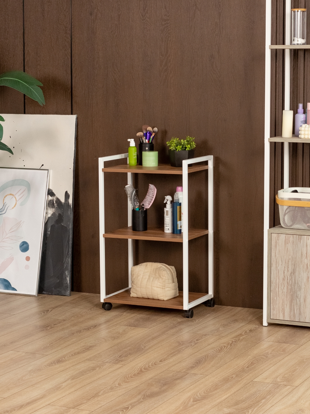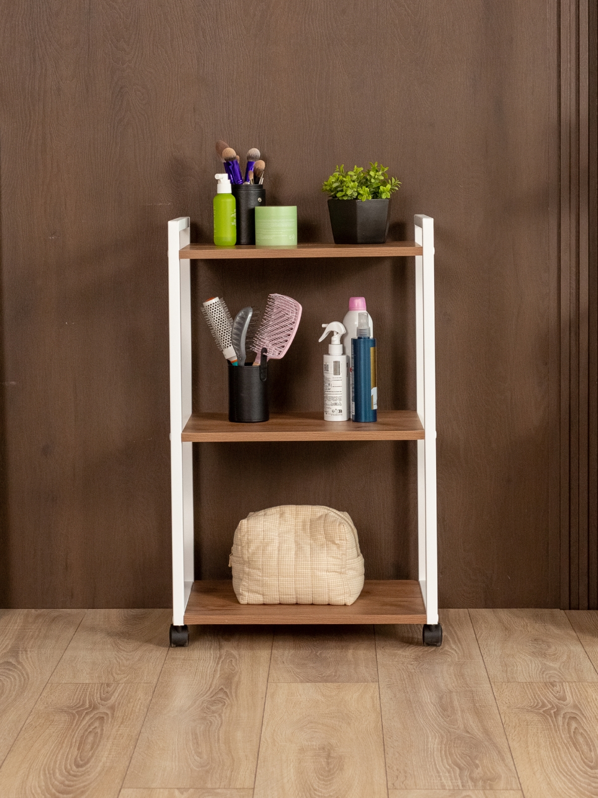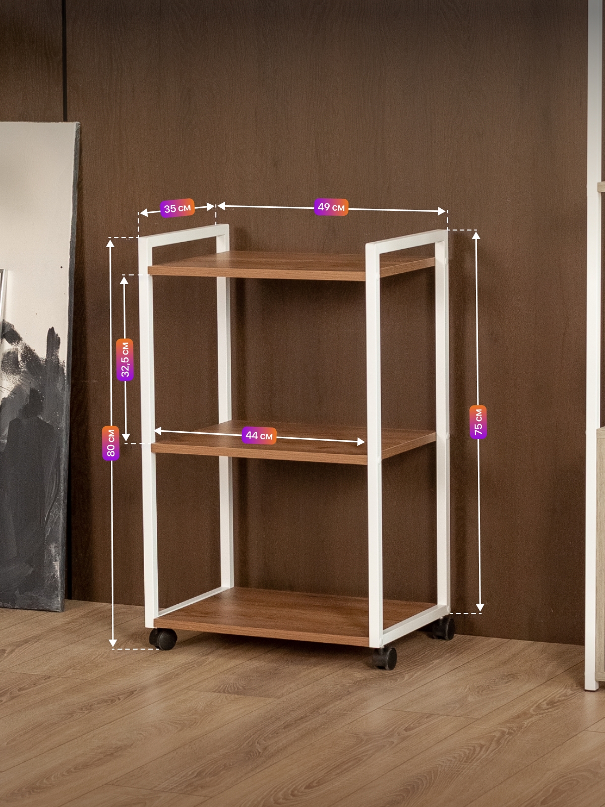 Косметологическая тележка трехъярусная на колесиках Амур белый/амаретто