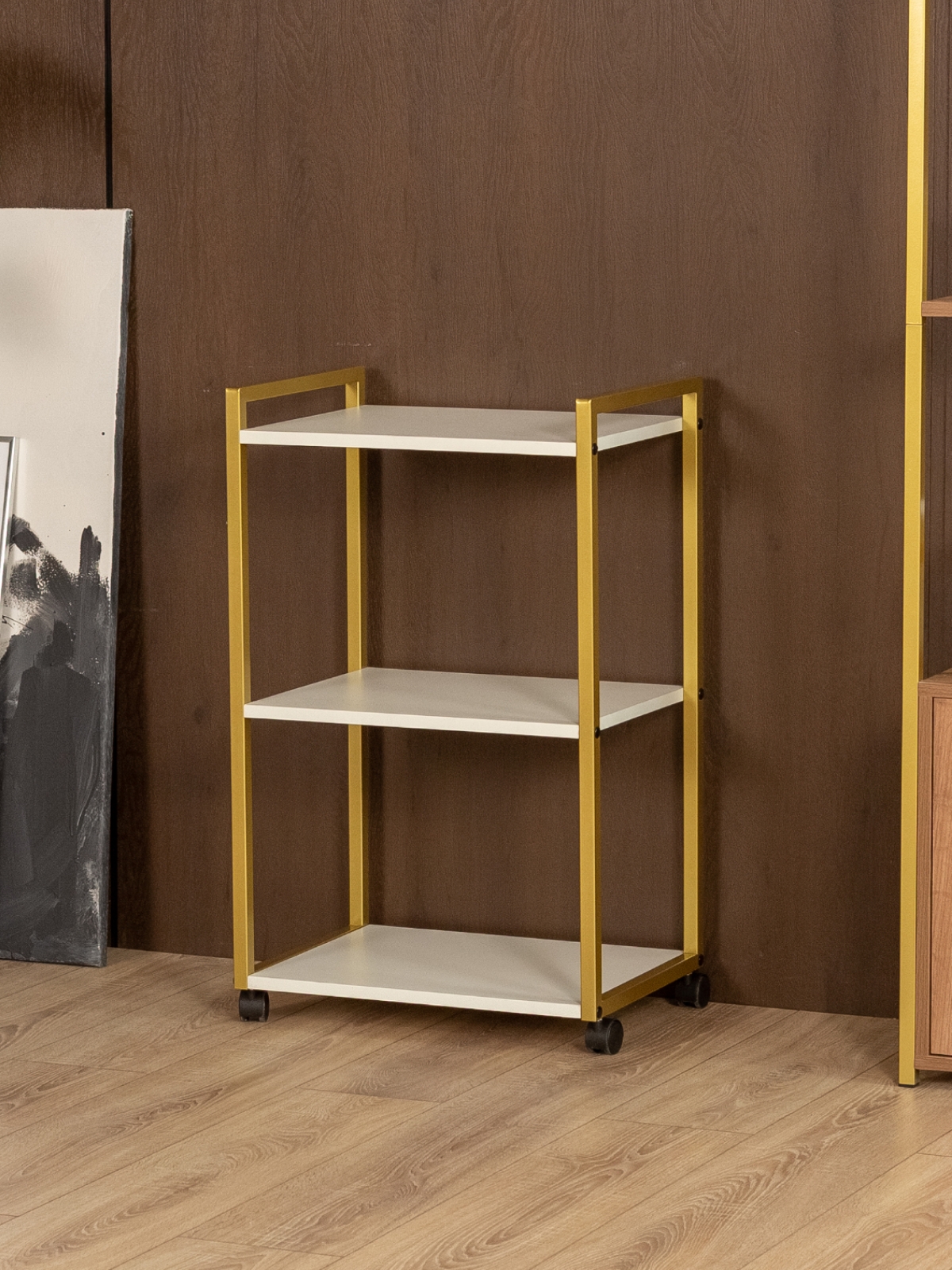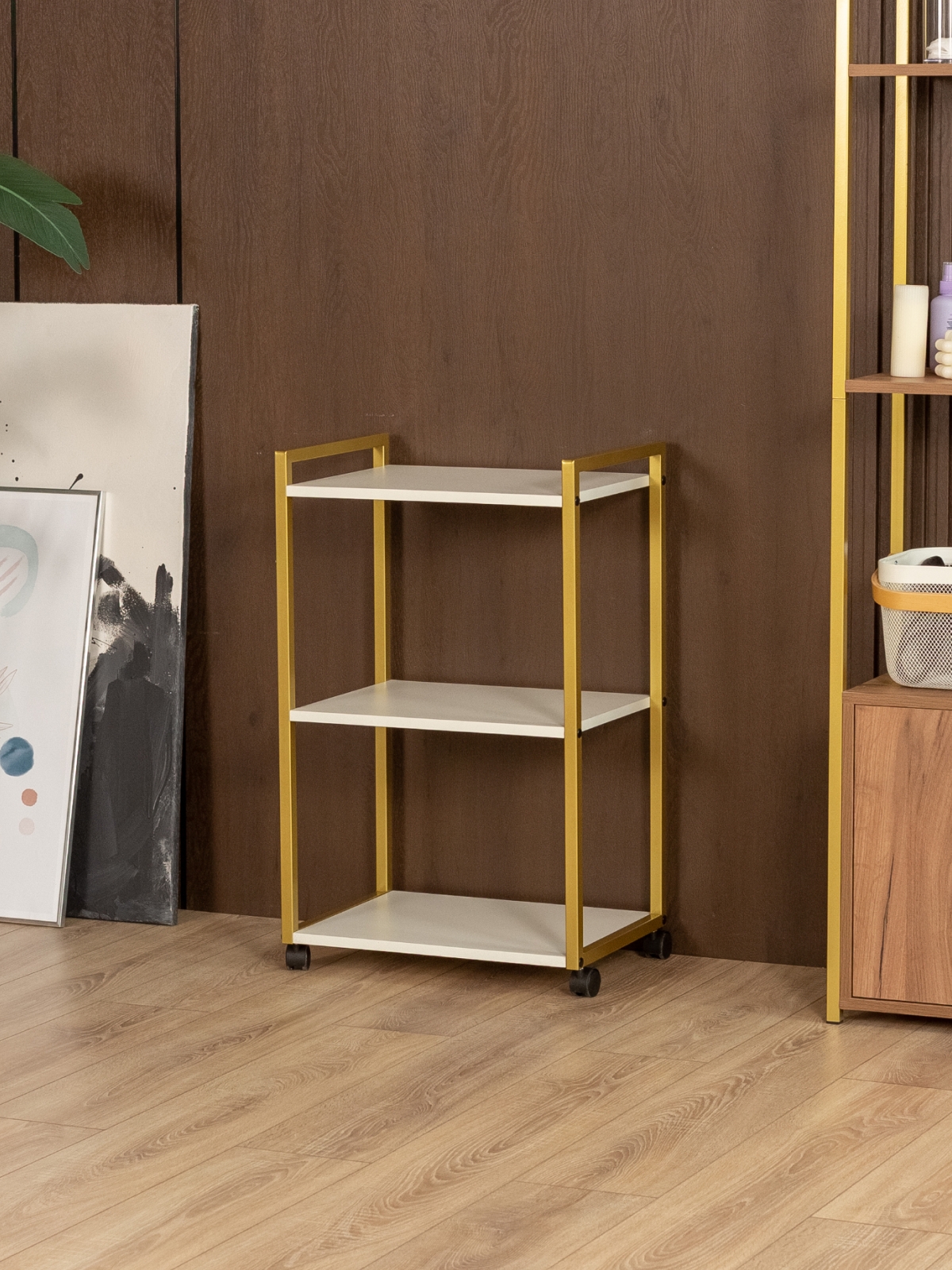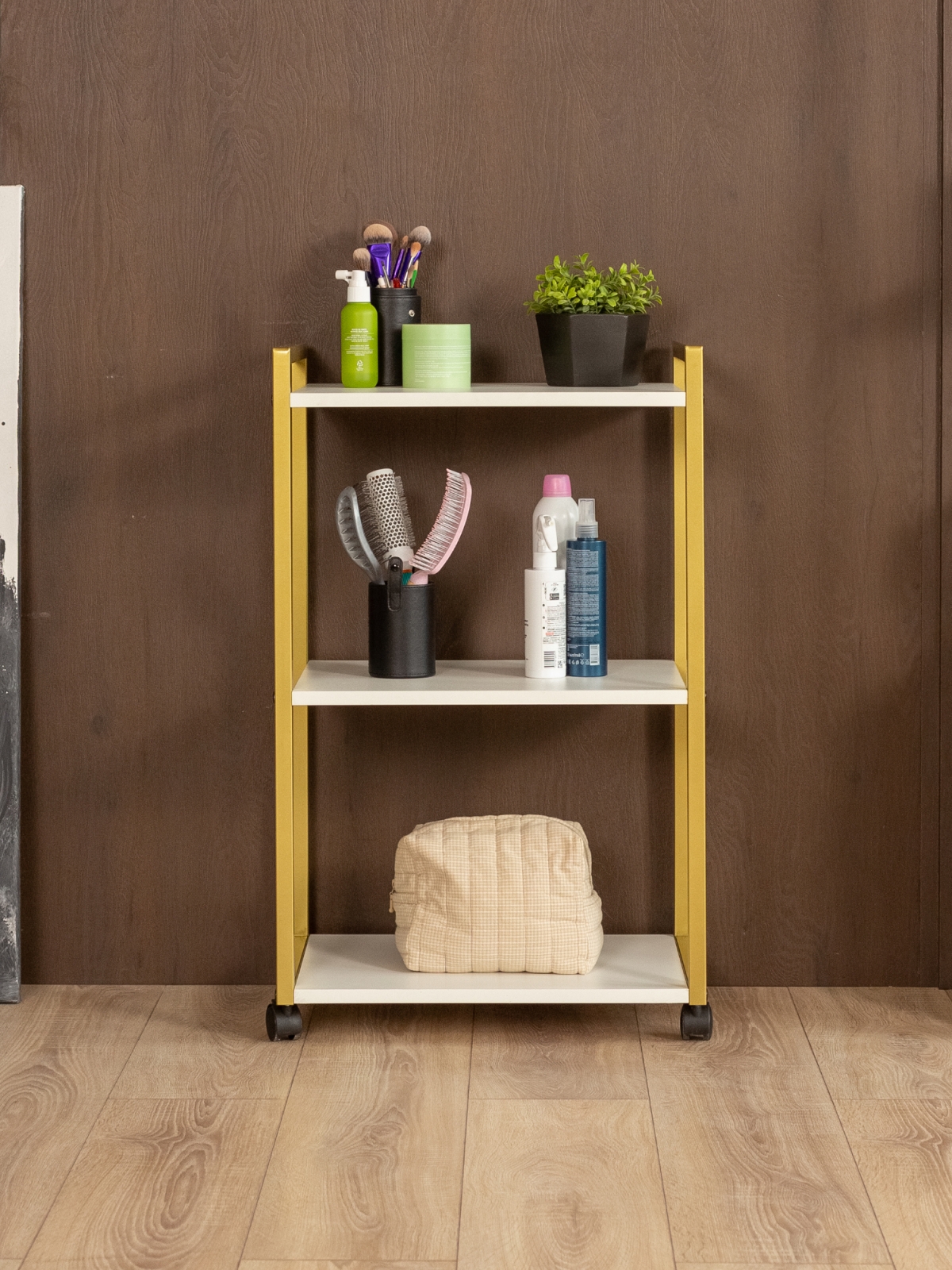 Косметологическая тележка трехъярусная на колесиках Амур золотой/белый