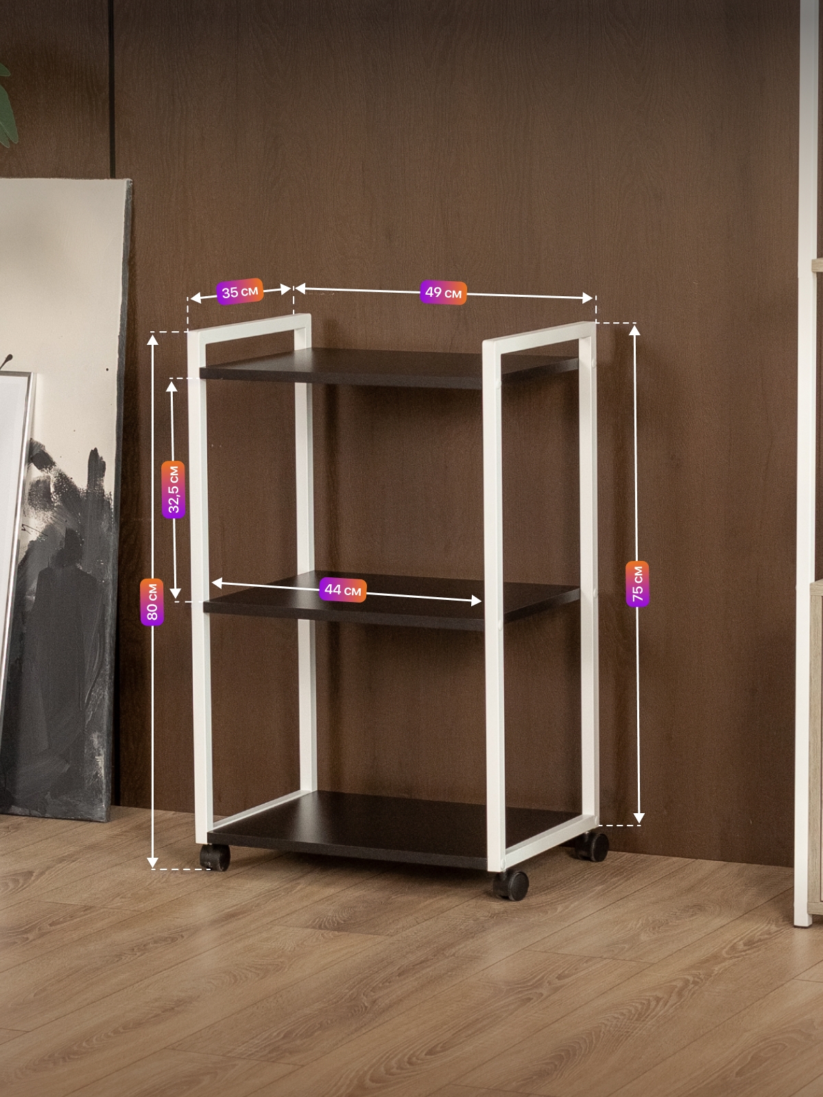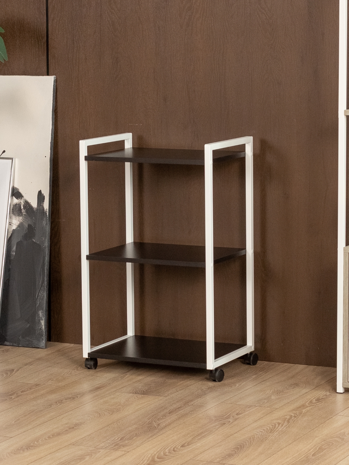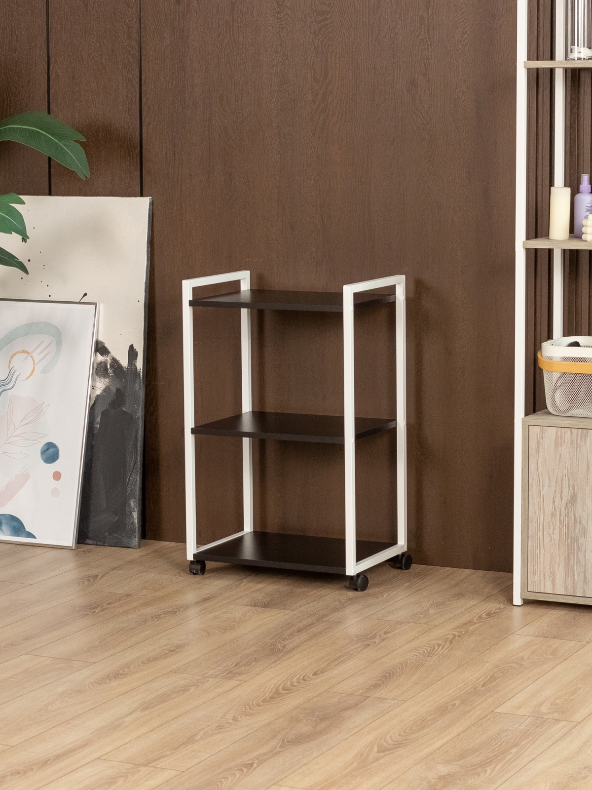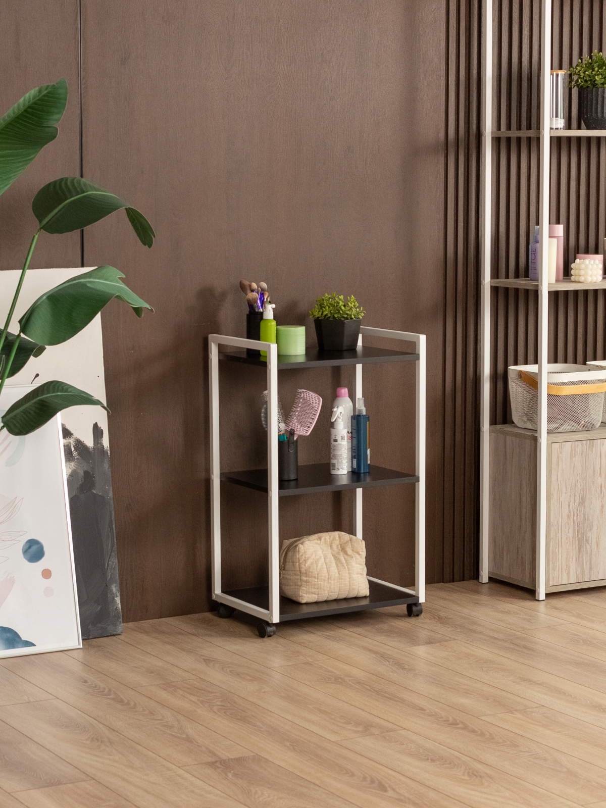 Косметологическая тележка трехъярусная на колесиках Амур чёрный/белый