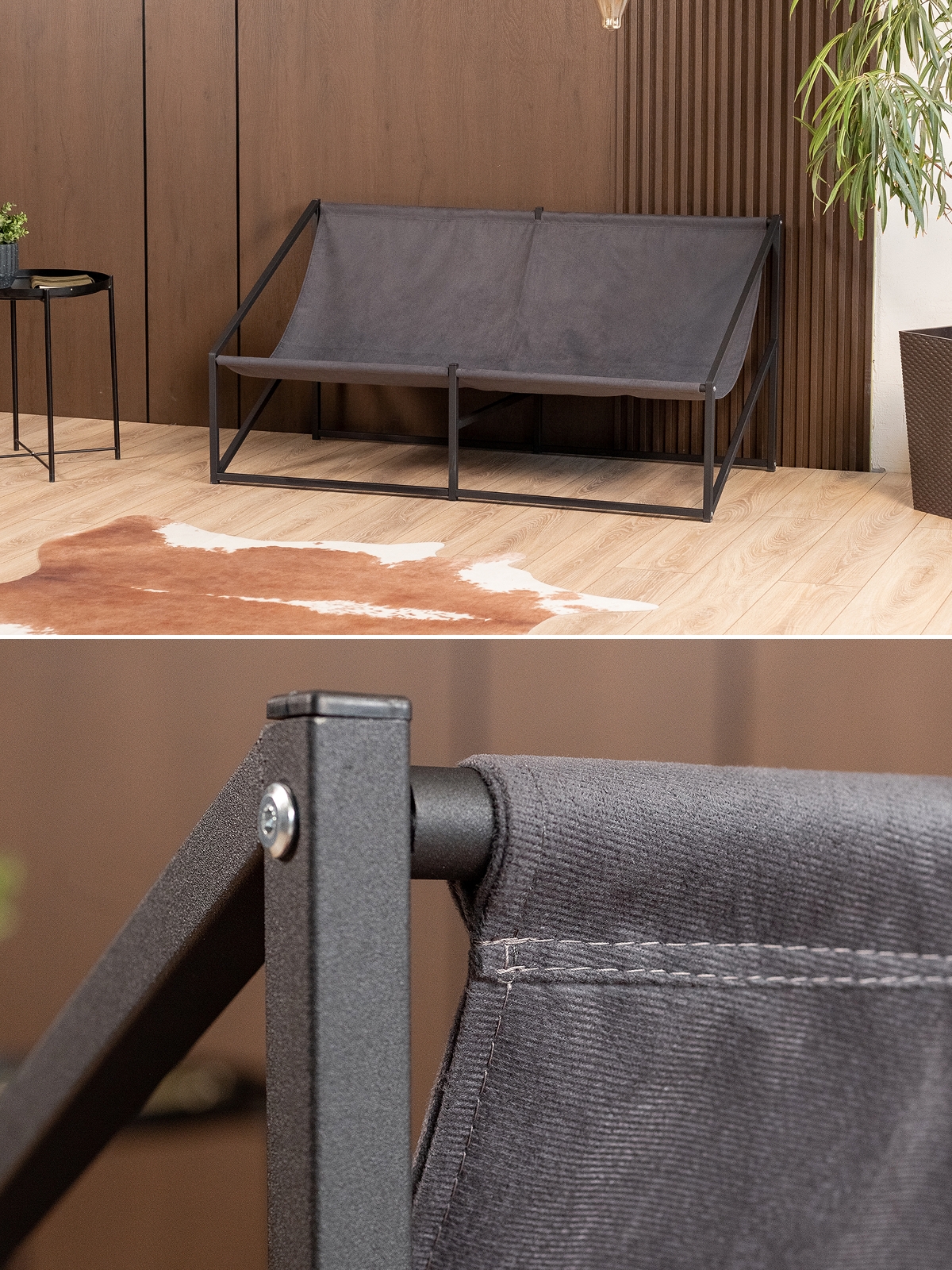 «Кирья» представляет собой прочную металлическую конструкцию с мягкой съемной подушкой. Каркас выполнен из металла и окрашен черной полимерно-порошковой краской. Она устойчива к повреждениям и сохраняет насыщенность цвета даже спустя время. Глубокий черный цвет — безупречная классика индустриального стиля. Он создает эффектный контраст, подчеркивает архитектурные линии и визуально структурирует пространство.
