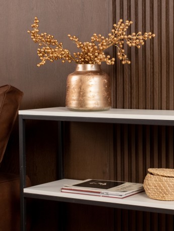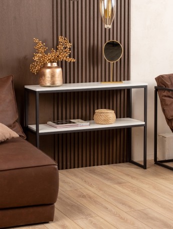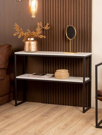 Настенный стеллаж выполнен из ЛДСП. Это прочный материал, который устойчив к перепадам температур и влажности воздуха.