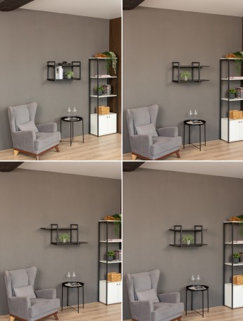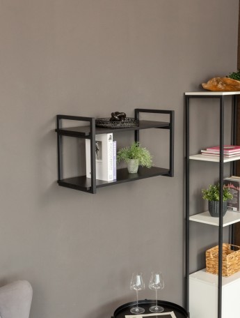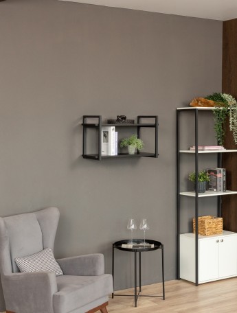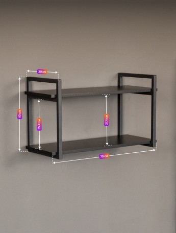 Настенный стеллаж выполнен из ЛДСП. Это прочный материал, который устойчив к перепадам температур и влажности воздуха.