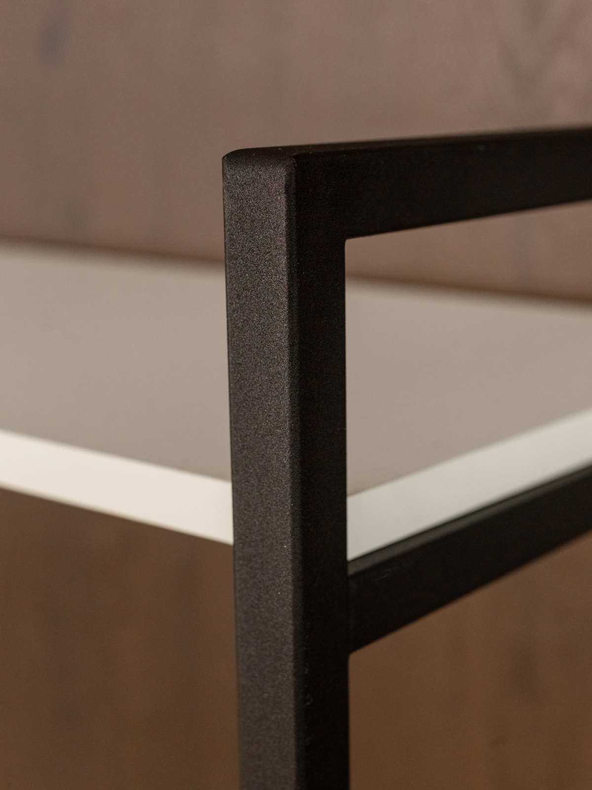 Каждая полка выдерживает нагрузку до 25 кг, что позволяет размещать не только книги, посуду или декор, но и более тяжелые предметы: например, технику, архивы, ящики с инструментами. Конструкция напольной металлической полки в стиле лофт остается устойчивой даже при полной нагрузке. Пластиковые заглушки на ножках защищают напольное покрытие от царапин — актуально для помещений с деликатными напольными покрытиями.