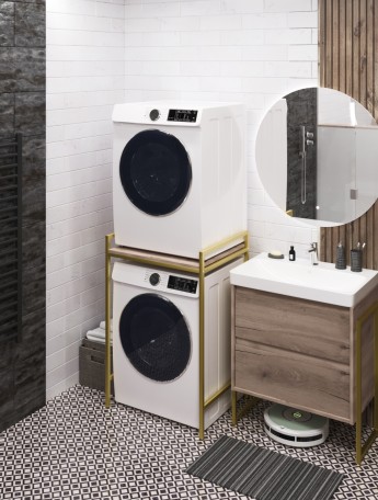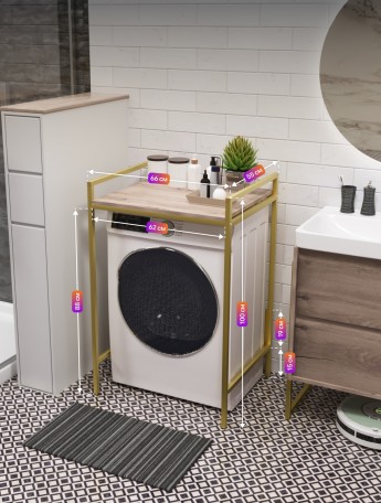 Металлический стеллаж для стиральной машины лофт Сомма золотой/белый